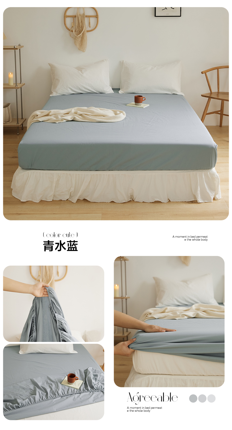 新款40支全棉水洗棉纯色单品系列-单床笠 青水蓝