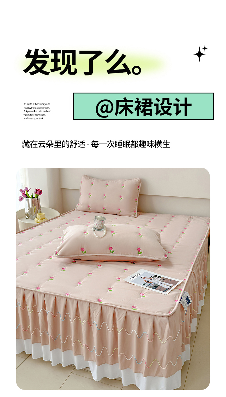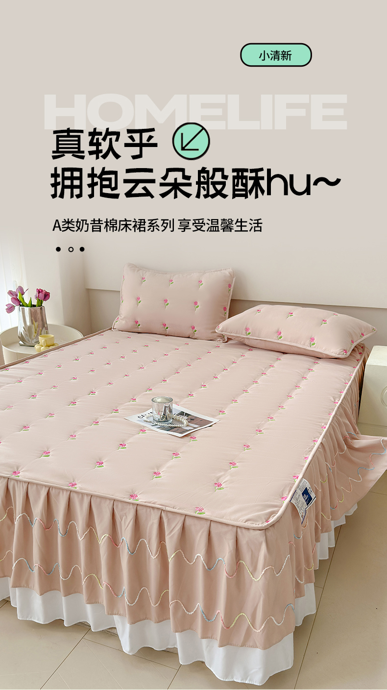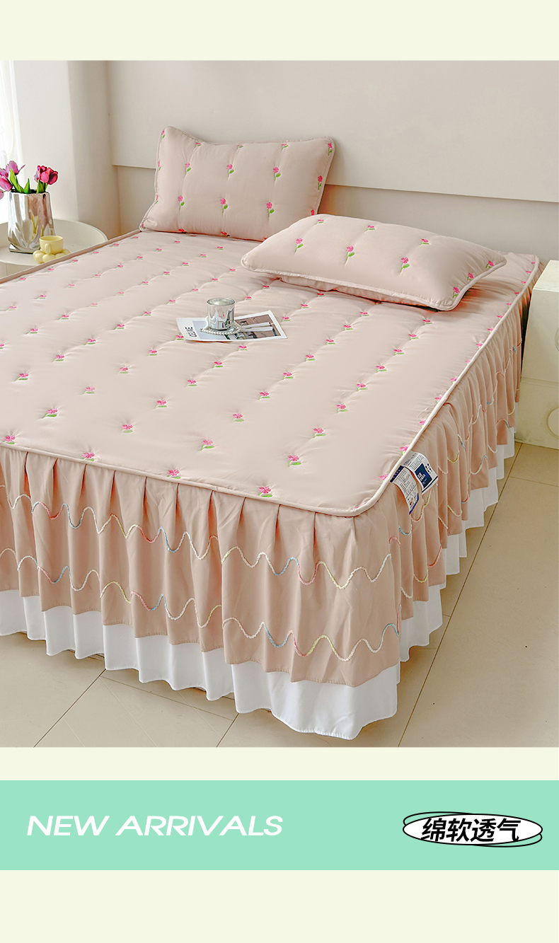 尊康家纺(原磊科) 2024新款亲肤奶昔棉夹棉床裙向阳花语系列 向阳花语-香槟