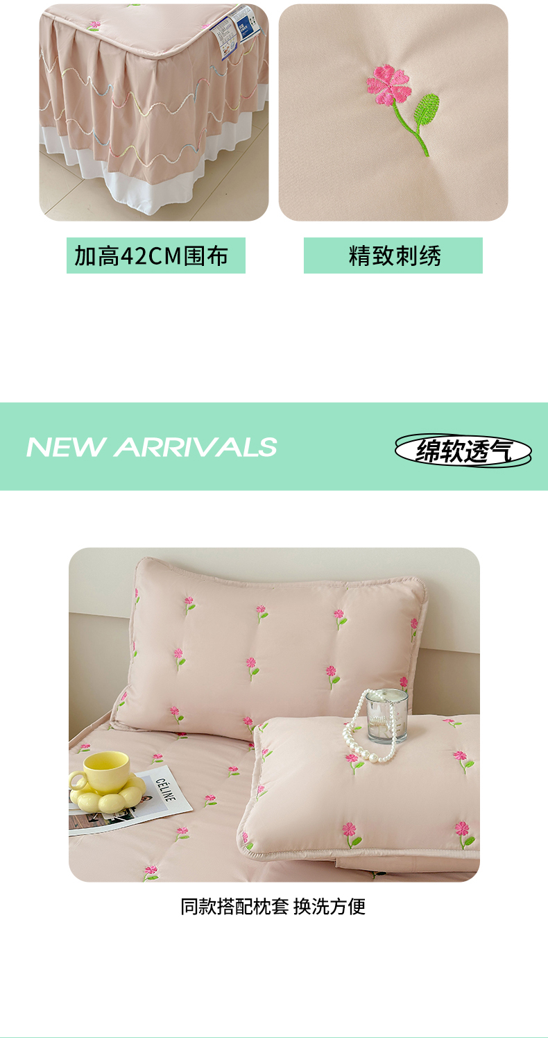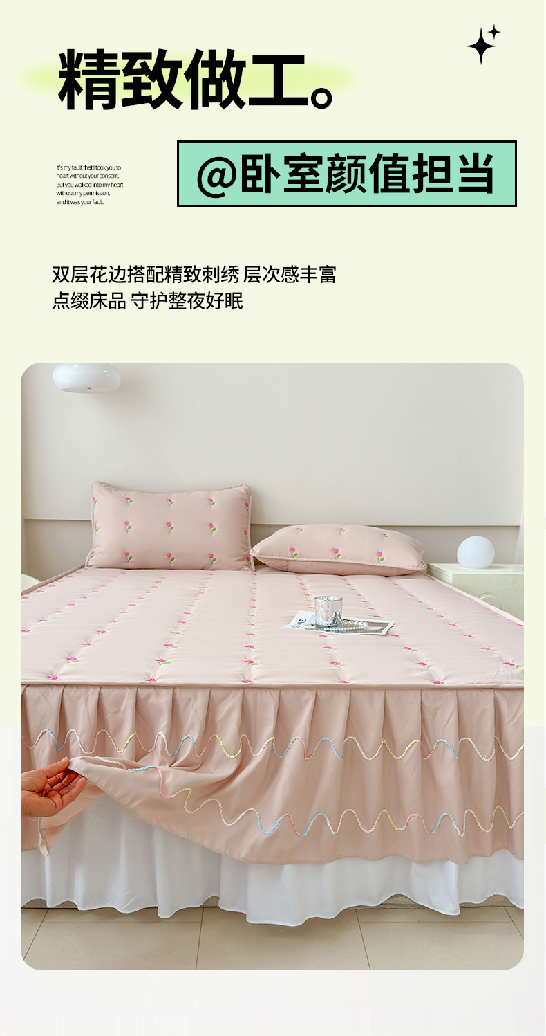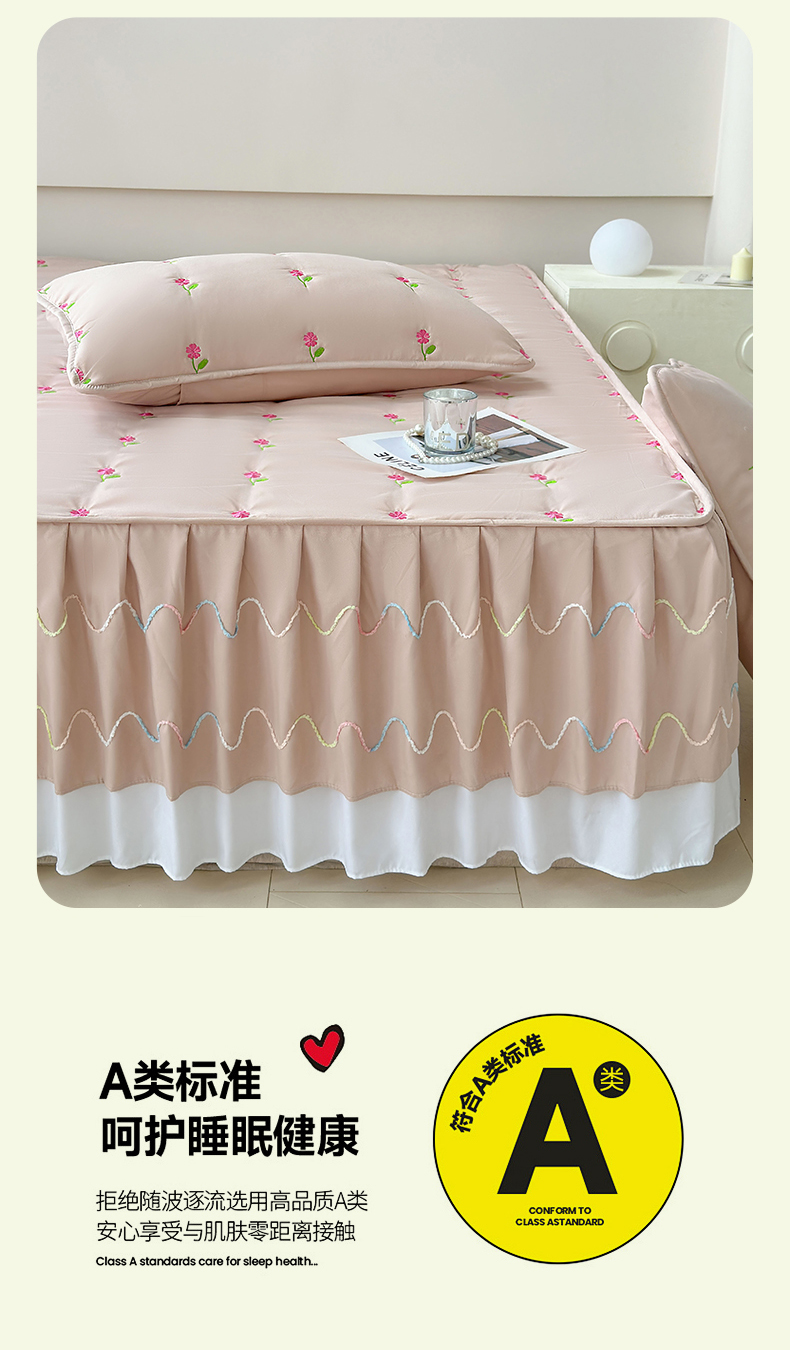 尊康家纺(原磊科) 2024新款亲肤奶昔棉夹棉床裙向阳花语系列 向阳花语-香槟