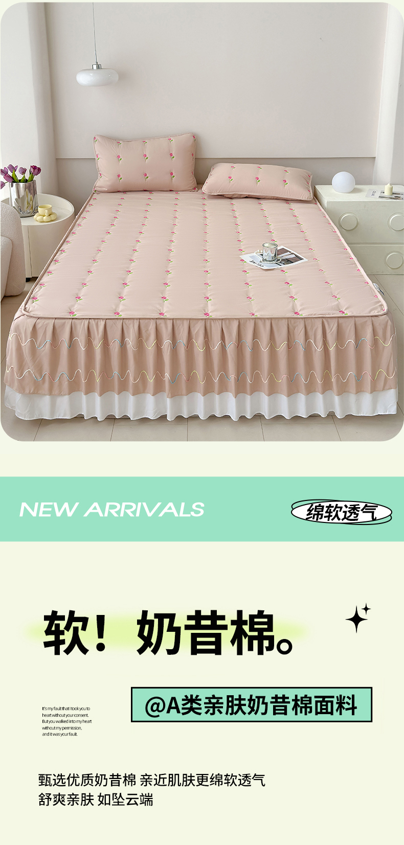 • 91家纺网 家纺一手货源 找家纺 尊康家纺(原磊科) 2024新款亲肤奶昔棉夹棉床裙向阳花语系列 向阳花语-香槟