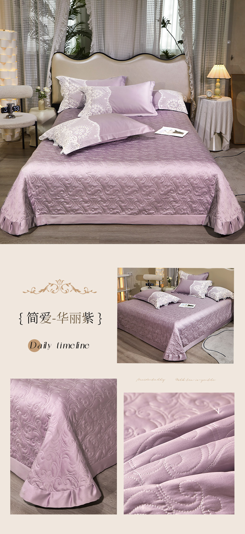 (总)罗艺轩 2024新款贡缎夹棉床盖--三件套(控价110元起),简爱-安迪金,简爱-华丽紫,简爱-温莎粉,简爱-香槟金,简爱-星河银,简爱-颜如玉