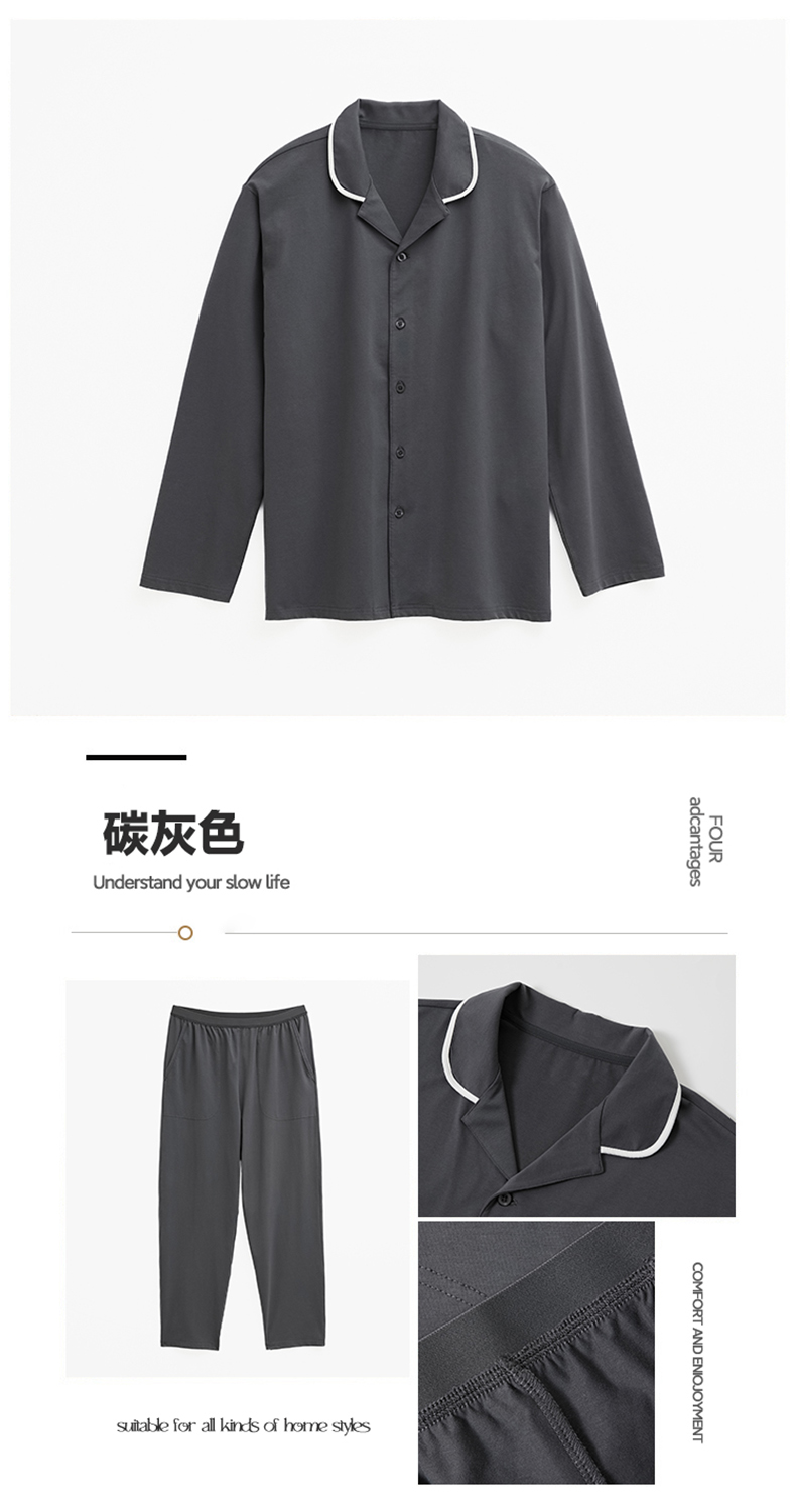 商品名称:EH 2024新款全棉男女情侣款家居服-男女款翻领 男款碳灰色