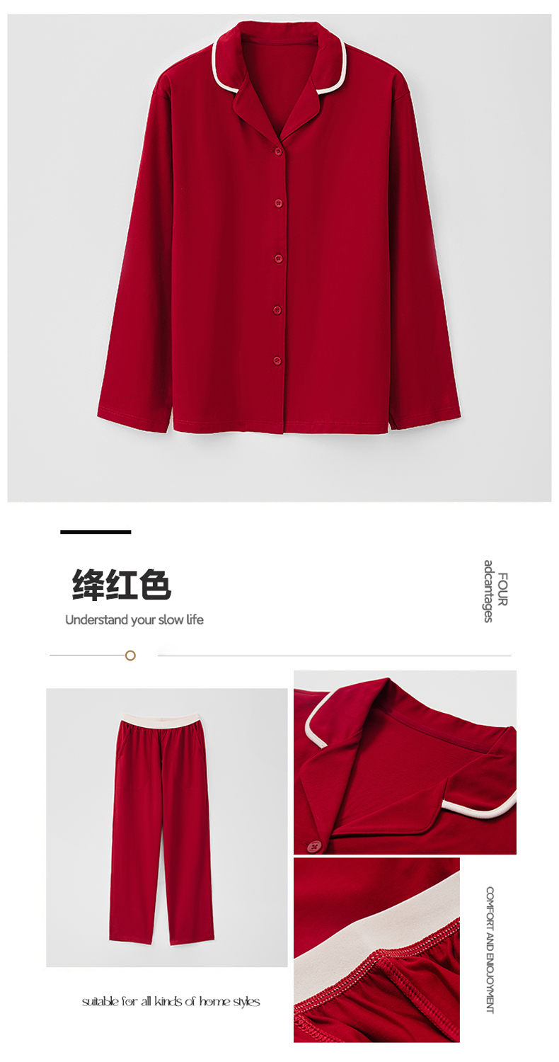 商品名称:EH 2024新款全棉男女情侣款家居服-女款翻领 绛红色