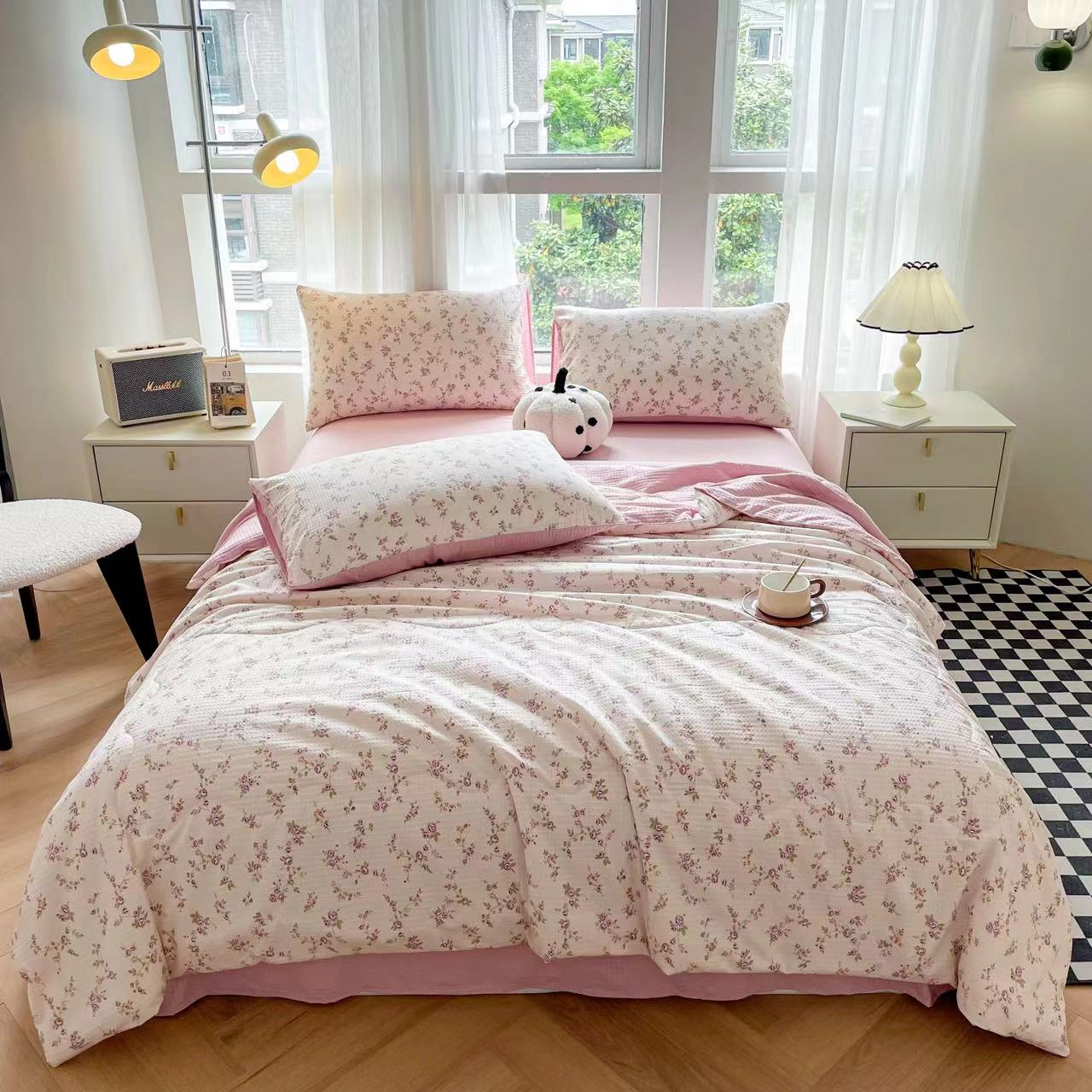 仟网汇 2024新款泡泡棉夏被四件套热款 粉蔷薇