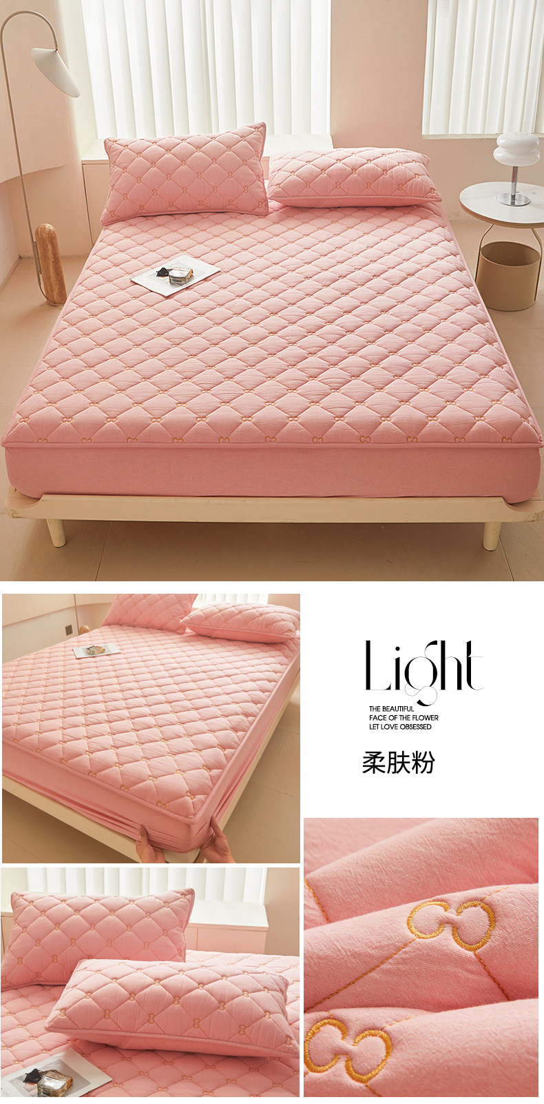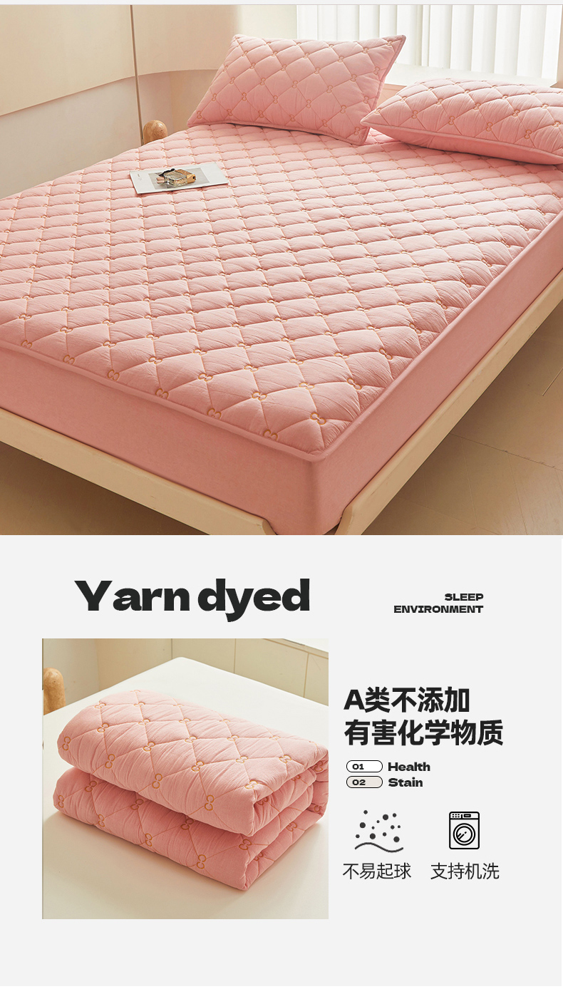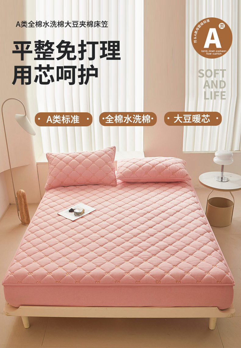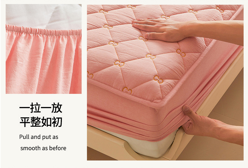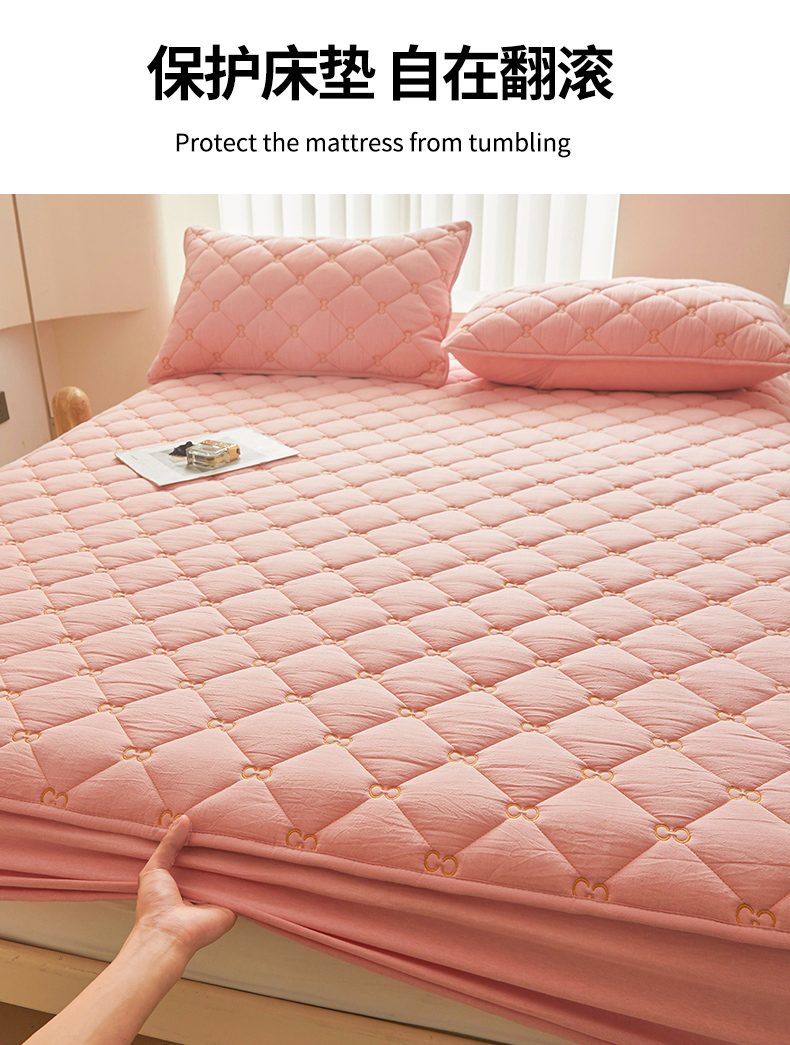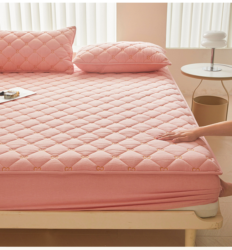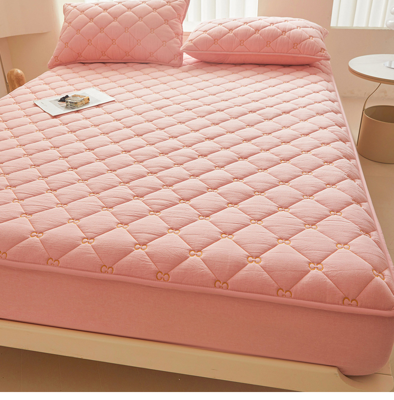 糯米猪 2024新款A类全棉刺绣色织水洗棉夹棉床笠 柔肤粉