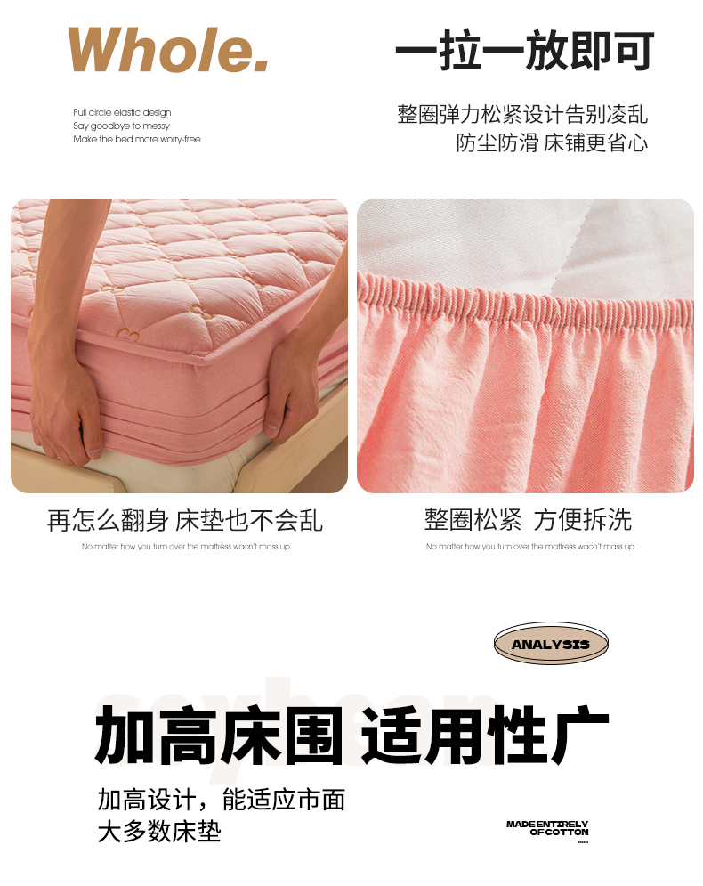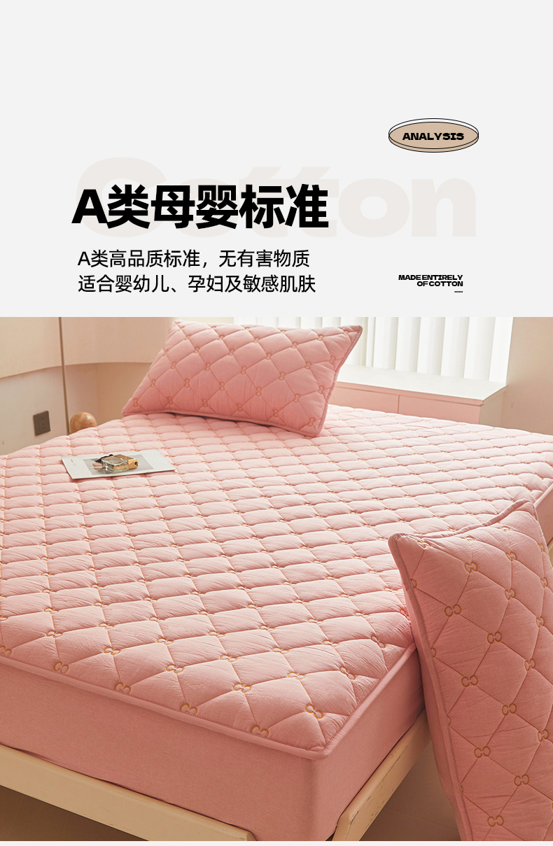 • 91家纺网 家纺一手货源 找家纺 (总)糯米猪家纺 2025春夏新款亲肤棉六面全包防水压花床笠单件单床笠,组合图仅供展示,典雅白,高级灰,静谧绿,浅卡其,水雾蓝,樱花粉