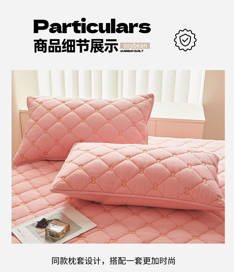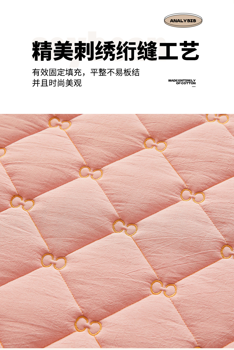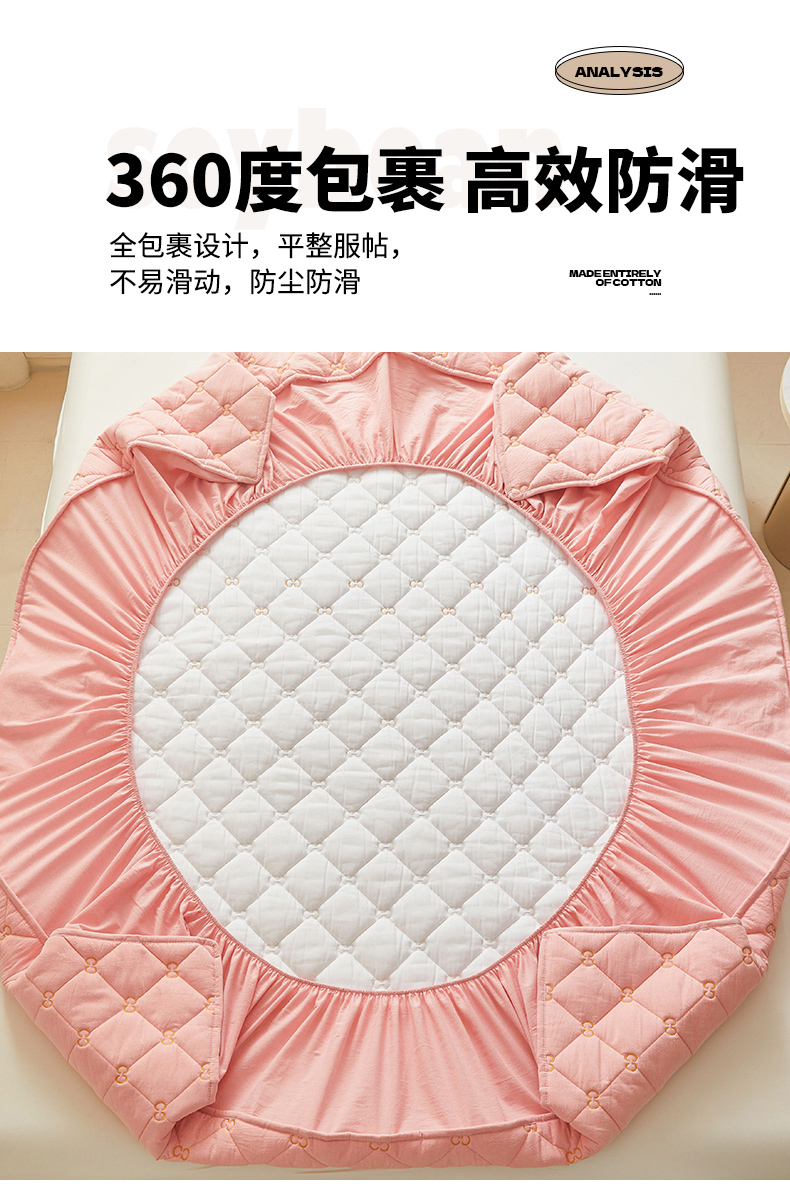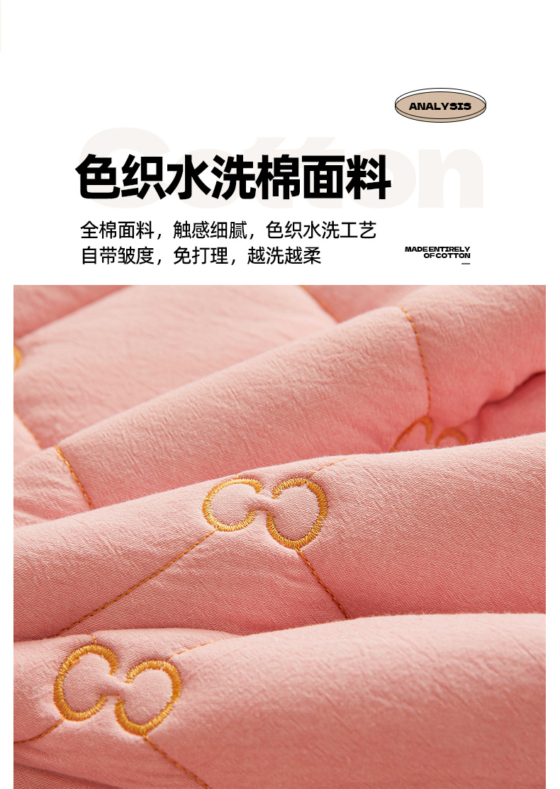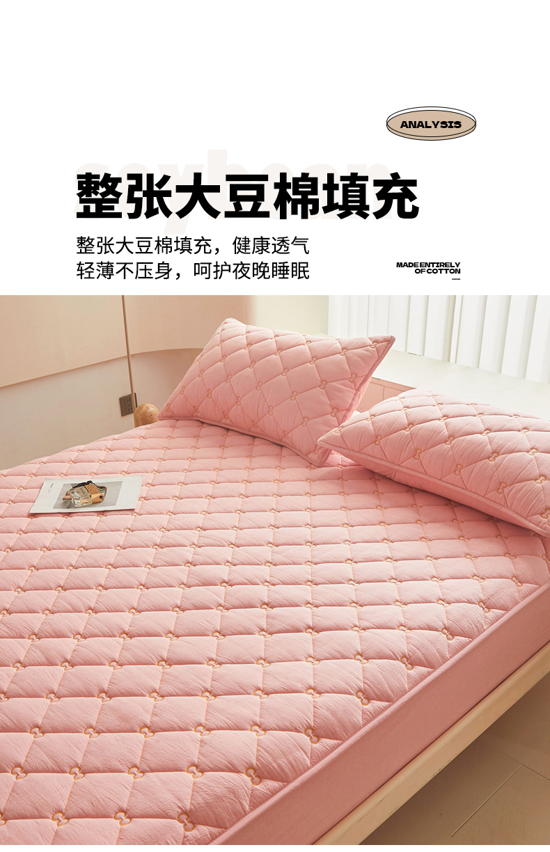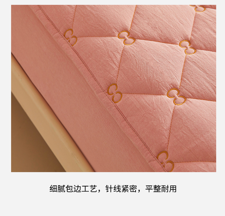 • 91家纺网 家纺一手货源 找家纺 糯米猪 2024新款A类全棉刺绣色织水洗棉夹棉床笠 柔肤粉