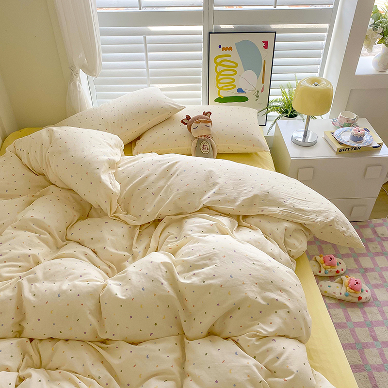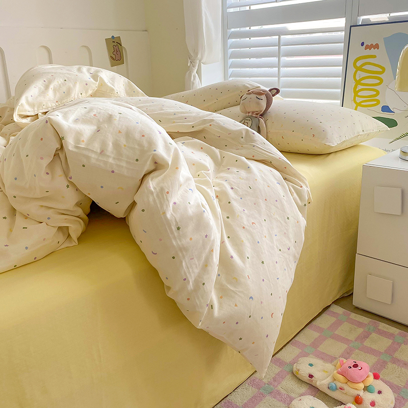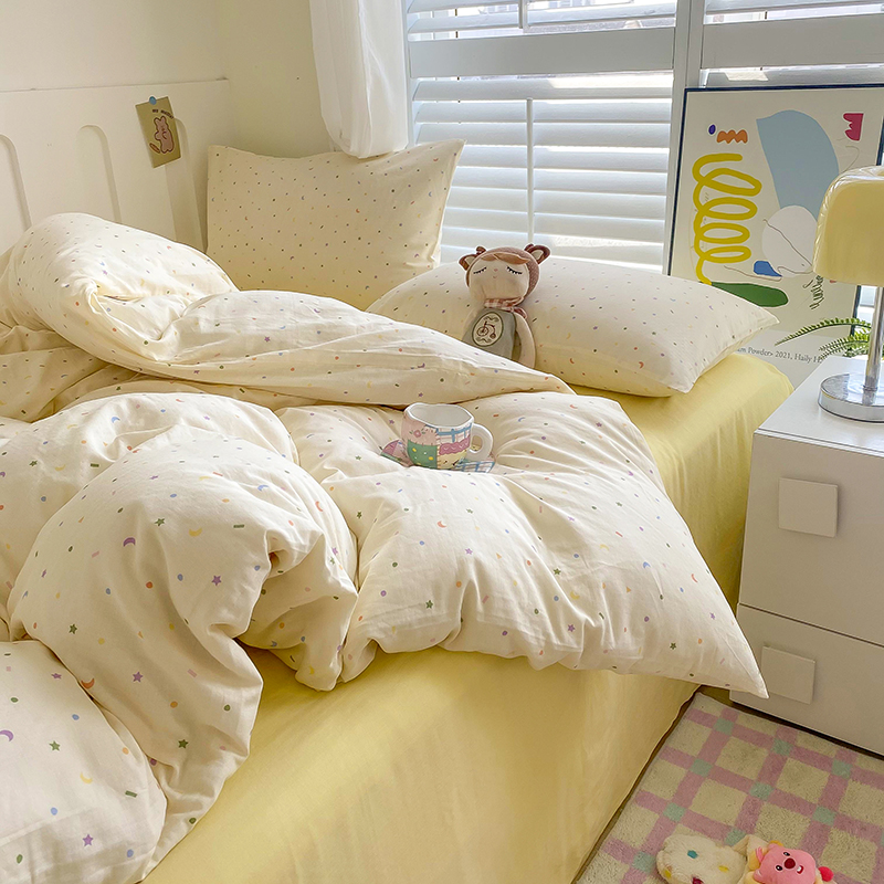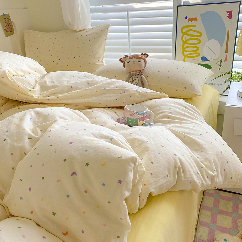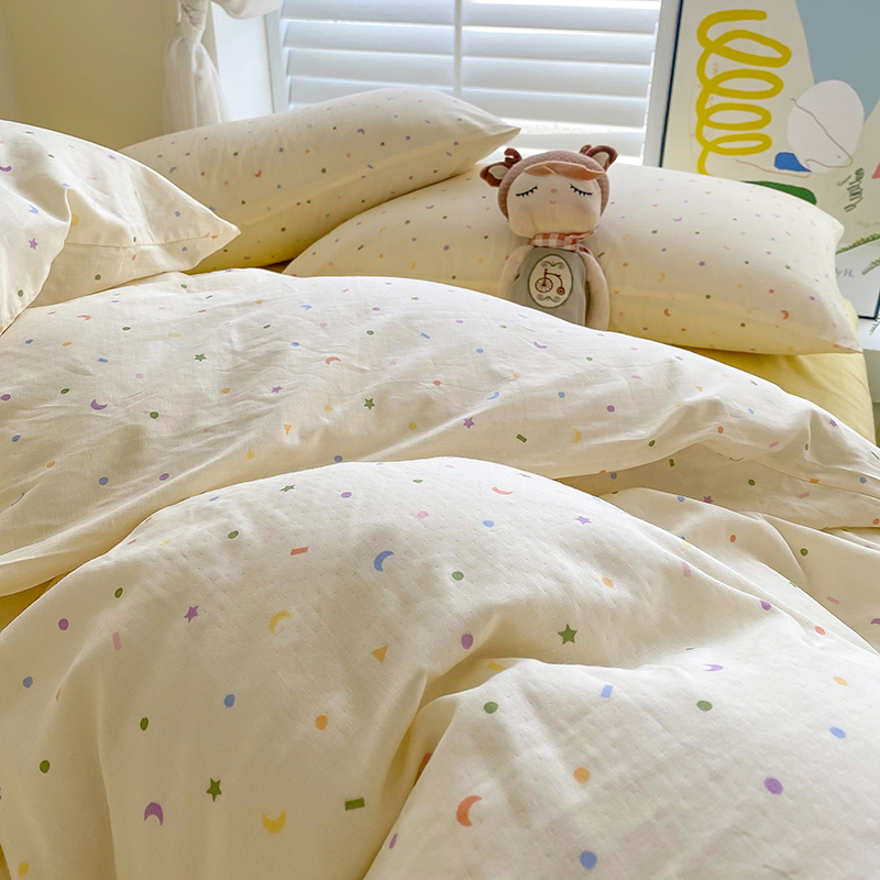 商品名称:爵仕家纺 2025小清新风格双层纱纯棉四件套 点缀星空