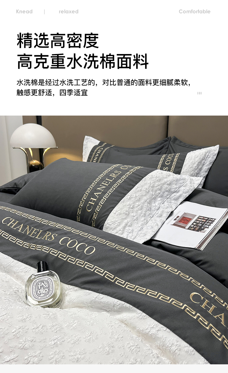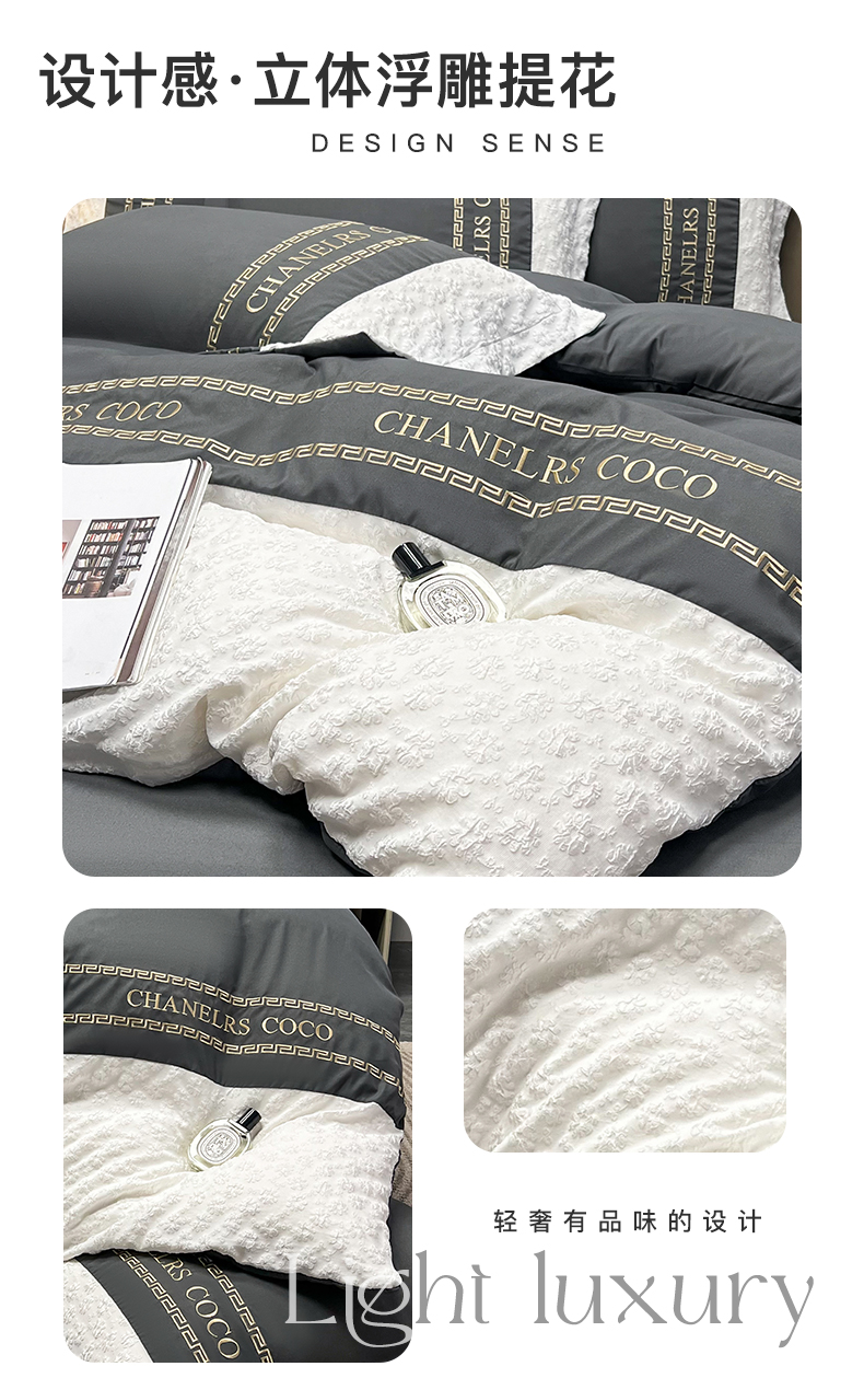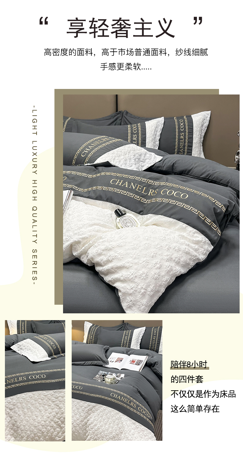 商品名称:千希家纺 2024新款浮雕提花四件套-赛琳 赛琳·暮云灰