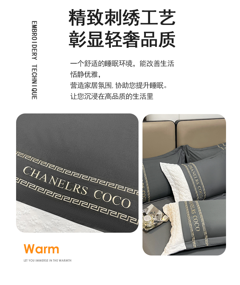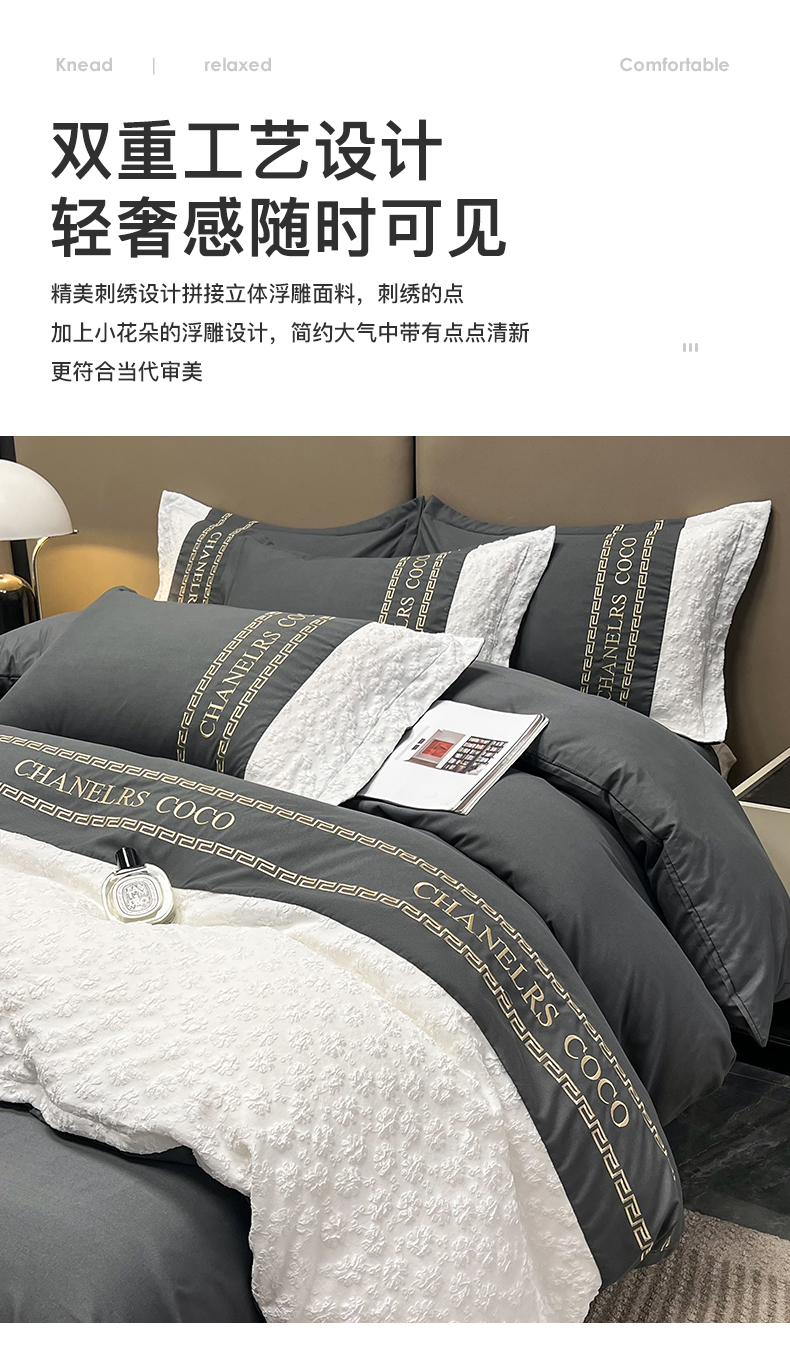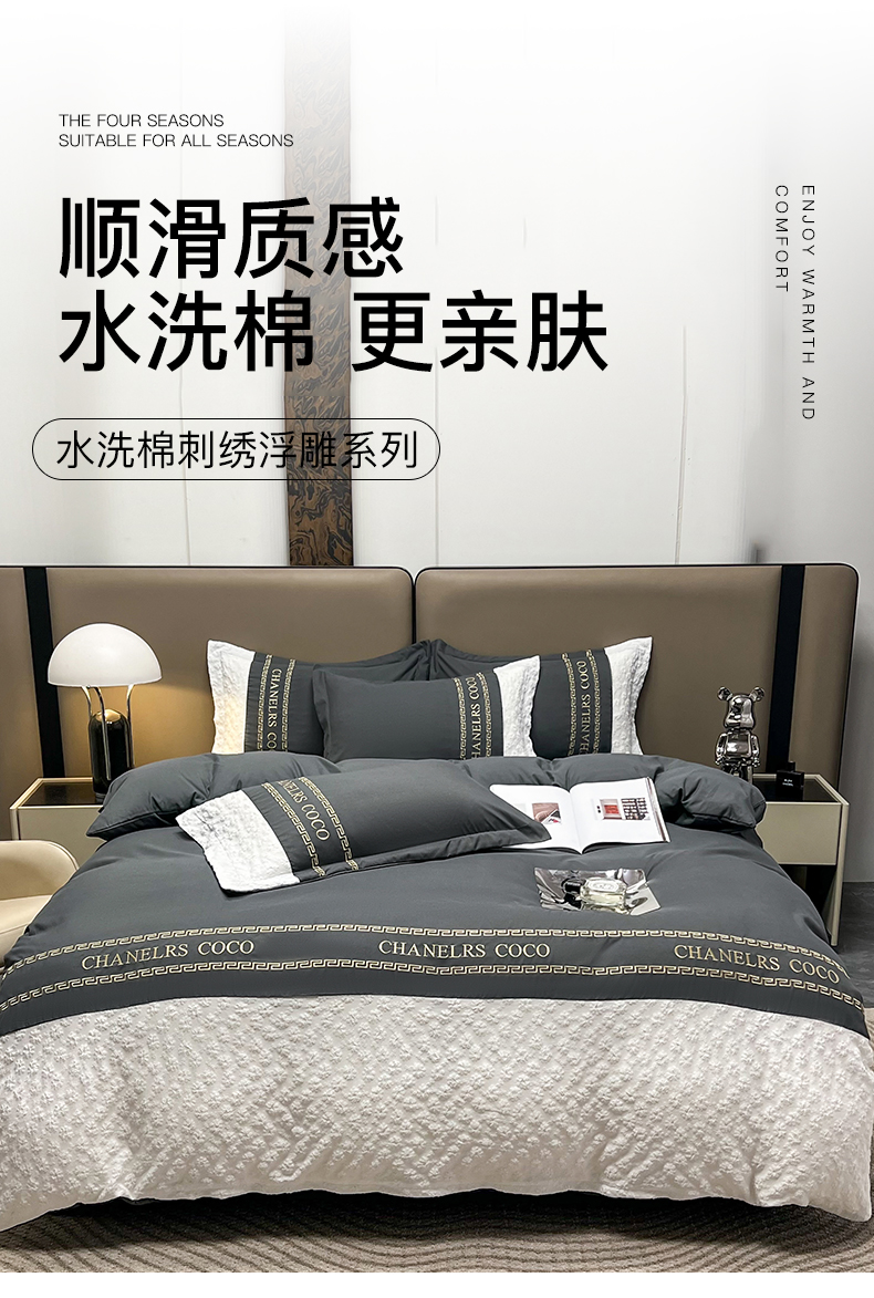 (总)千希家纺 2025新款轻奢简约亲肤棉绣花刺绣四件套-赛尔系列,赛尔-星耀黑,赛尔-蜜桃粉,赛尔-莫尼灰,赛尔-雾霾蓝