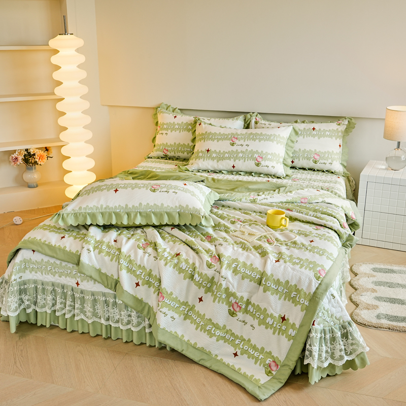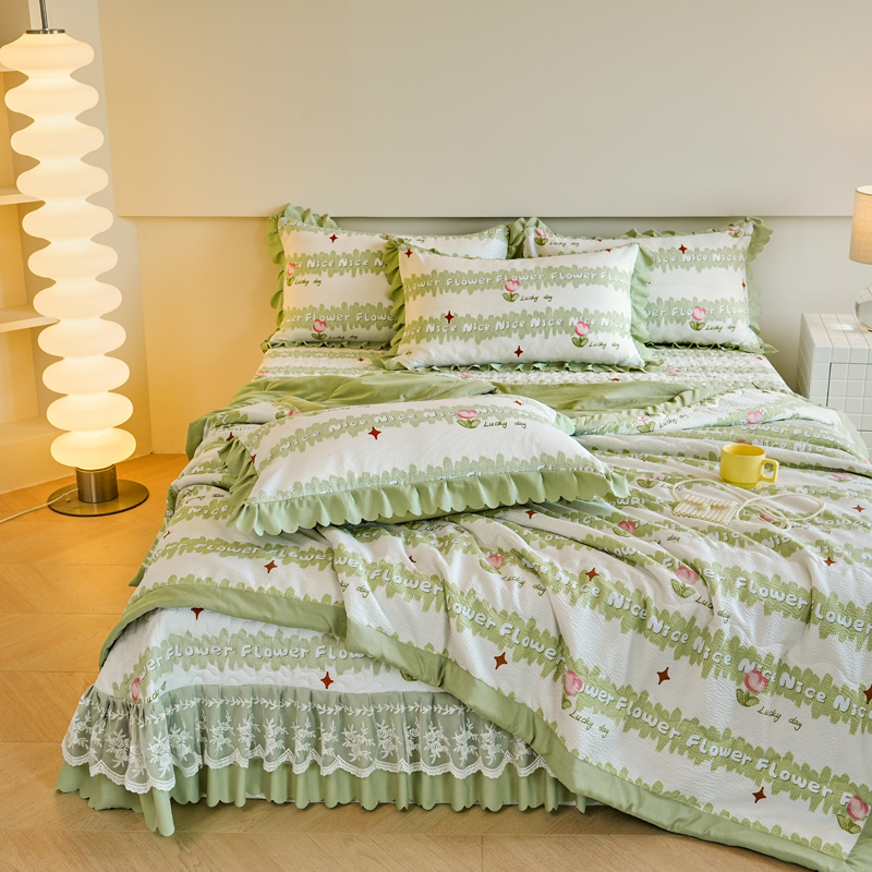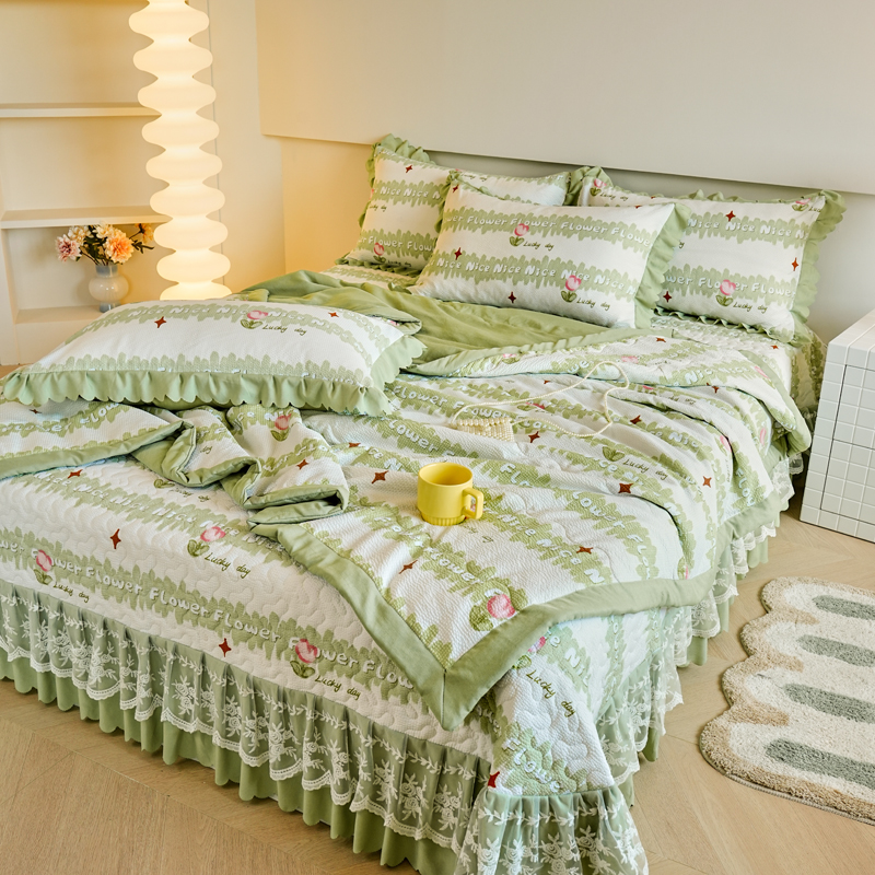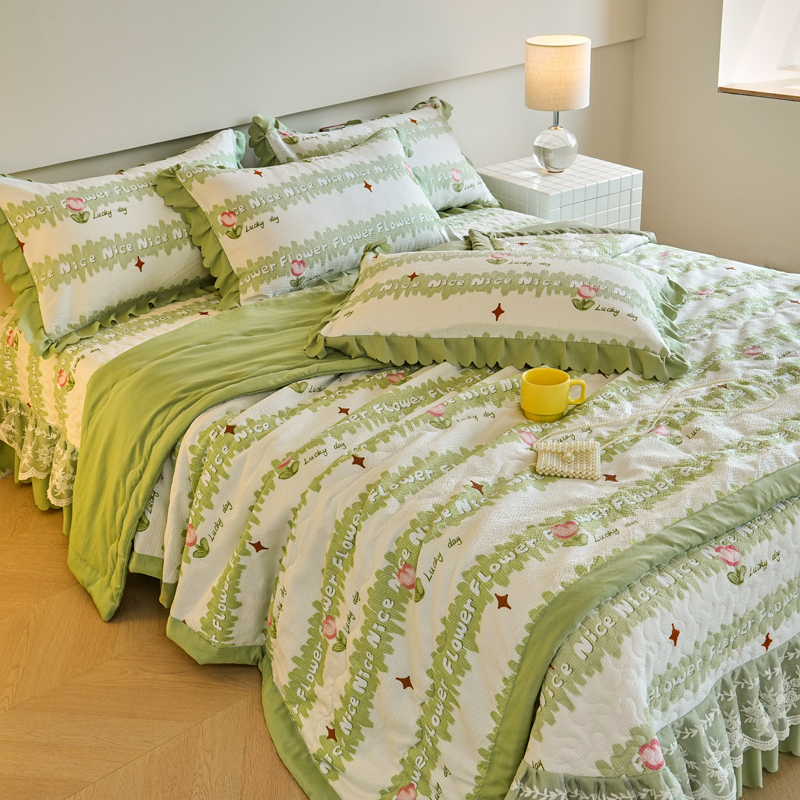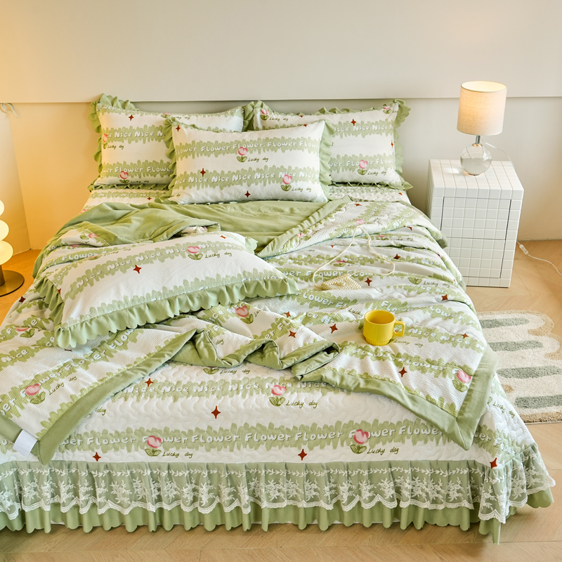 美莱家纺 2024新款软糯泡泡棉蕾丝床盖床盖四件套单品系列-床盖夏被四件套 郁金香