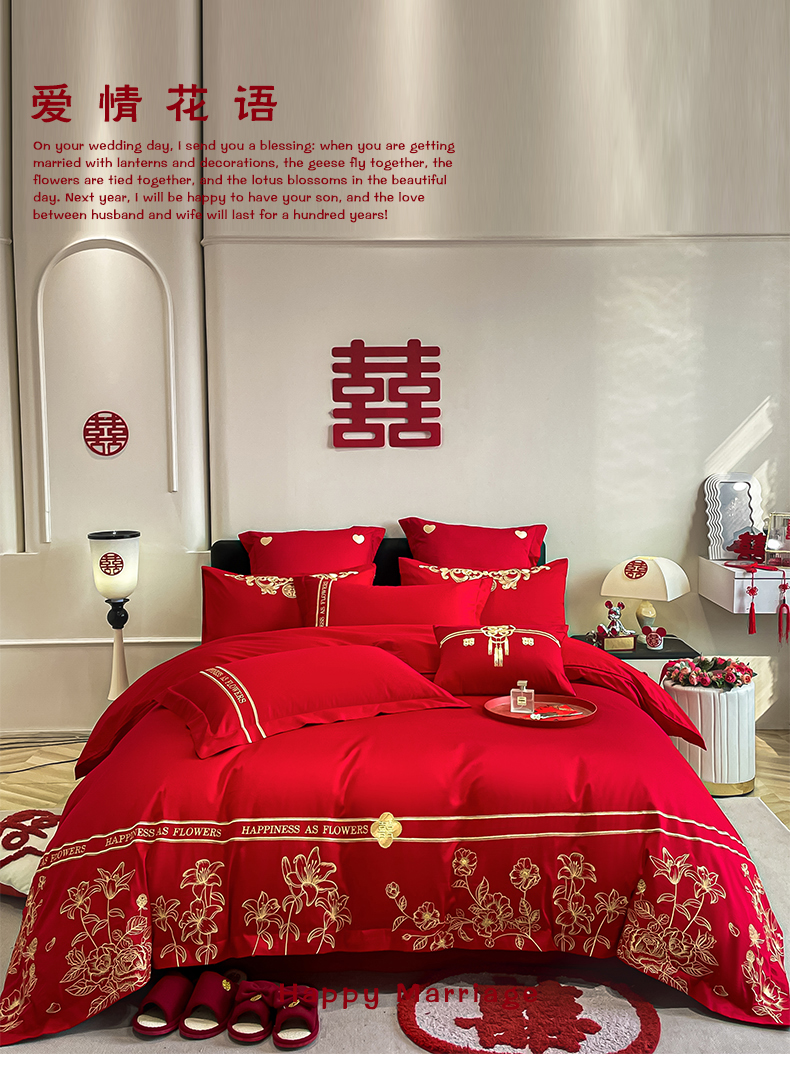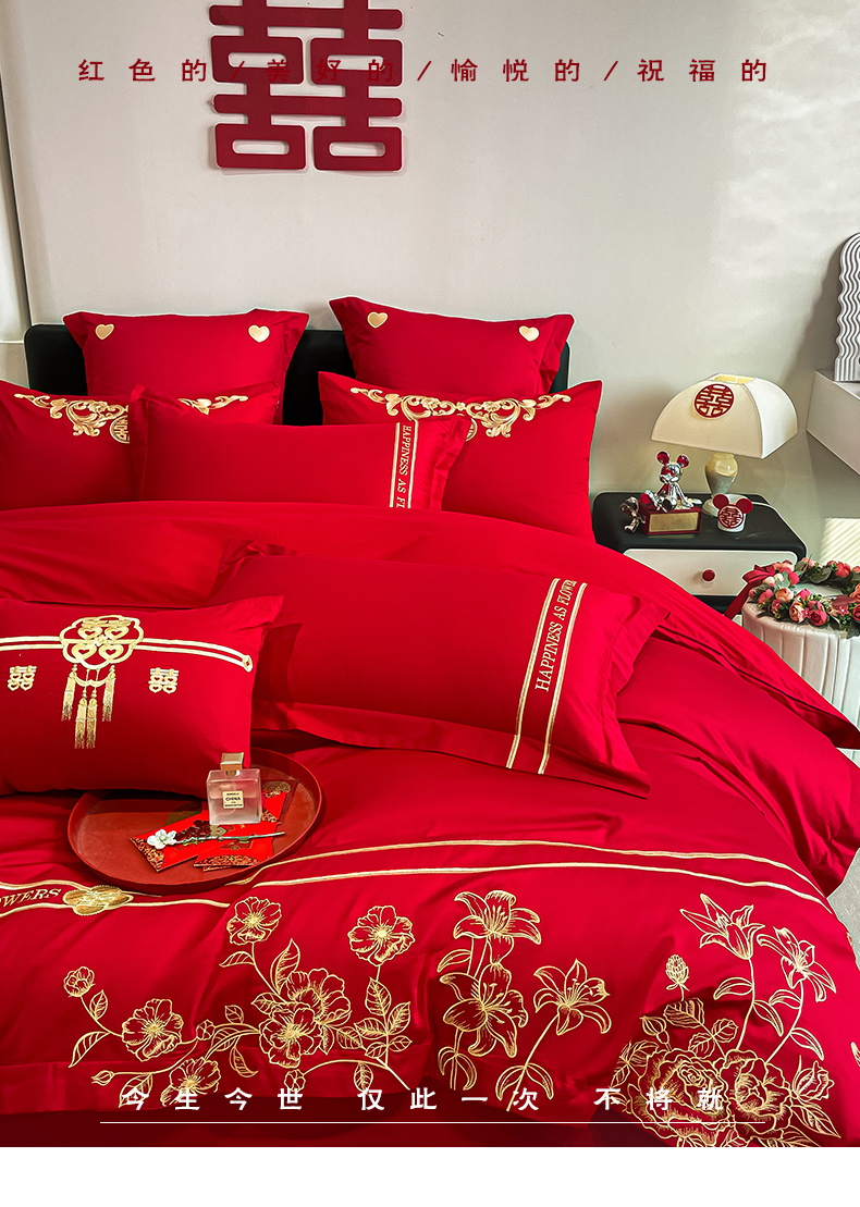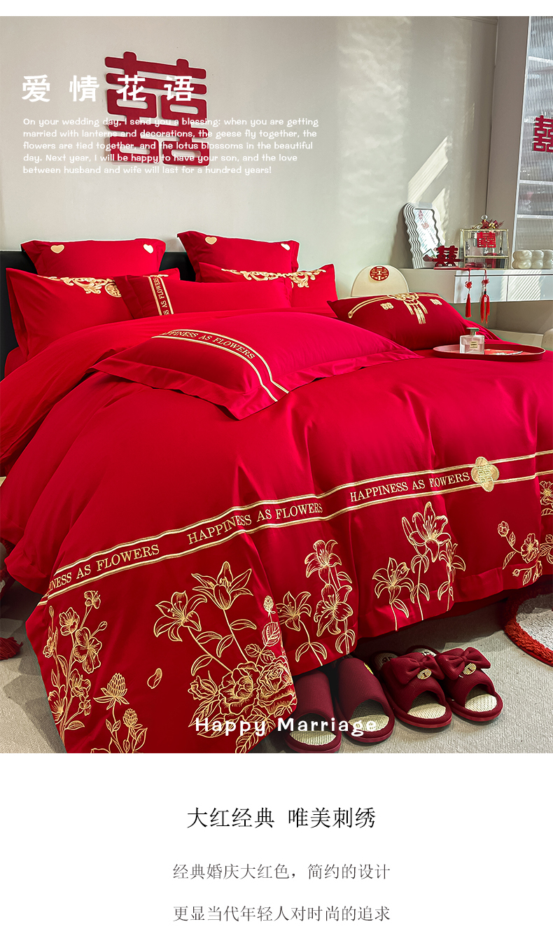 当前位置: 91家纺网 > 商品网购 > 床品套件 > 四件套 > 婚庆四件套 > 东方合美(原:皇家传奇) 2024新款轻奢纯棉贡缎织造印花婚庆四件套 爱情花语