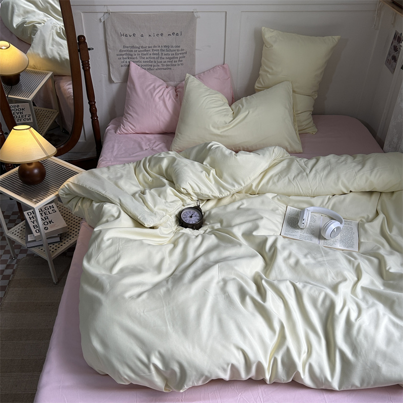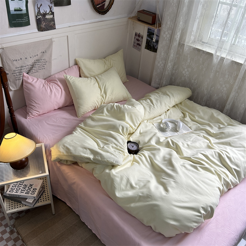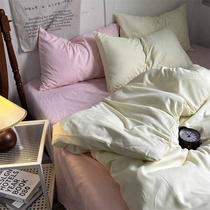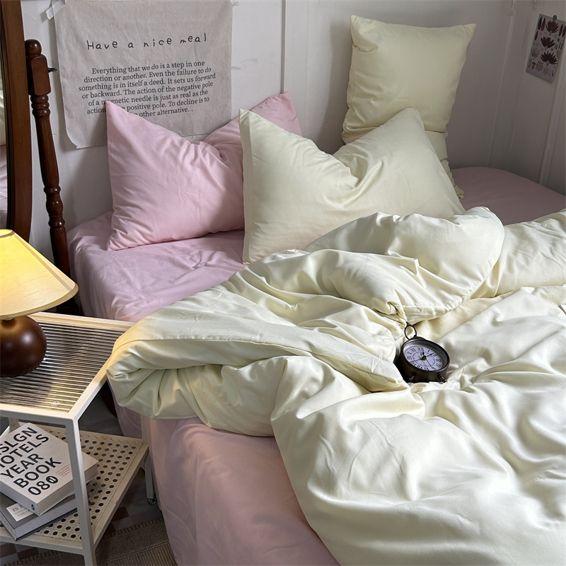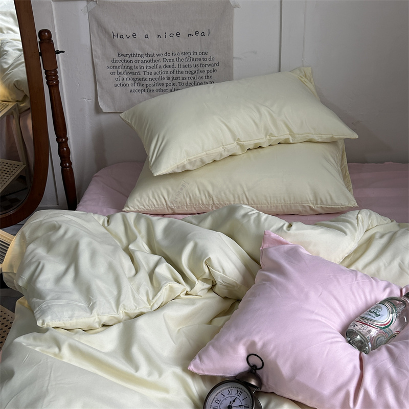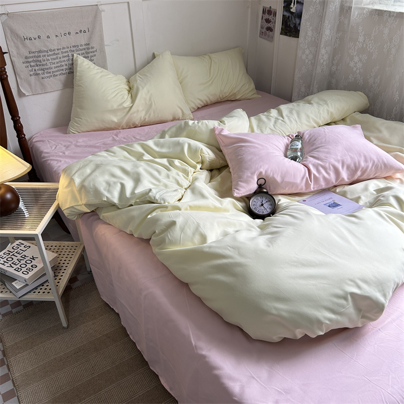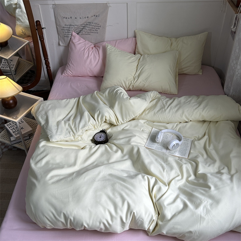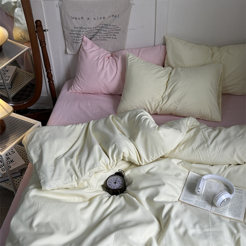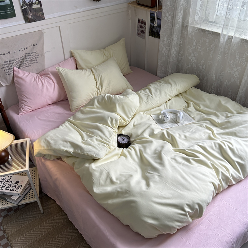 当前位置: 91家纺网 > 商品网购 > 床品套件 > 四件套 > 普通磨毛四件套 > 优迈 2024新款ins风小红书同款纯色双拼水洗棉四件套亲肤加厚磨毛四件套混搭系列-单被套单床单单枕套单床笠 芝士桃桃