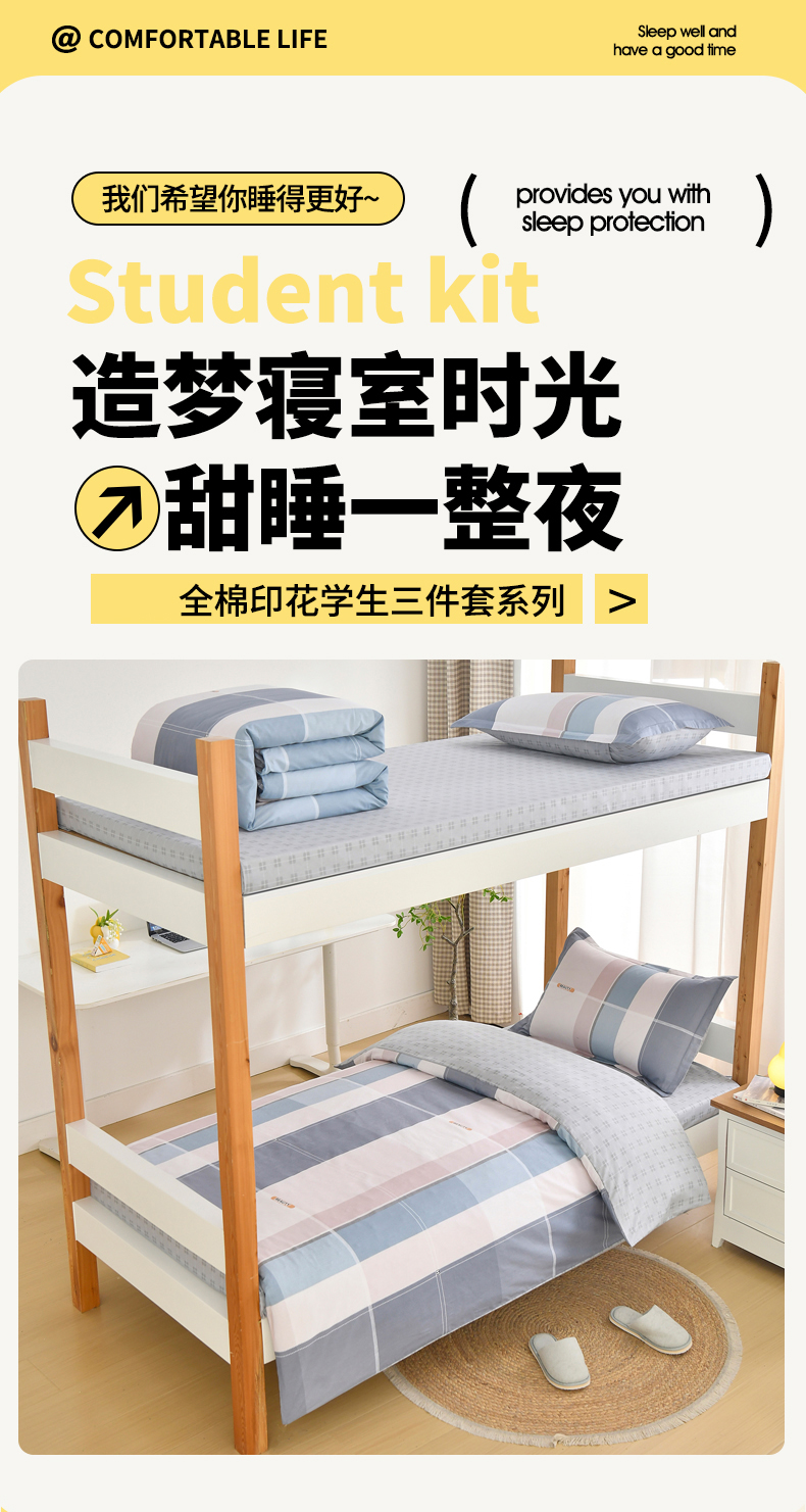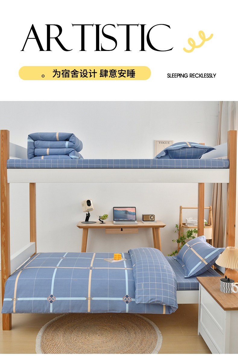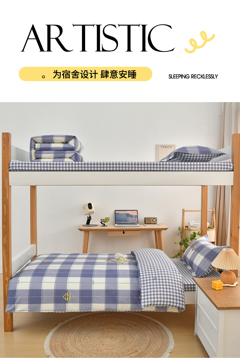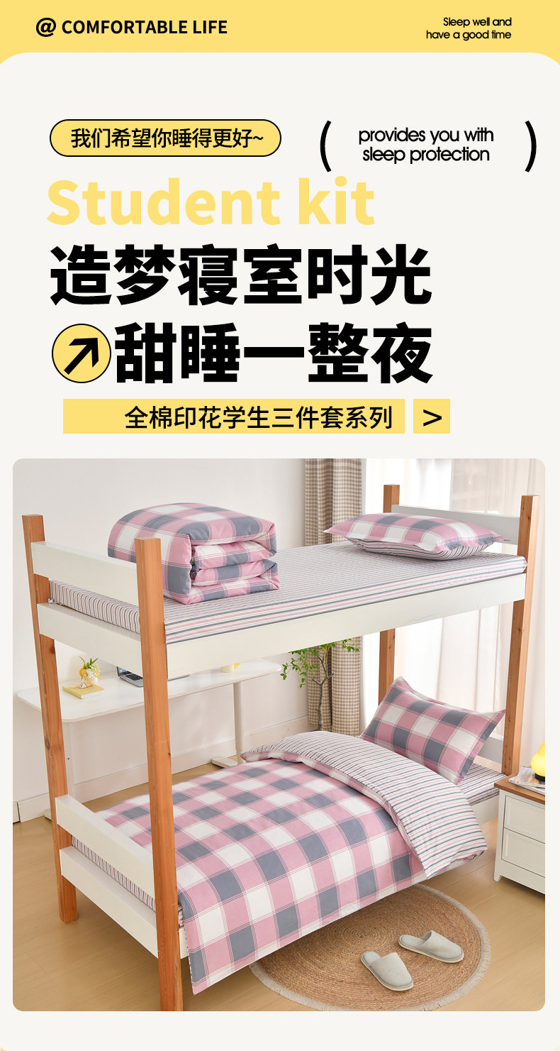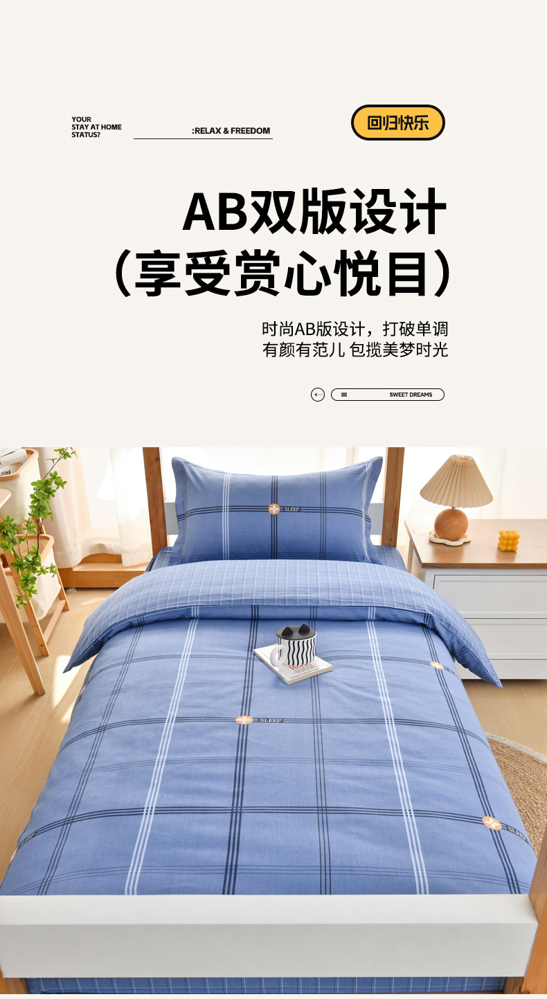 商品名称:(总)乐旗家纺 2025新款13372全棉学生宿舍床单款三件套纯棉六件套
