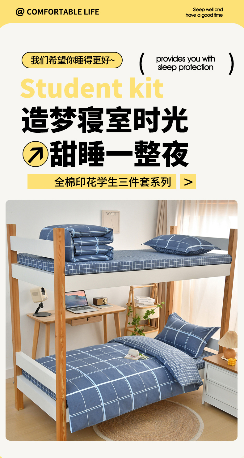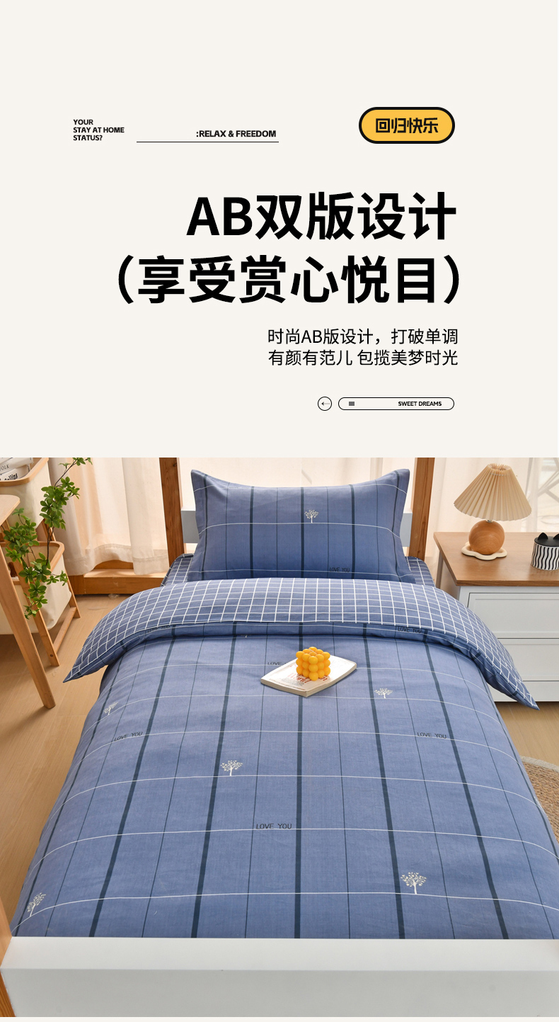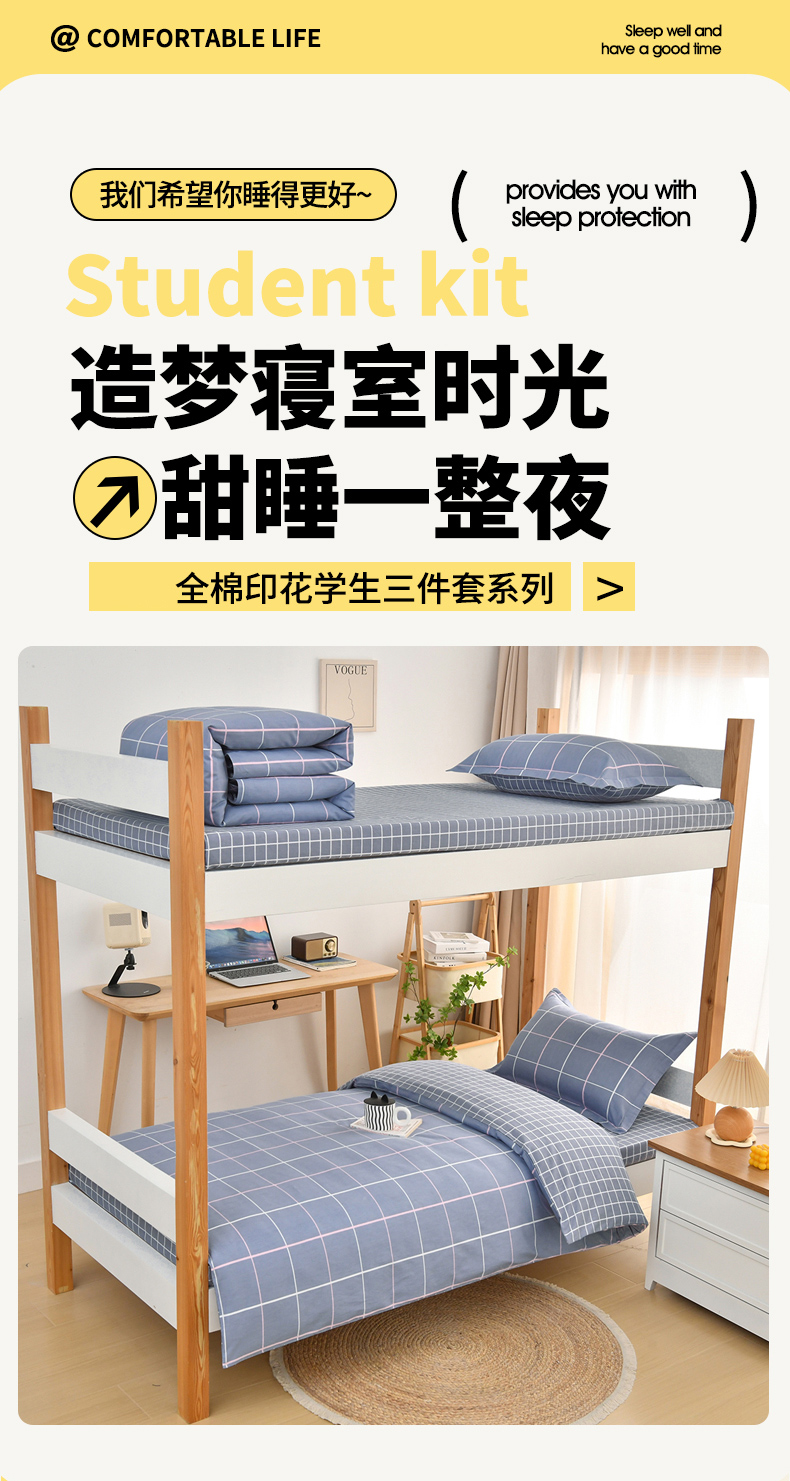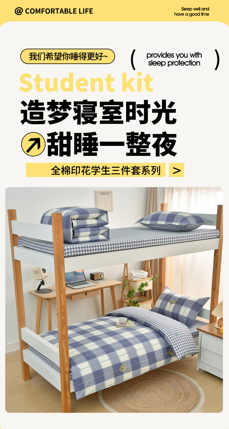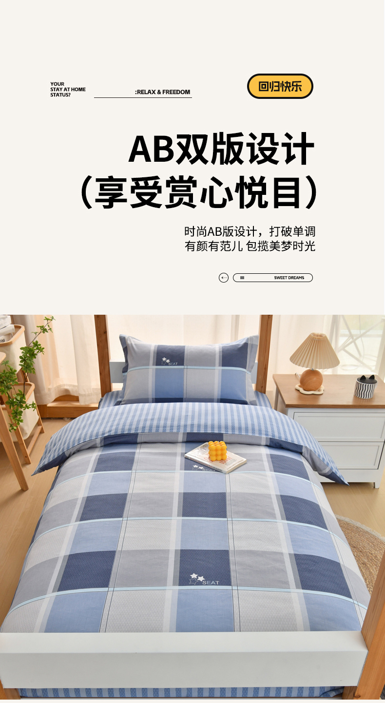 商品名称:(总)乐旗家纺 2025新款13372全棉学生宿舍床单款三件套纯棉六件套