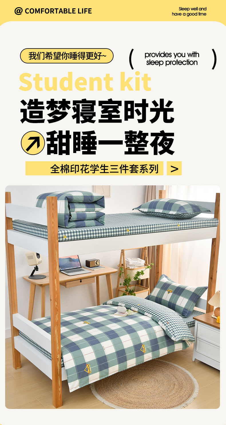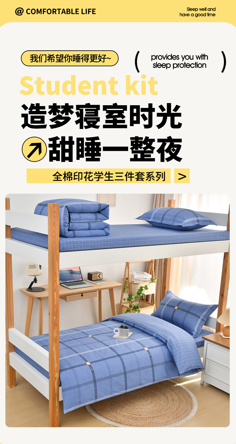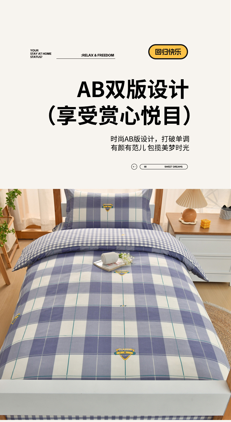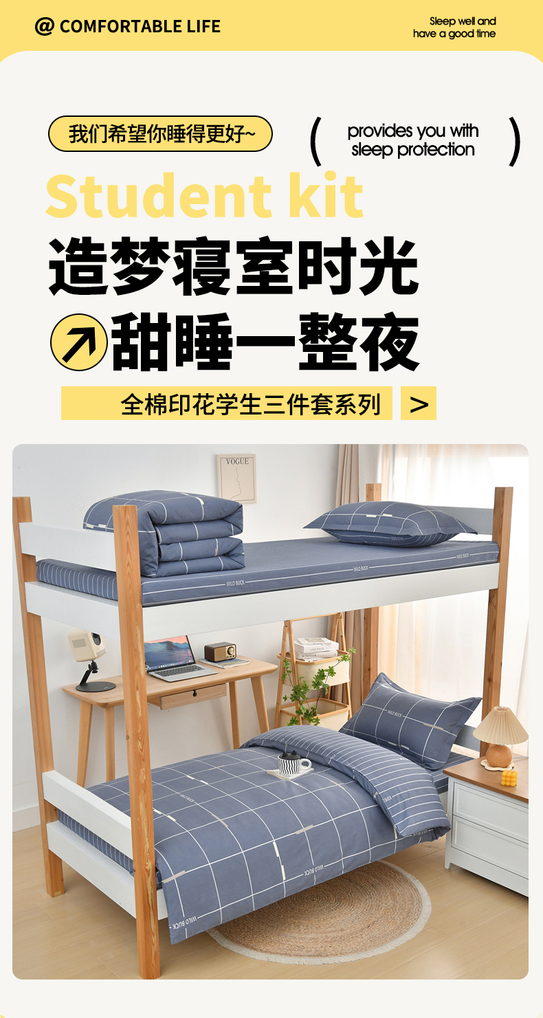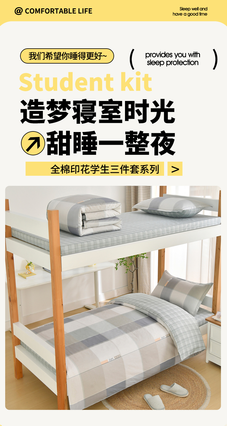 商品名称:(总)乐旗家纺 2025新款13372全棉学生宿舍床单款三件套纯棉六件套