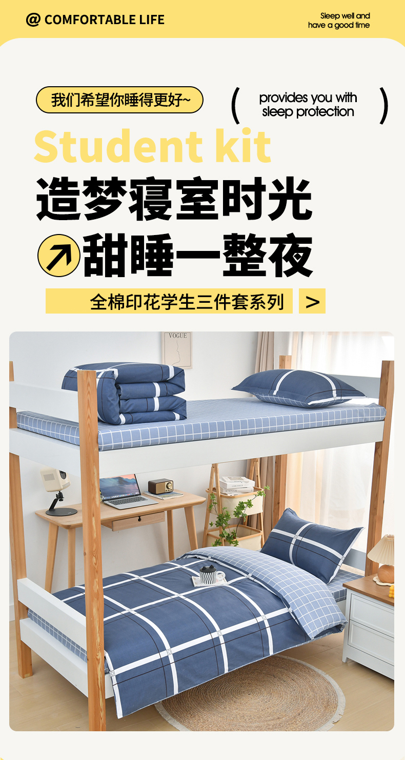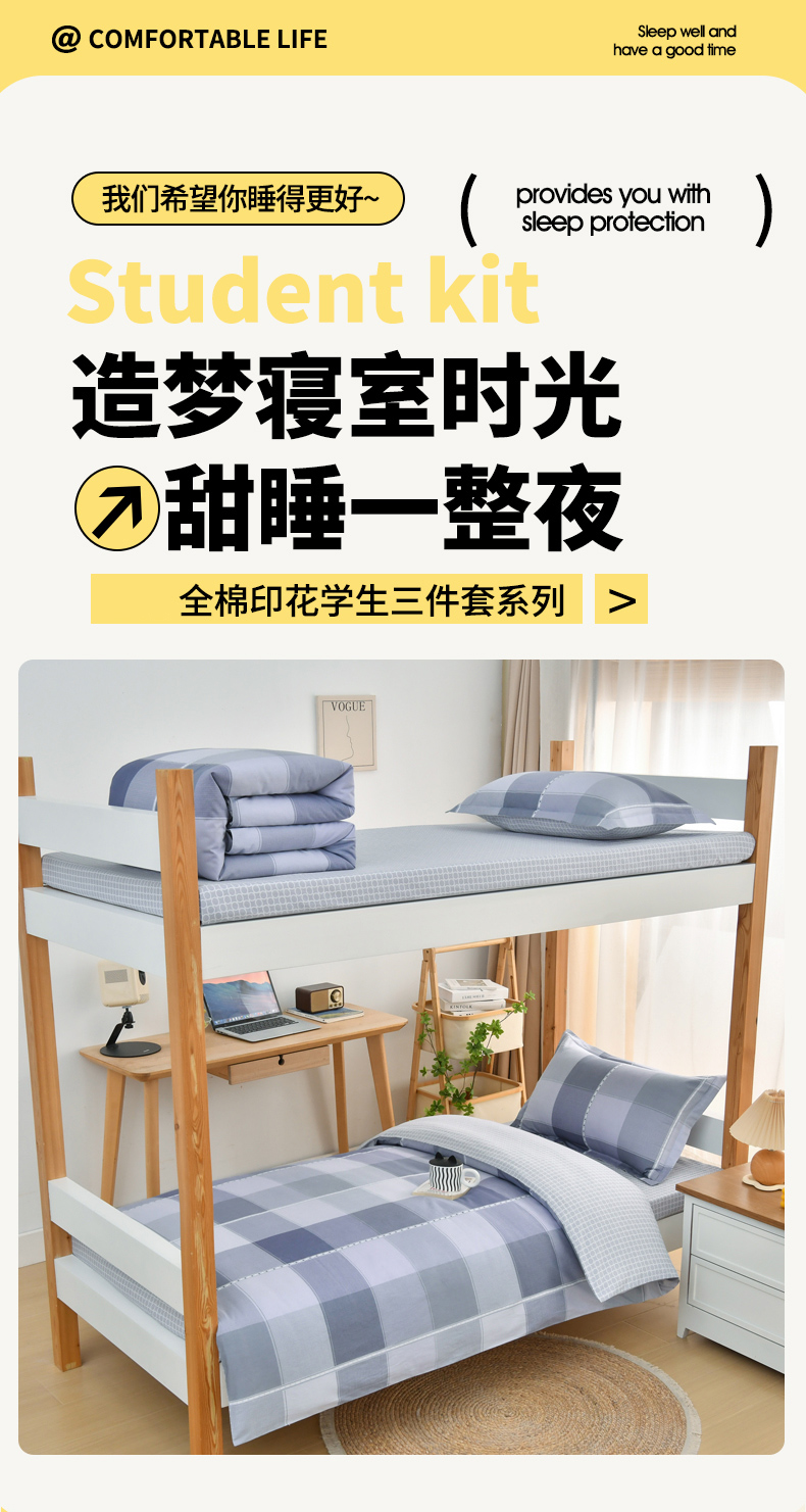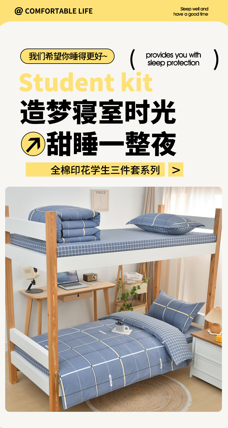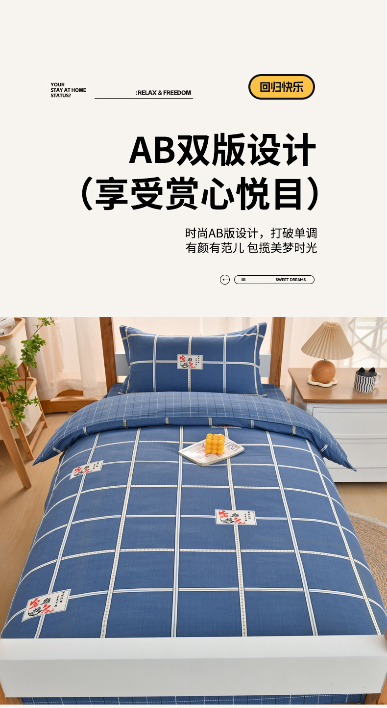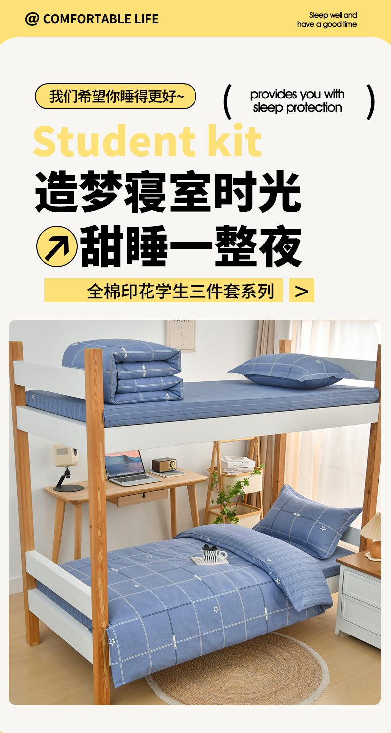 商品名称:(总)乐旗家纺 2025新款13372全棉学生宿舍床单款三件套纯棉六件套