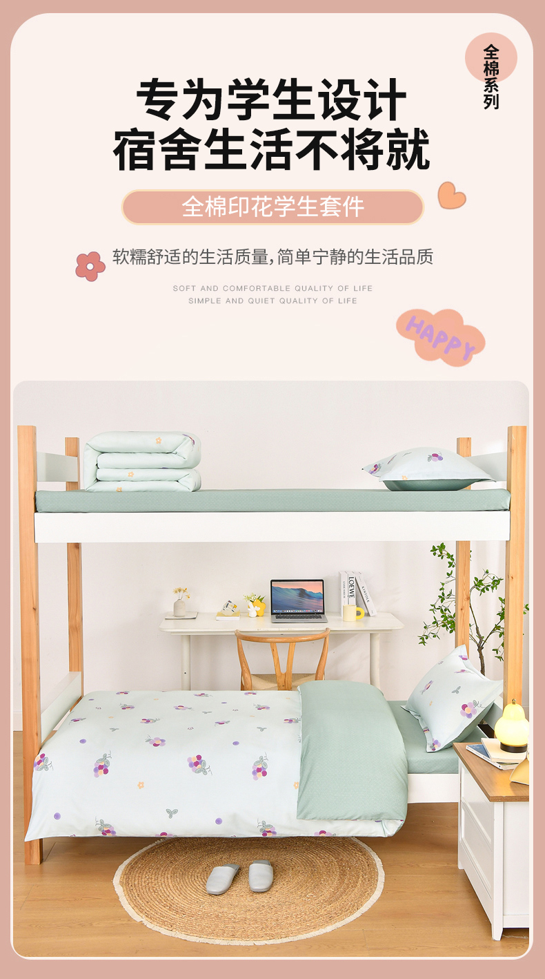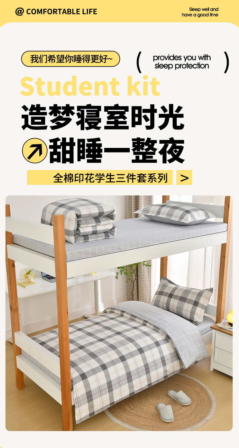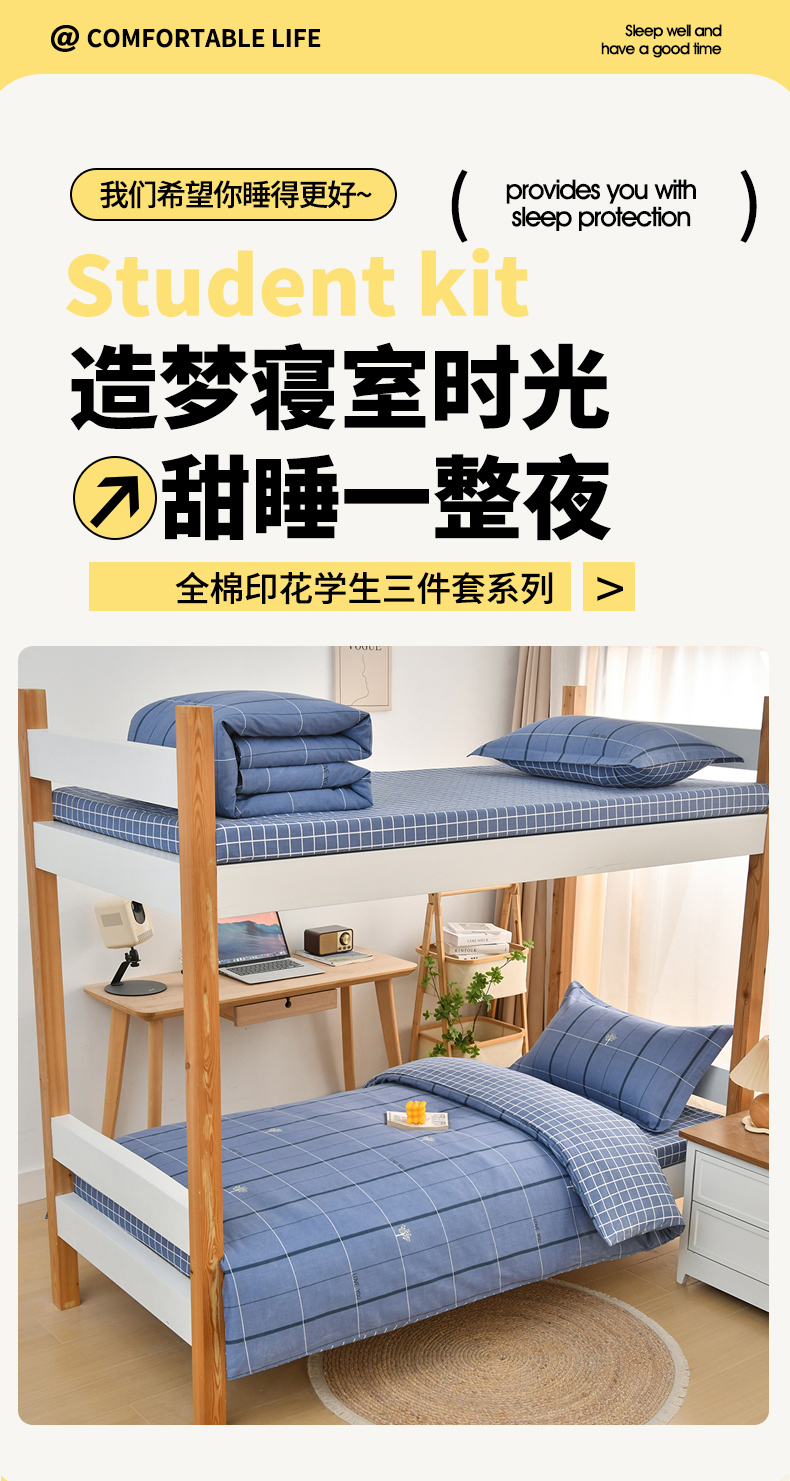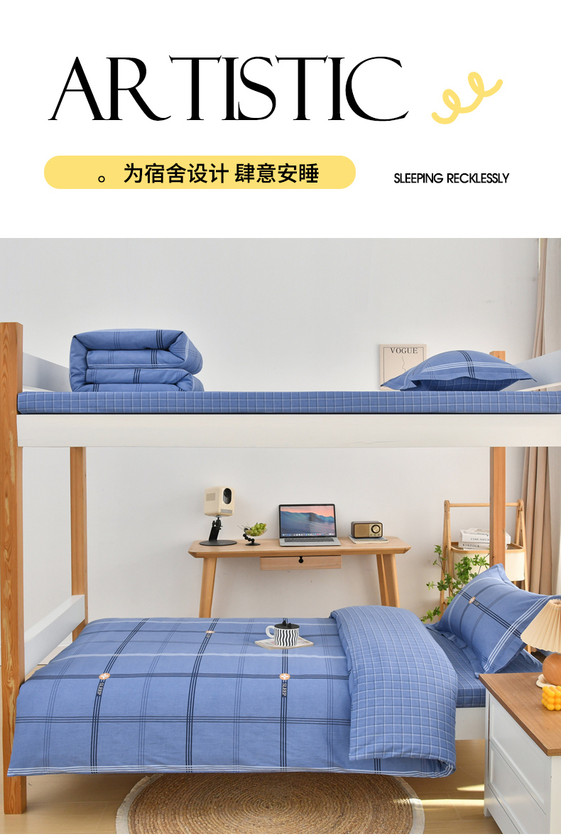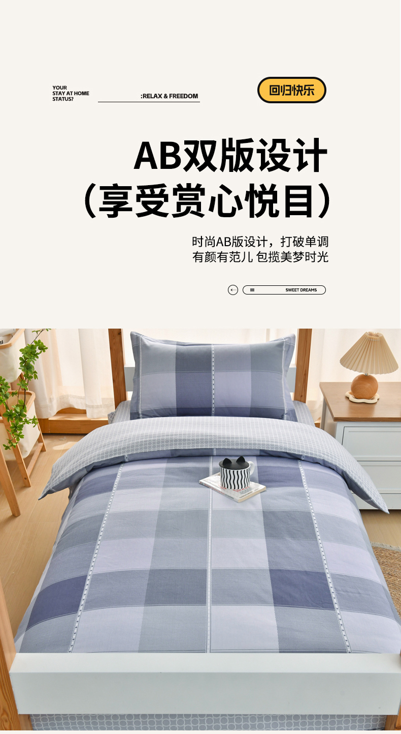商品名称:(总)乐旗家纺 2025新款13372全棉学生宿舍床单款三件套纯棉六件套