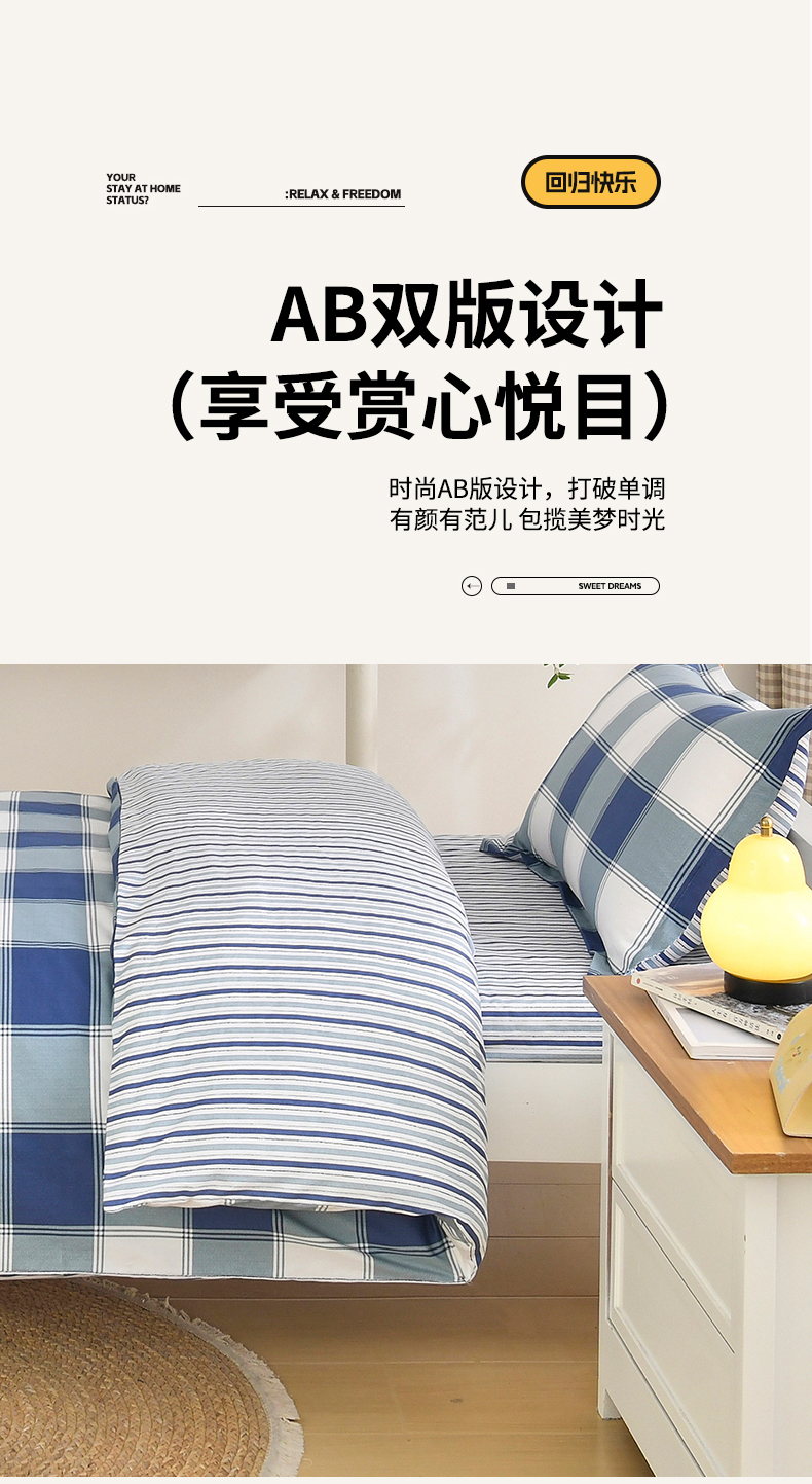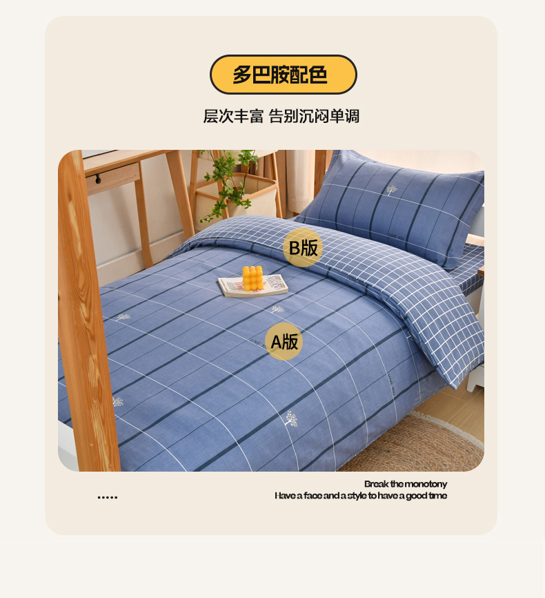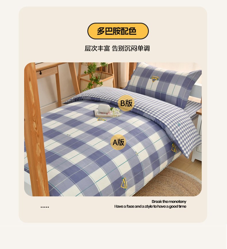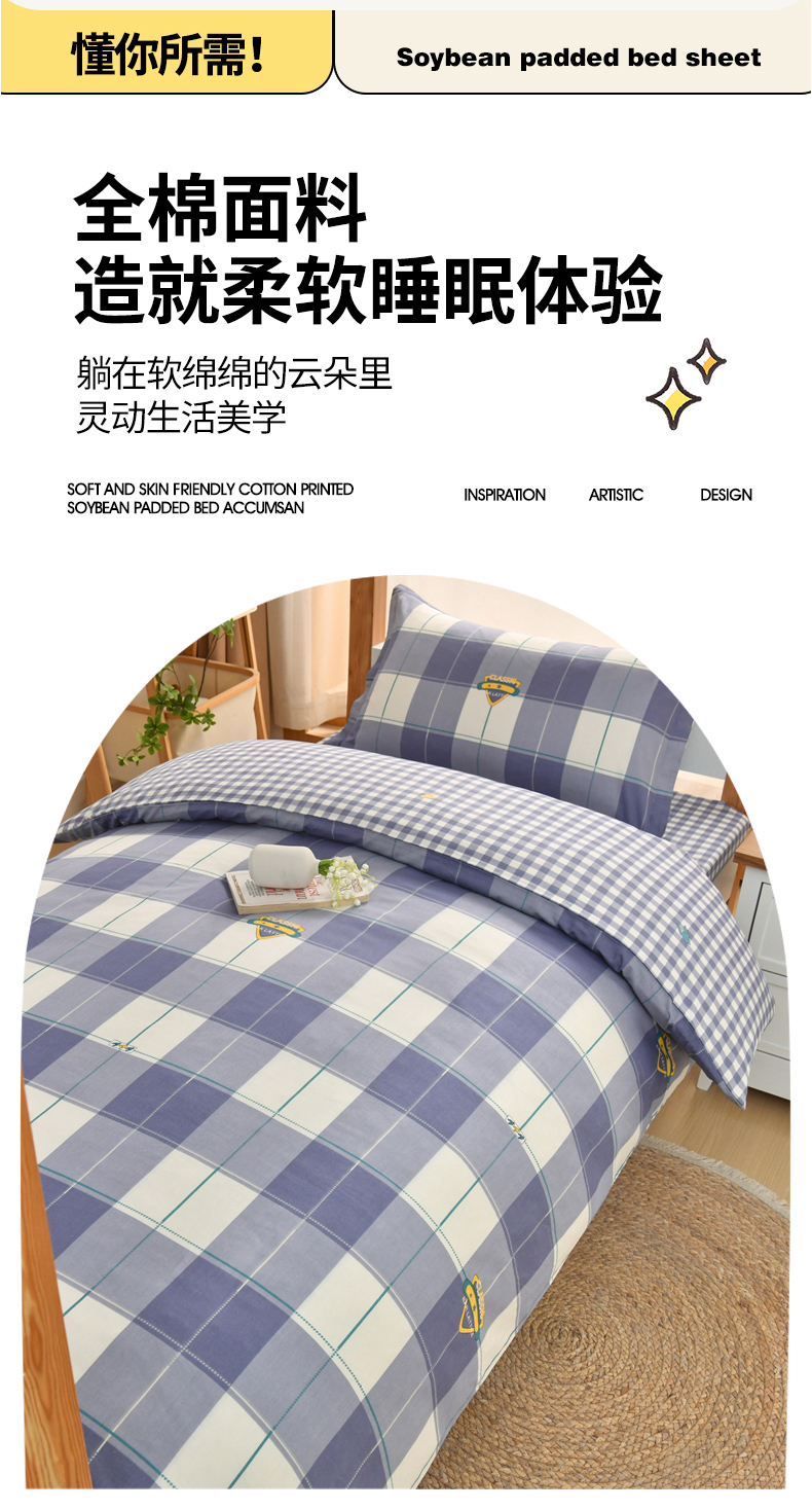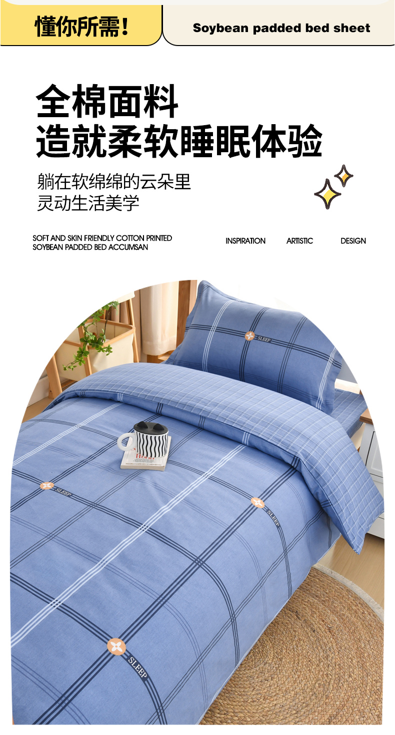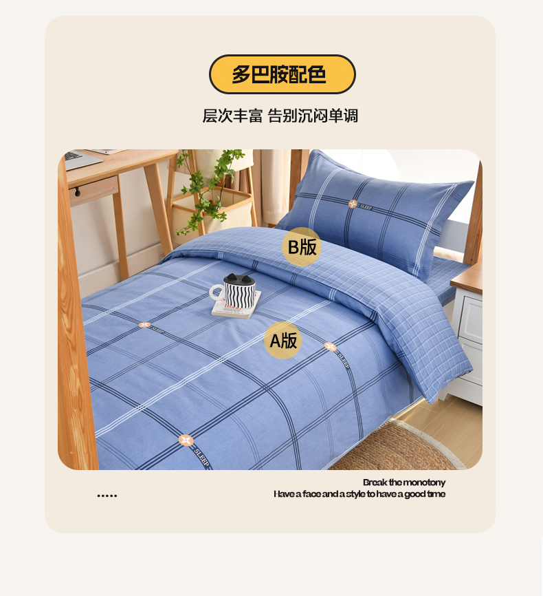 商品名称:(总)乐旗家纺 2025新款13372全棉学生宿舍床单款三件套纯棉六件套