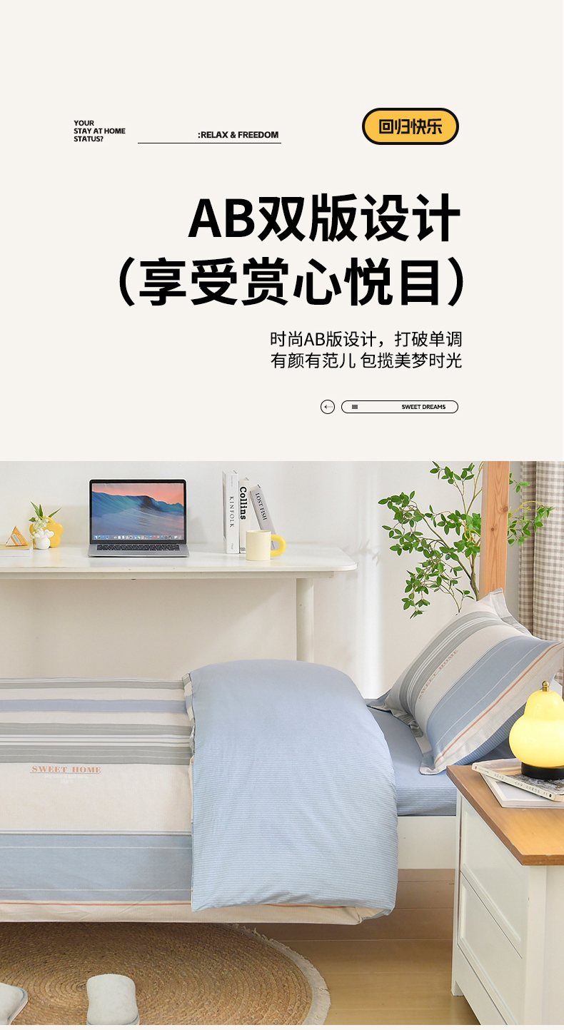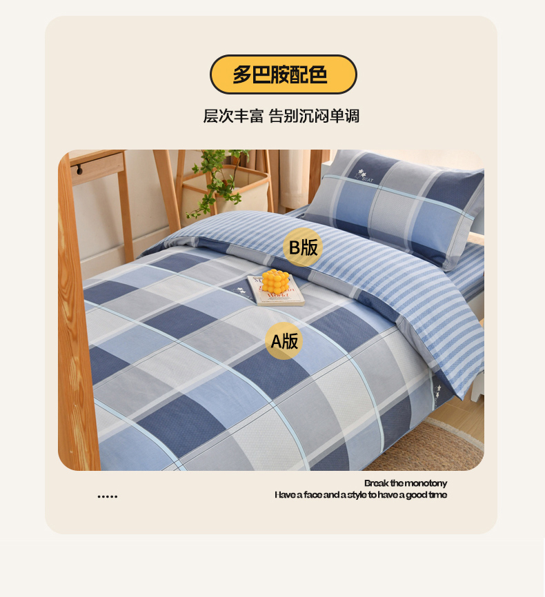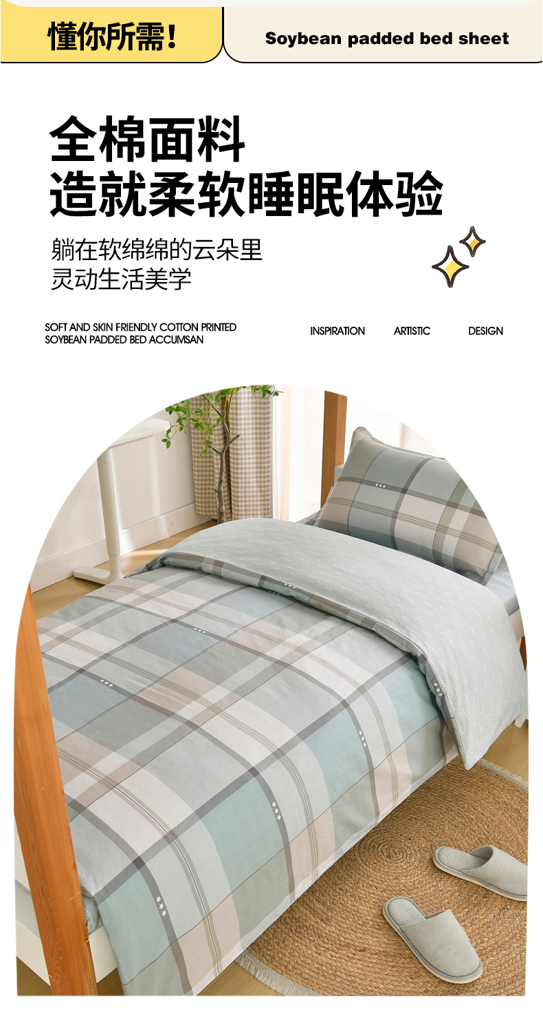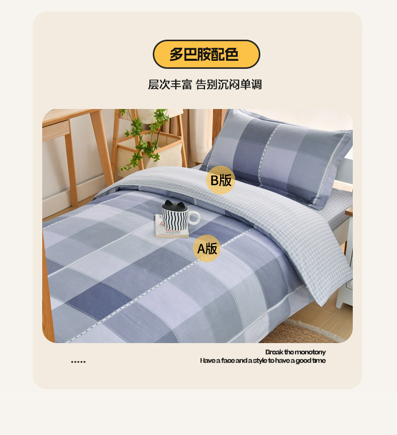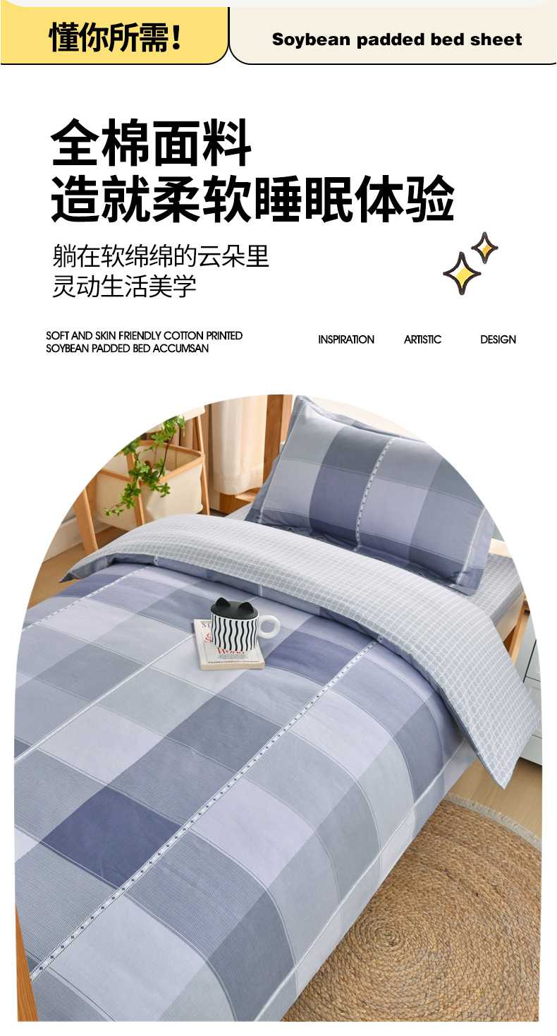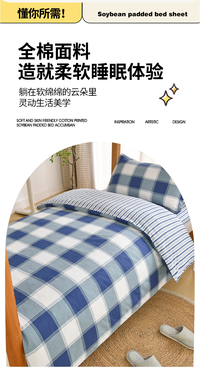 商品名称:(总)乐旗家纺 2025新款13372全棉学生宿舍床单款三件套纯棉六件套