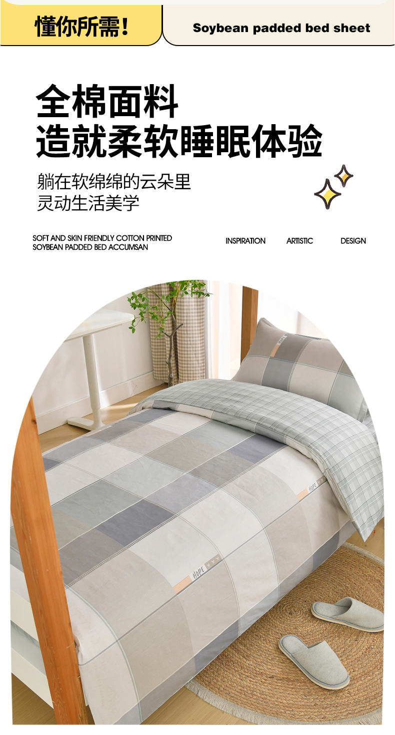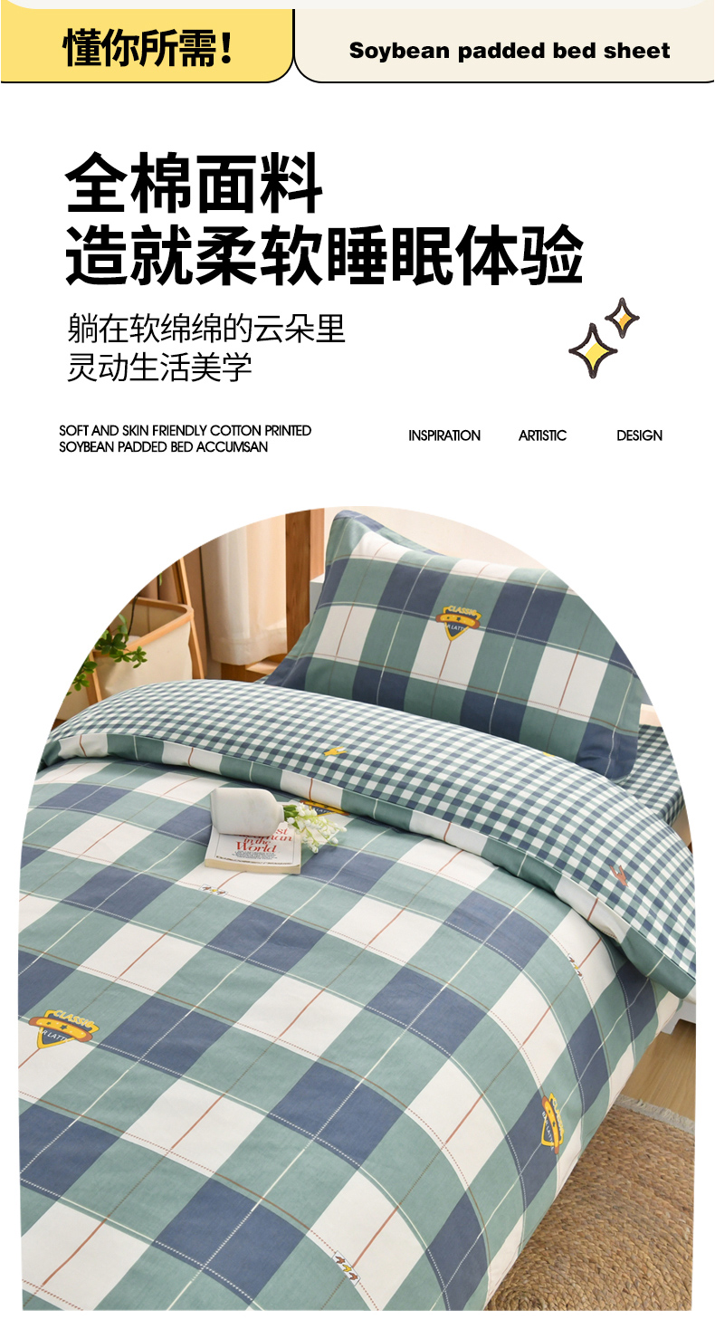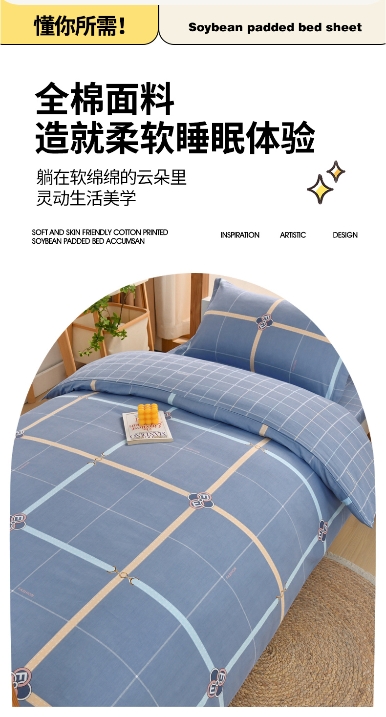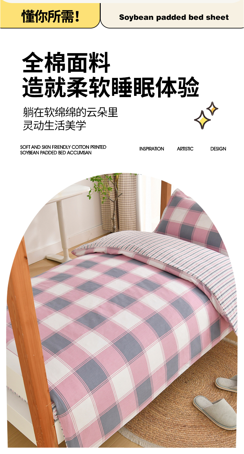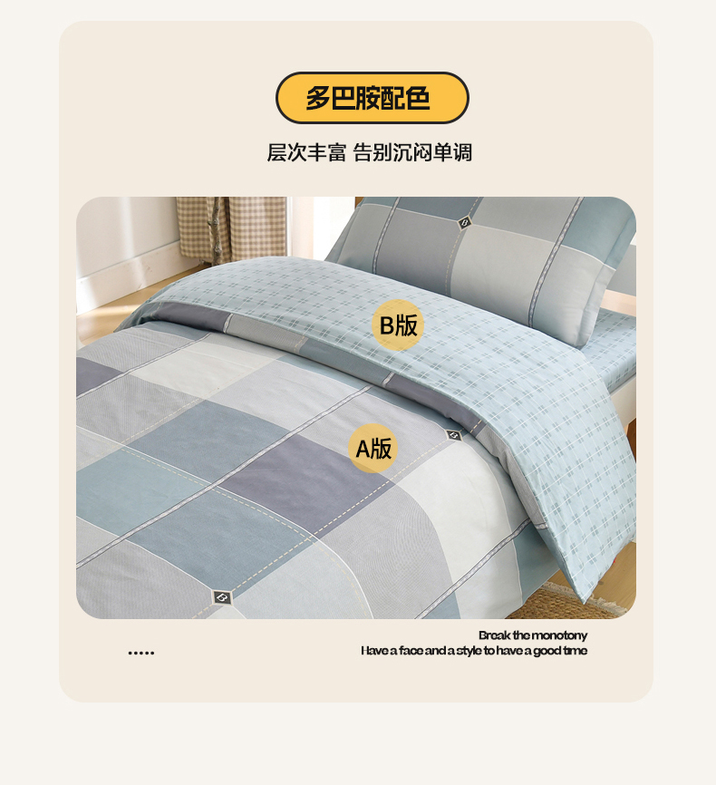 商品名称:(总)乐旗家纺 2025新款13372全棉学生宿舍床单款三件套纯棉六件套