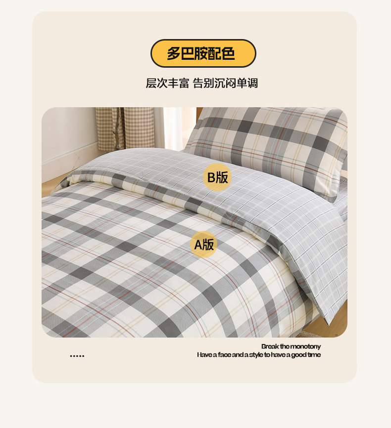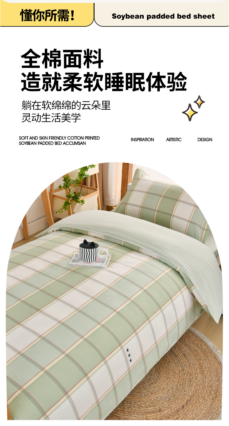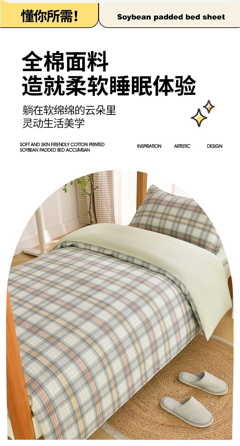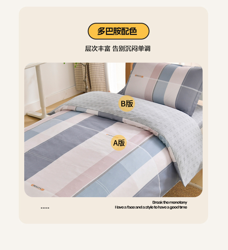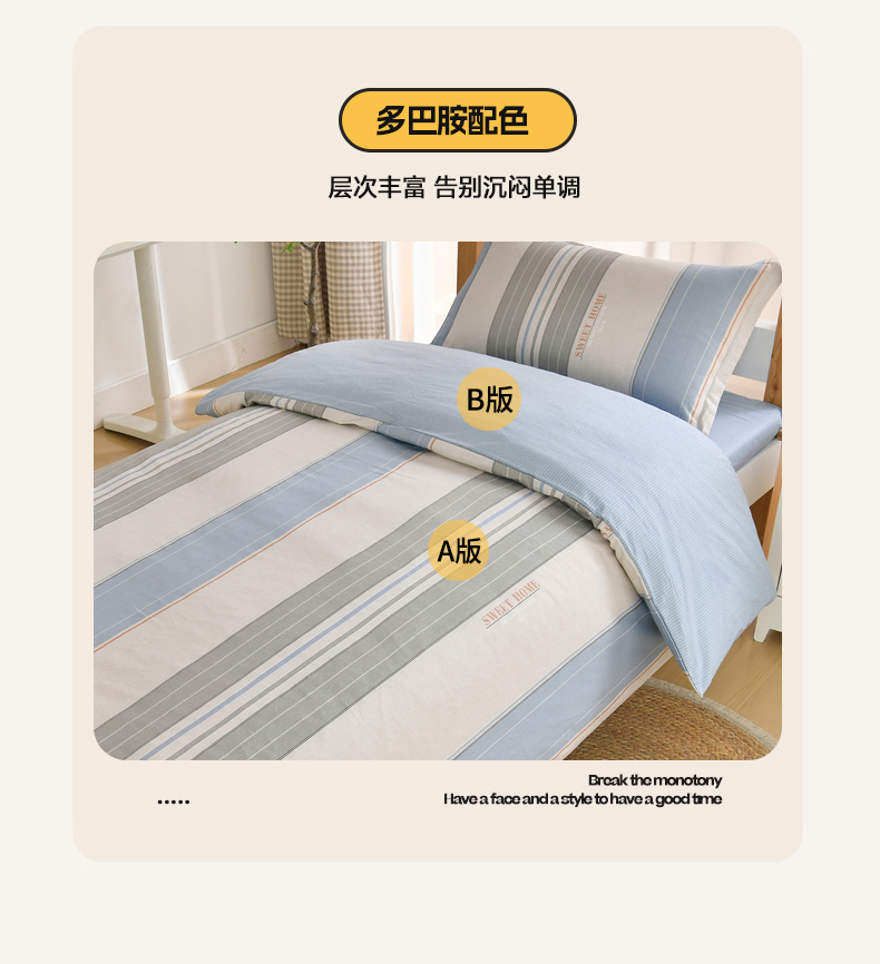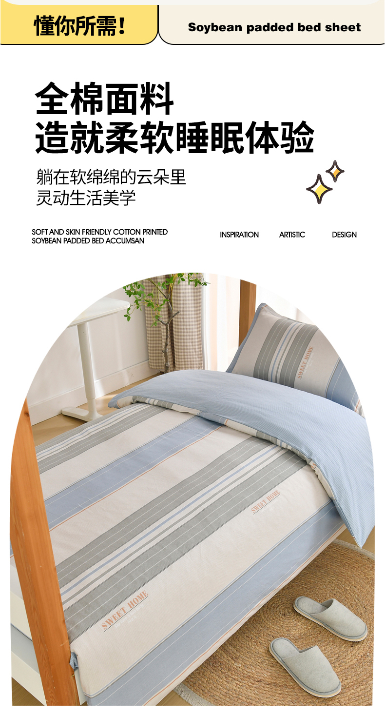 商品名称:(总)乐旗家纺 2025新款13372全棉学生宿舍床单款三件套纯棉六件套