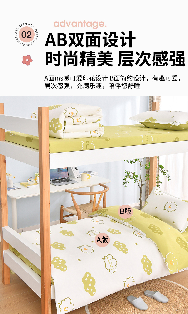 (总)乐旗家纺 2025新款5斤加厚牛奶绒三件学生宿舍上下铺单人床,蝴蝶结,简单爱,简约时尚,可爱米,可爱熊,同桌的你,晚安好梦,心心相印,熊猫乐园,叶叶情深,云朵