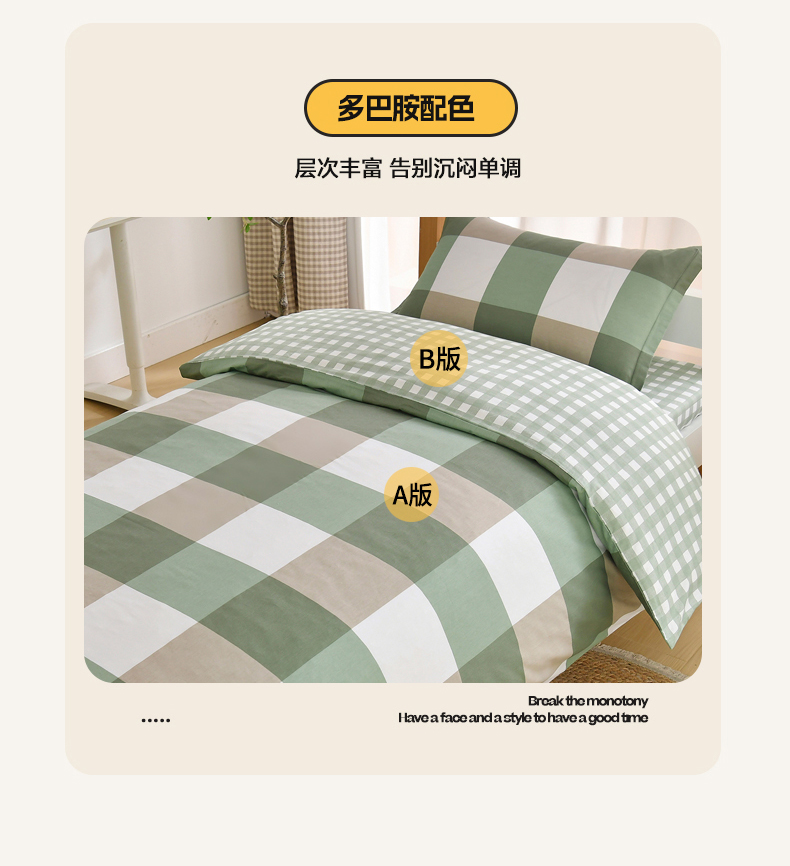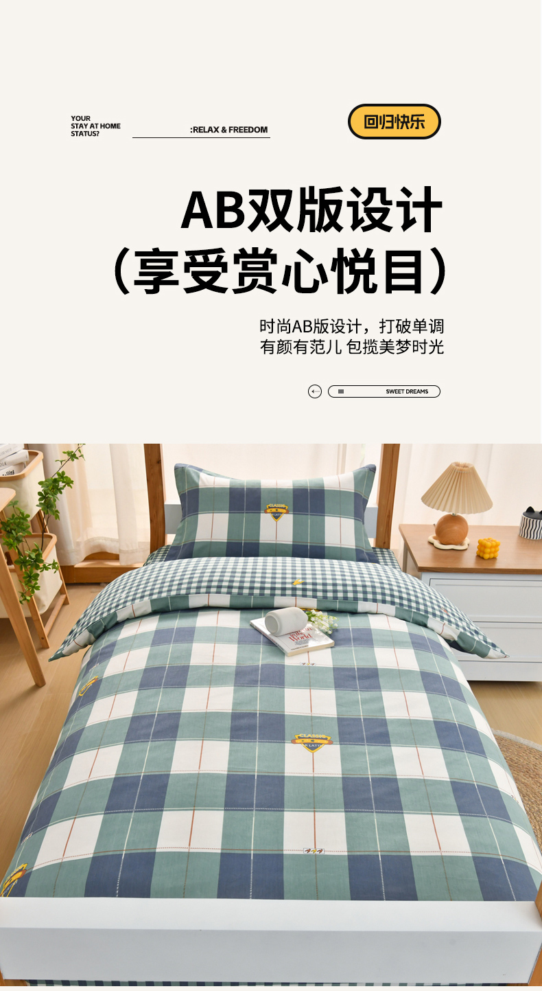 (总)乐旗家纺 2024新款13372全棉床笠款环保学生套件,校园风格,艾伦格,宝利格绿,潮流前线,大帅格,发财树,格莱美,好记忆,金榜题名-蓝,莫斯格,萨尔,维卡,闲趣-灰,闲趣-绿