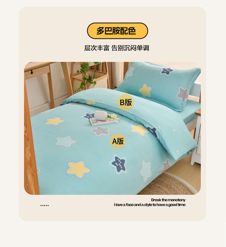 六件套:【三件套+4斤棉花被+3斤棉花褥垫(90*200)+枕芯】 | ¥148.00 |