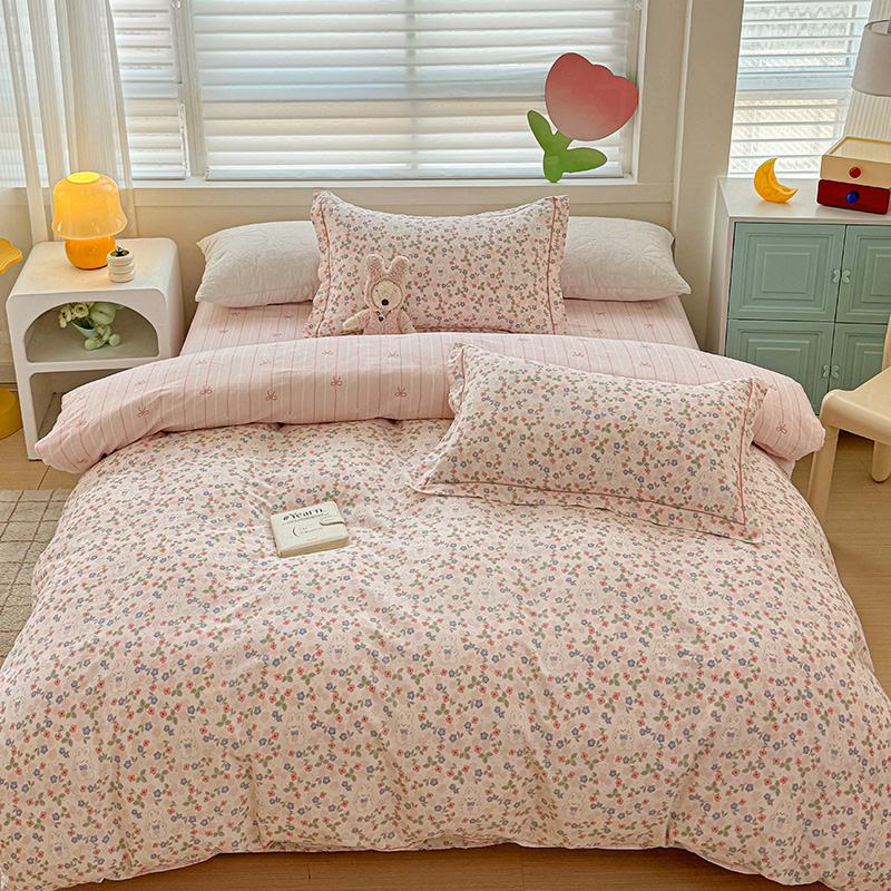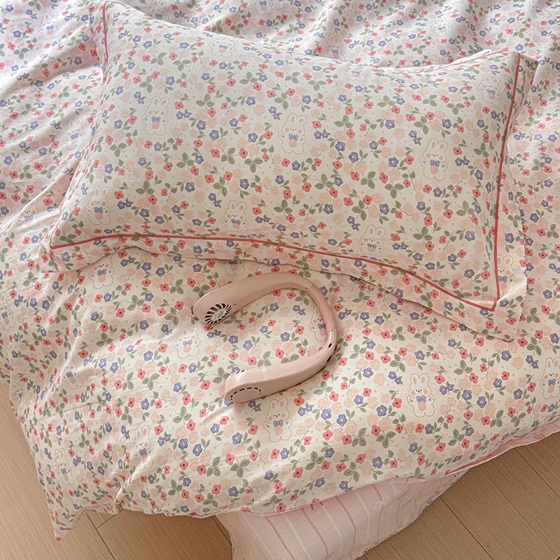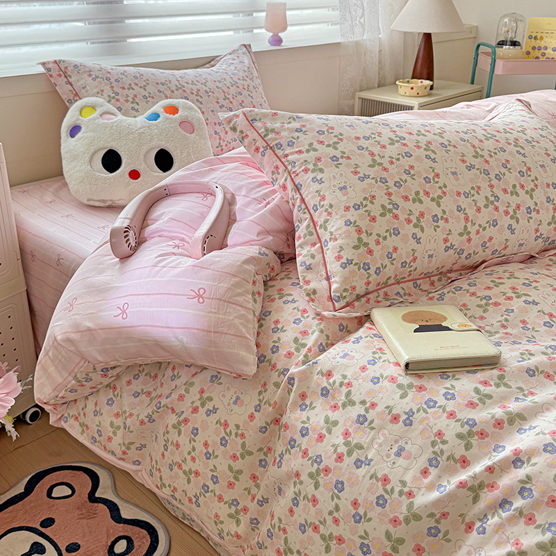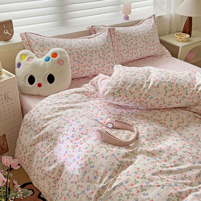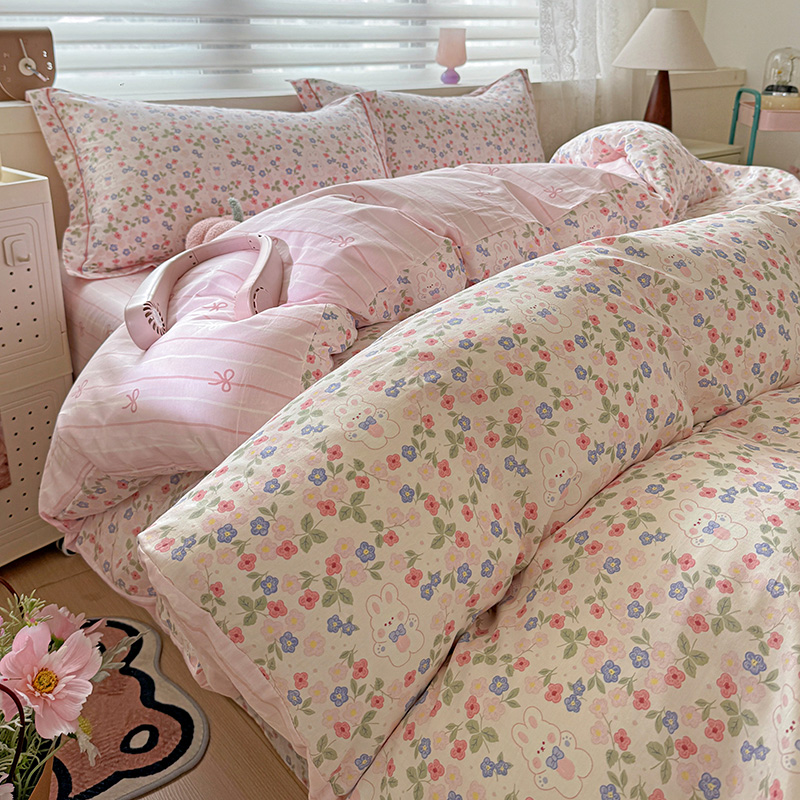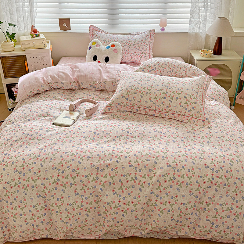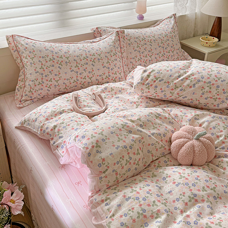 乐童 2024新款直播爆款13070纯棉印花吊边款一字绣四件套第八波小花兔