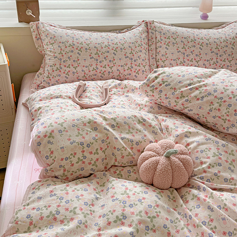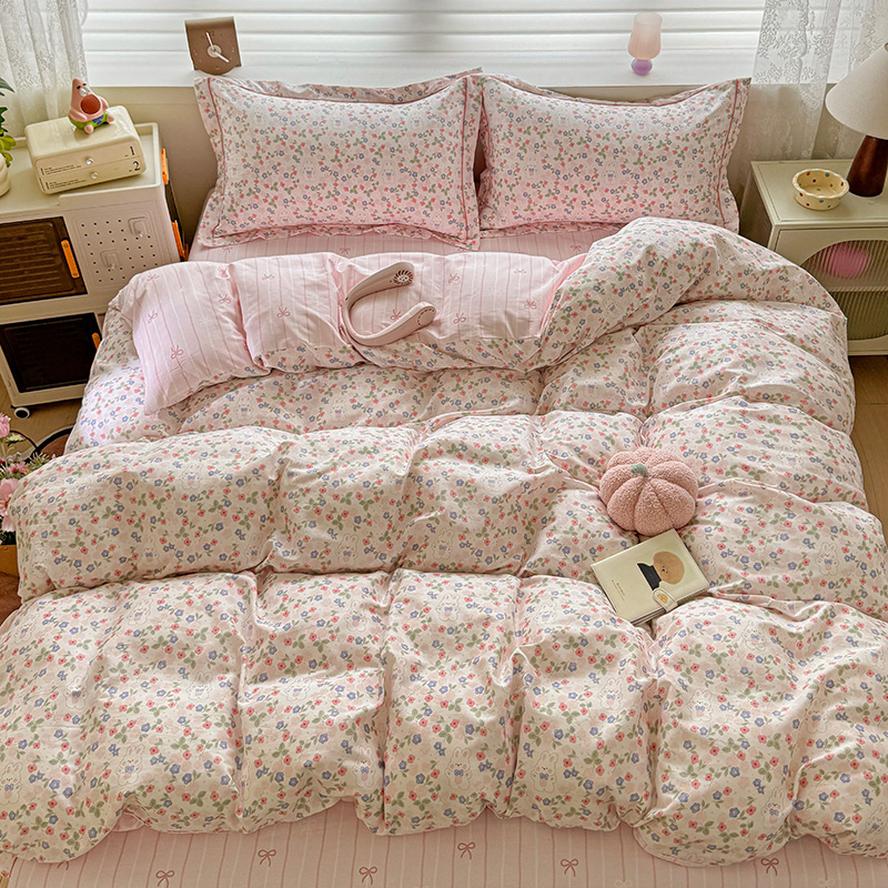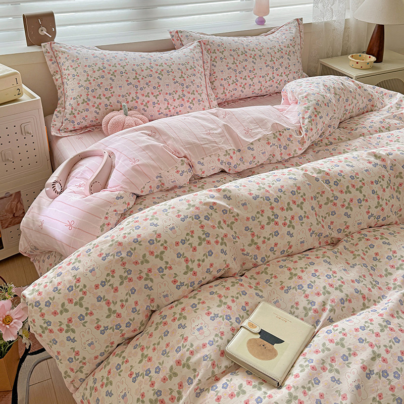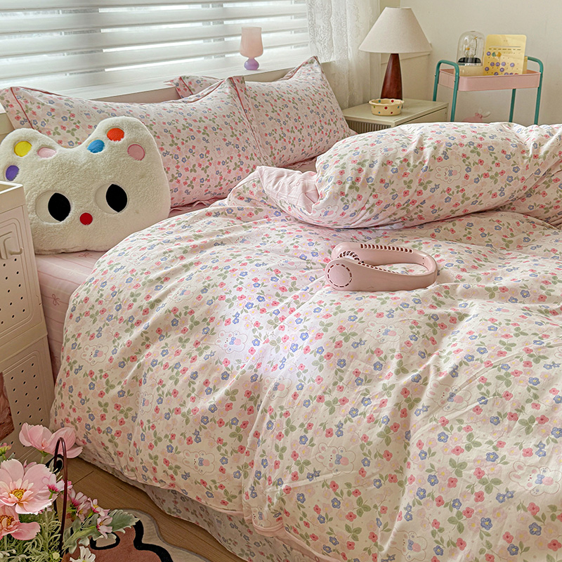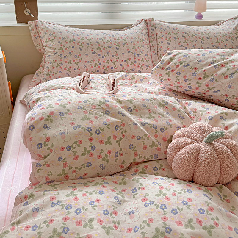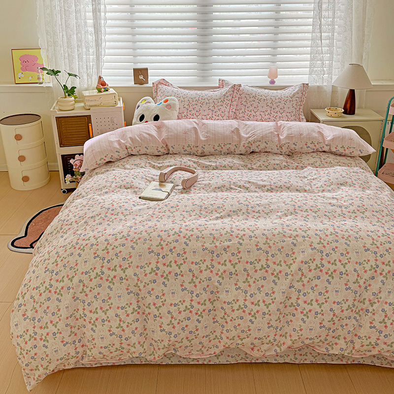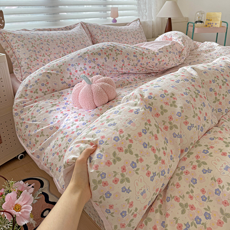 乐童 2024新款直播爆款13070纯棉印花吊边款一字绣四件套第八波小花兔