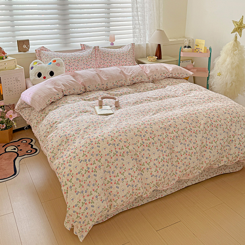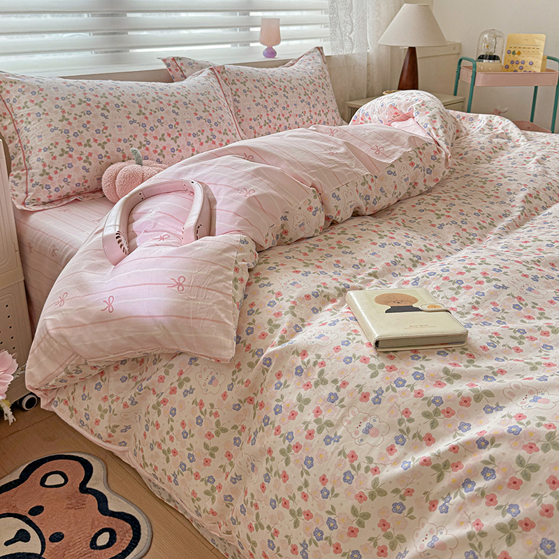 (总)乐童家纺 2026新款全棉纯棉拼接花边小清新工艺款四件套,彩虹木马,春日小兔,花田兔兔,凯莉梦境,口袋故事,浪花轻歌,毛线彩虹,梦境手账,千禧少女咖,少女日记,心跳瞬间
