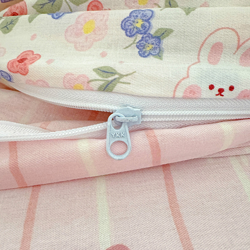 商品名称:乐童 2024新款直播爆款13070纯棉印花吊边款一字绣四件套第八波小花兔