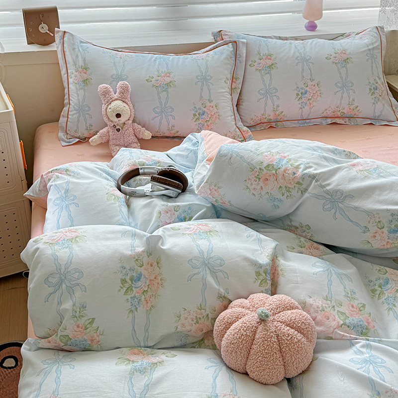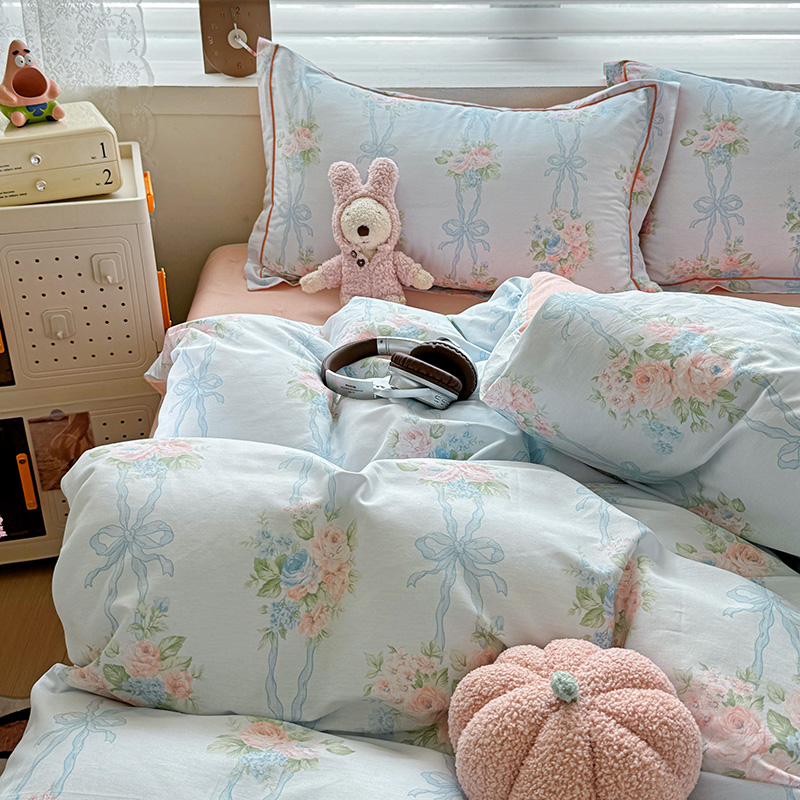 乐童 2024新款直播爆款13070纯棉印花吊边款一字绣四件套第八波花间清幽