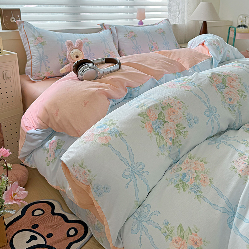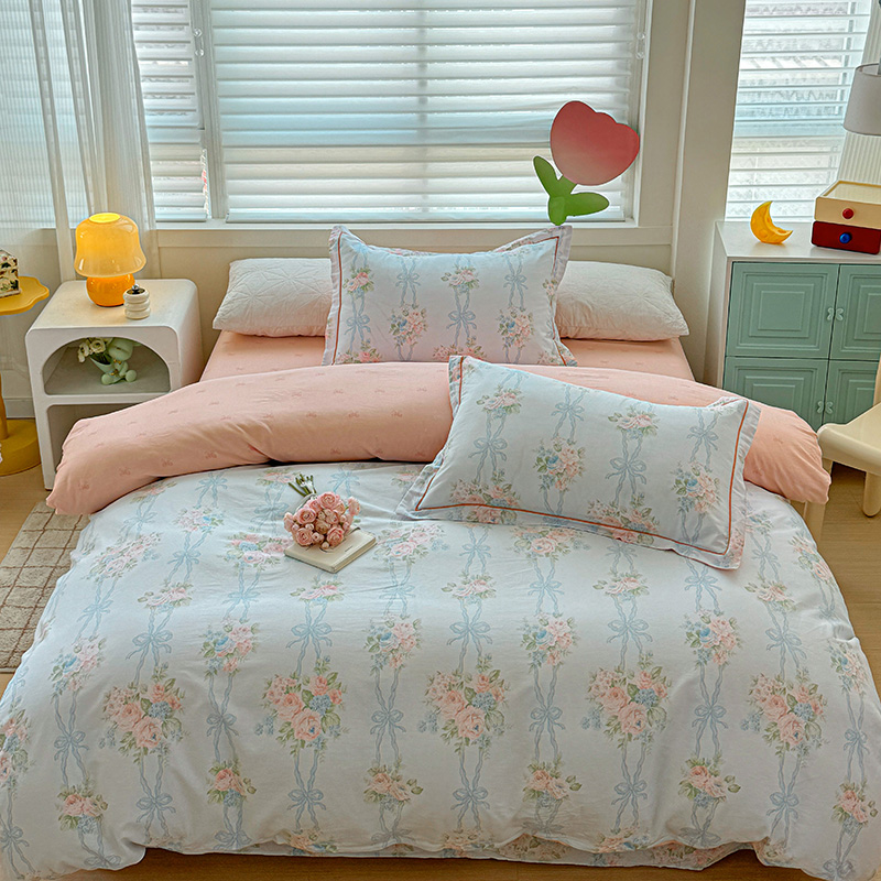 (总)乐童家纺 2026新款全棉纯棉拼接花边小清新工艺款四件套,彩虹木马,春日小兔,花田兔兔,凯莉梦境,口袋故事,浪花轻歌,毛线彩虹,梦境手账,千禧少女咖,少女日记,心跳瞬间