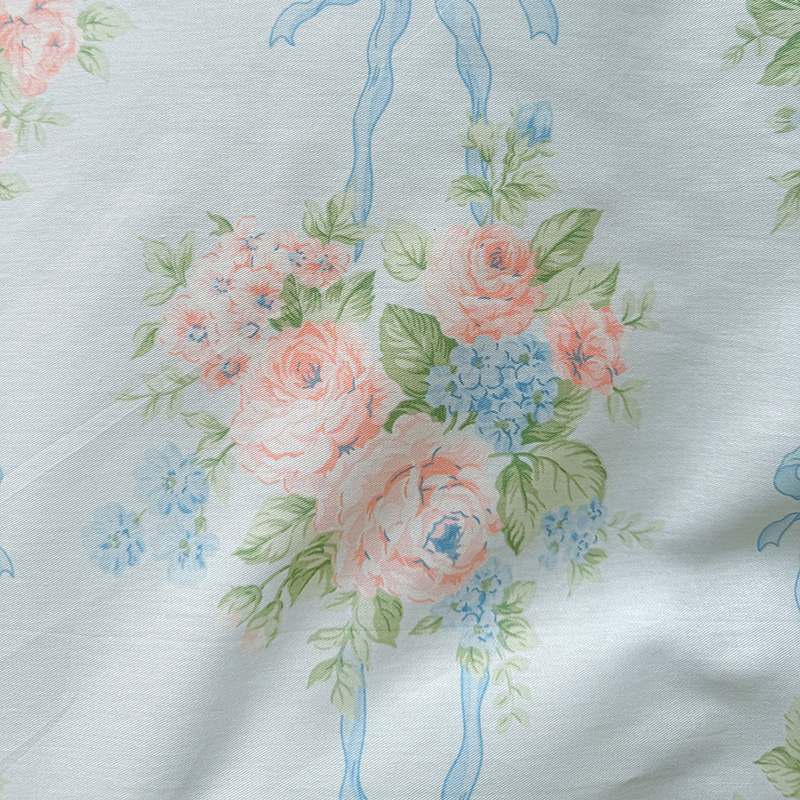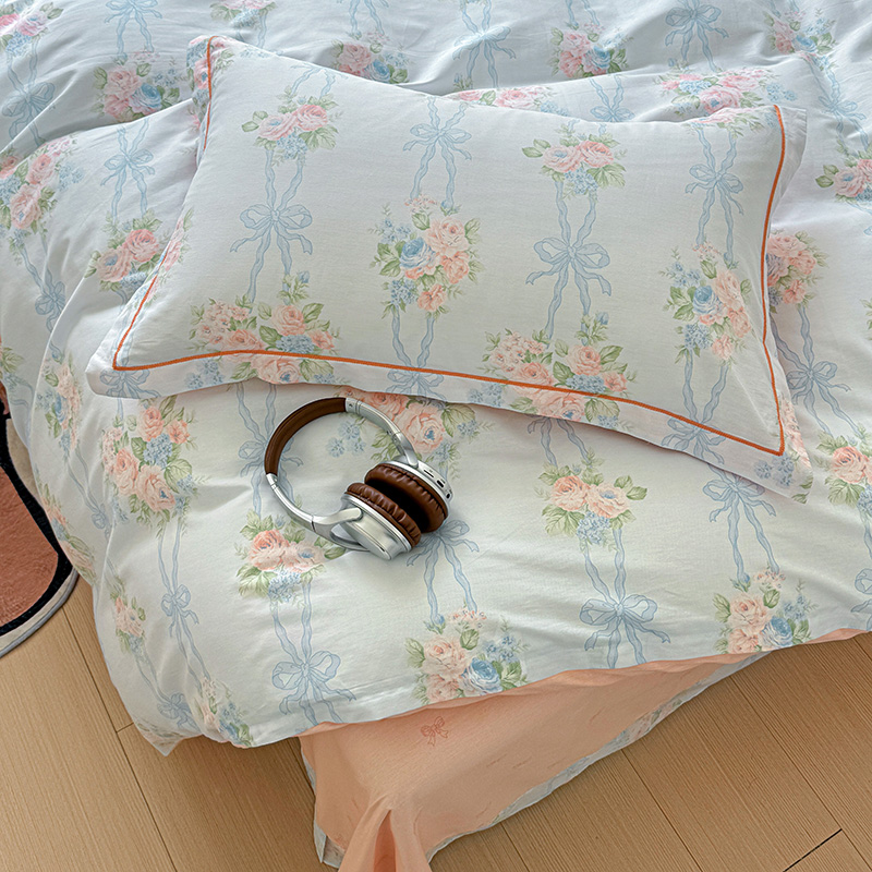 商品名称:乐童 2024新款直播爆款13070纯棉印花吊边款一字绣四件套第八波花间清幽