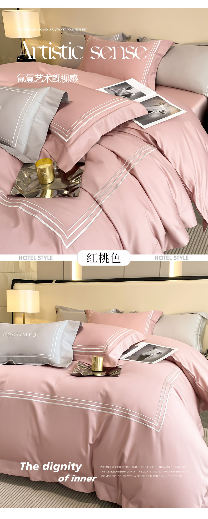 (总)2025新款轻奢风A类100支长绒棉四件套全棉纯棉重工刺绣床单床笠夹棉床笠床盖款高端床上用品-星慕,白粉,白蓝,茶绿,黛紫,慕蓝,奶玉,颜粉