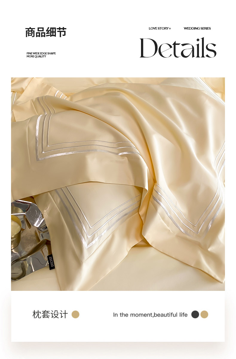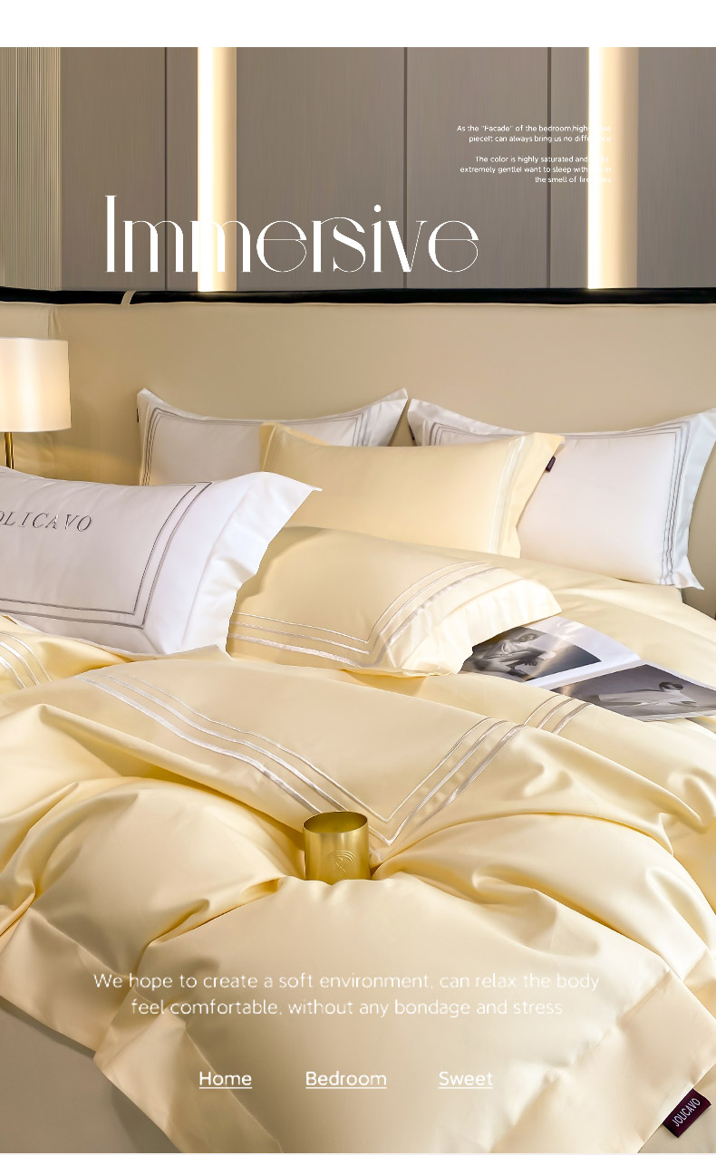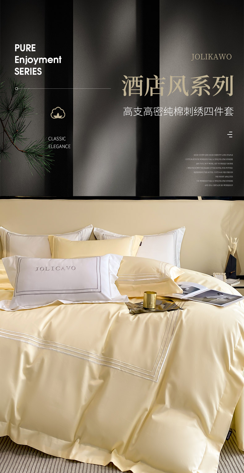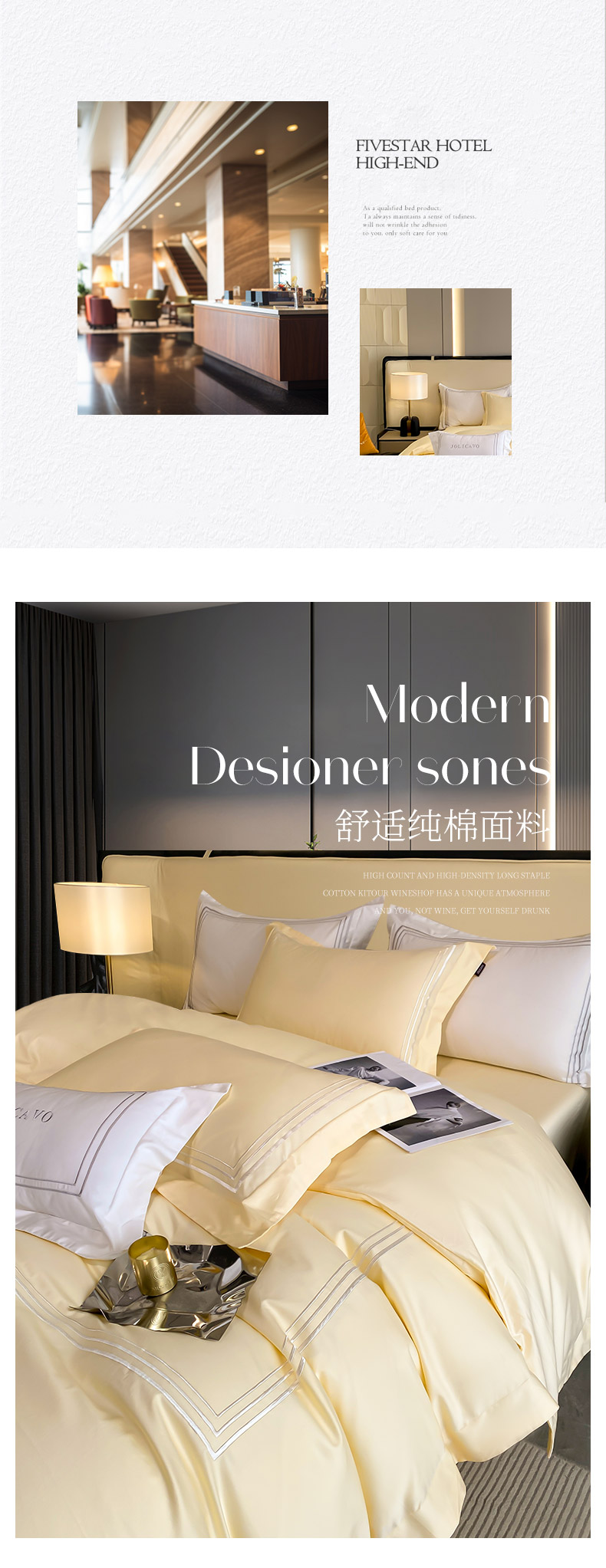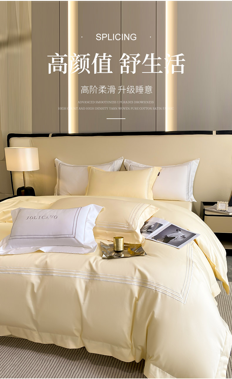 爱妮菲 2024新款100支长绒棉酒店风四件套全棉纯棉纯色简约床单被套轻奢床笠款床上用品 洛卡-芝士黄