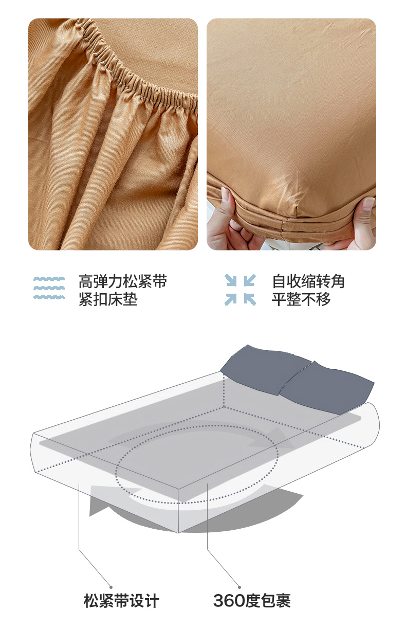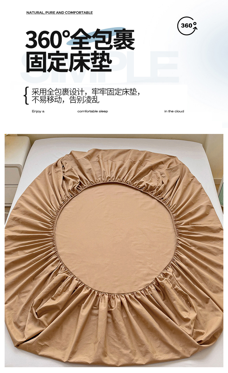 2024新款纯色全棉简约床笠 驼色