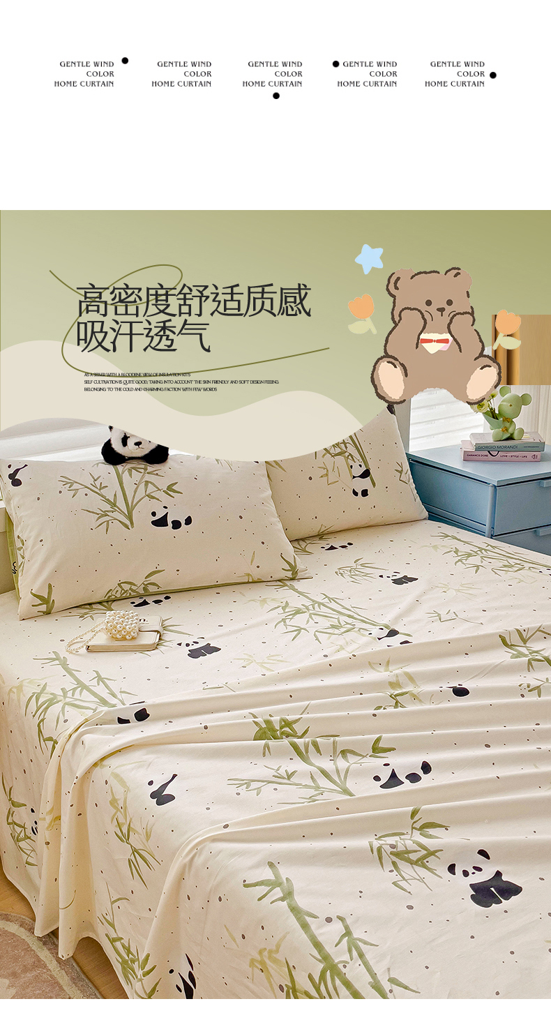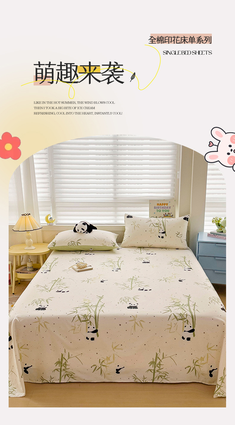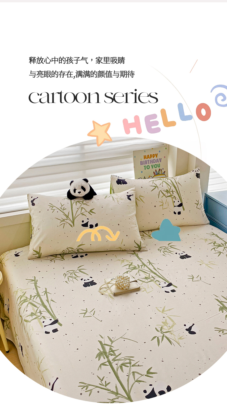名兮家居 2024年新款全棉床单 熊猫家园