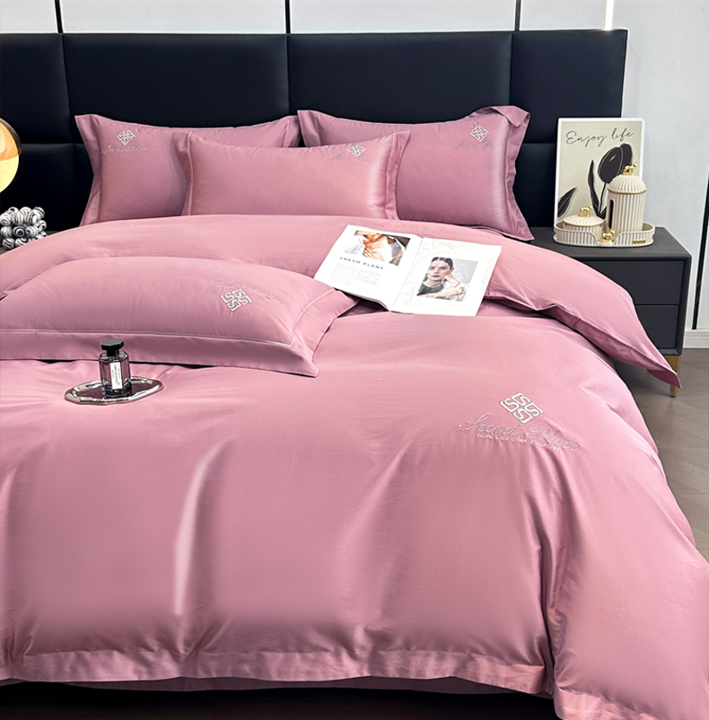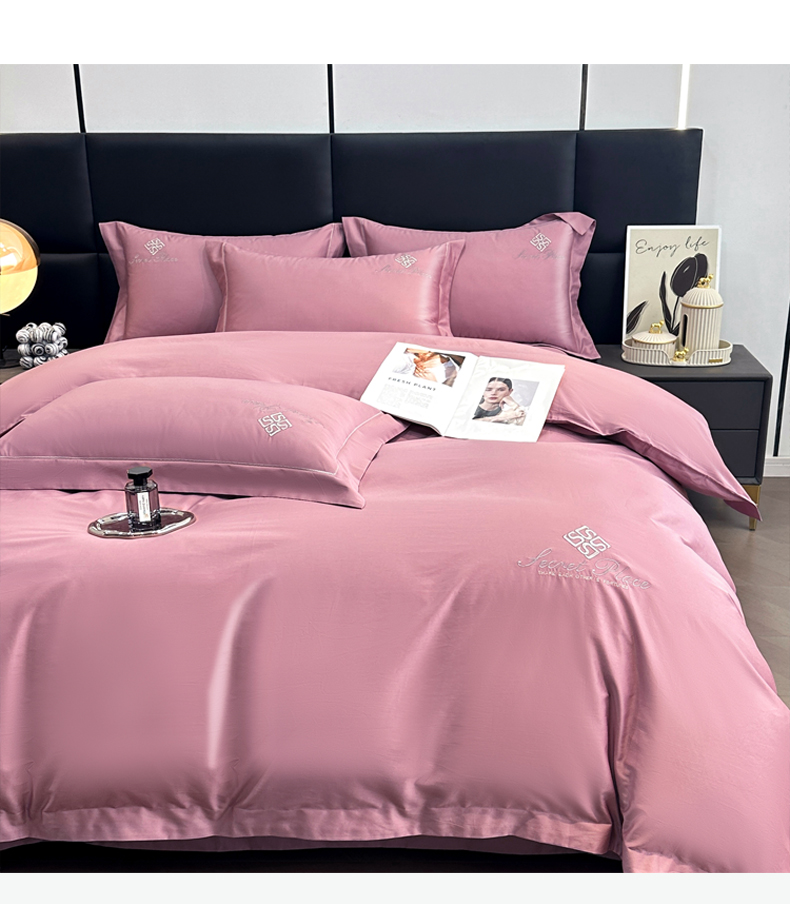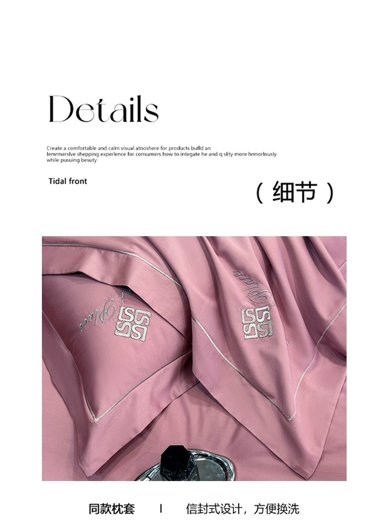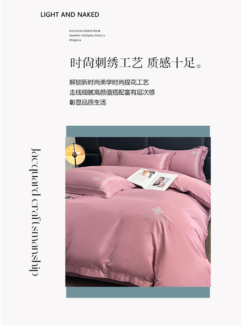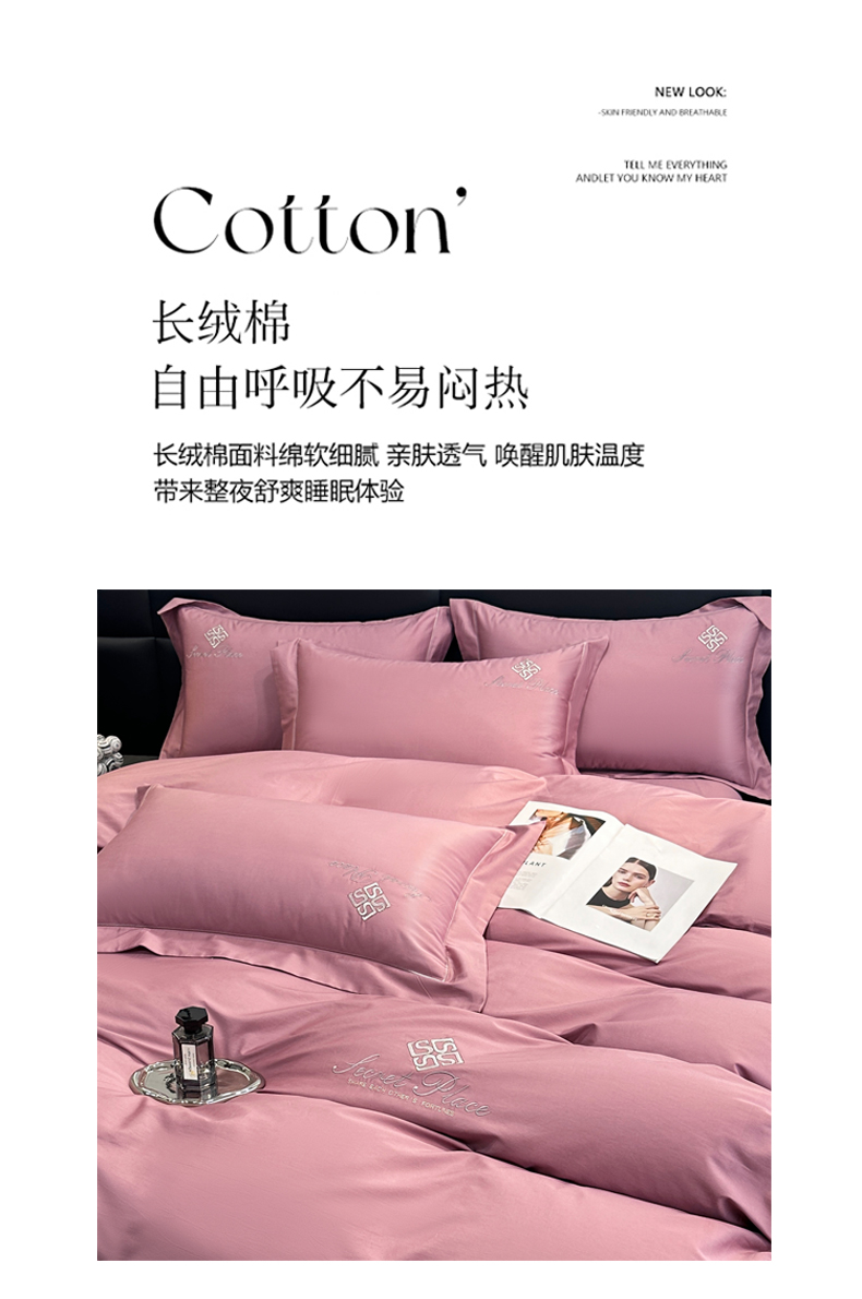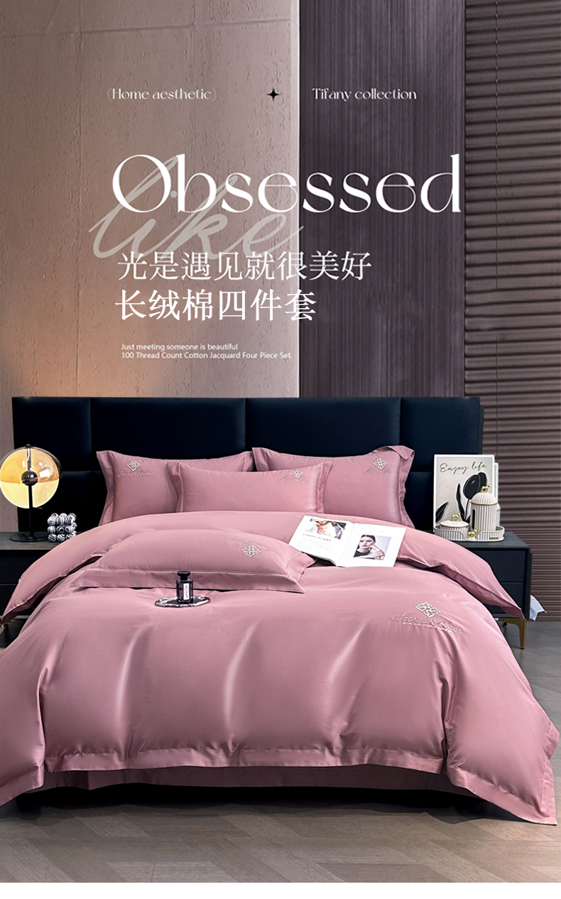 (总)琉宿家纺 2025新款全棉轻奢磨毛宽边工艺四件套,青羽(豆沙),青羽(粉玉),青羽(灰),青羽(蓝),青羽(绿)