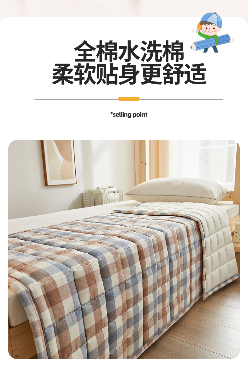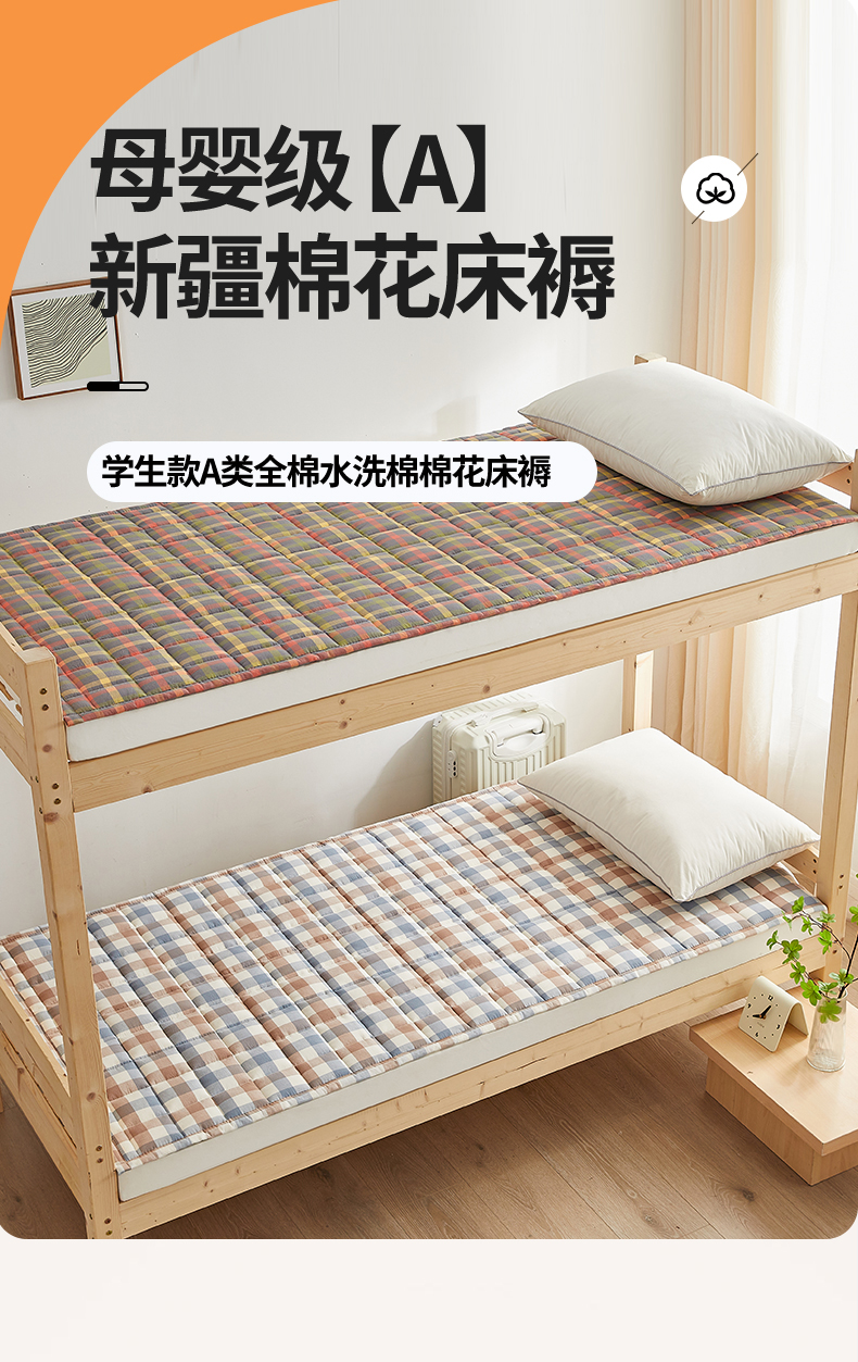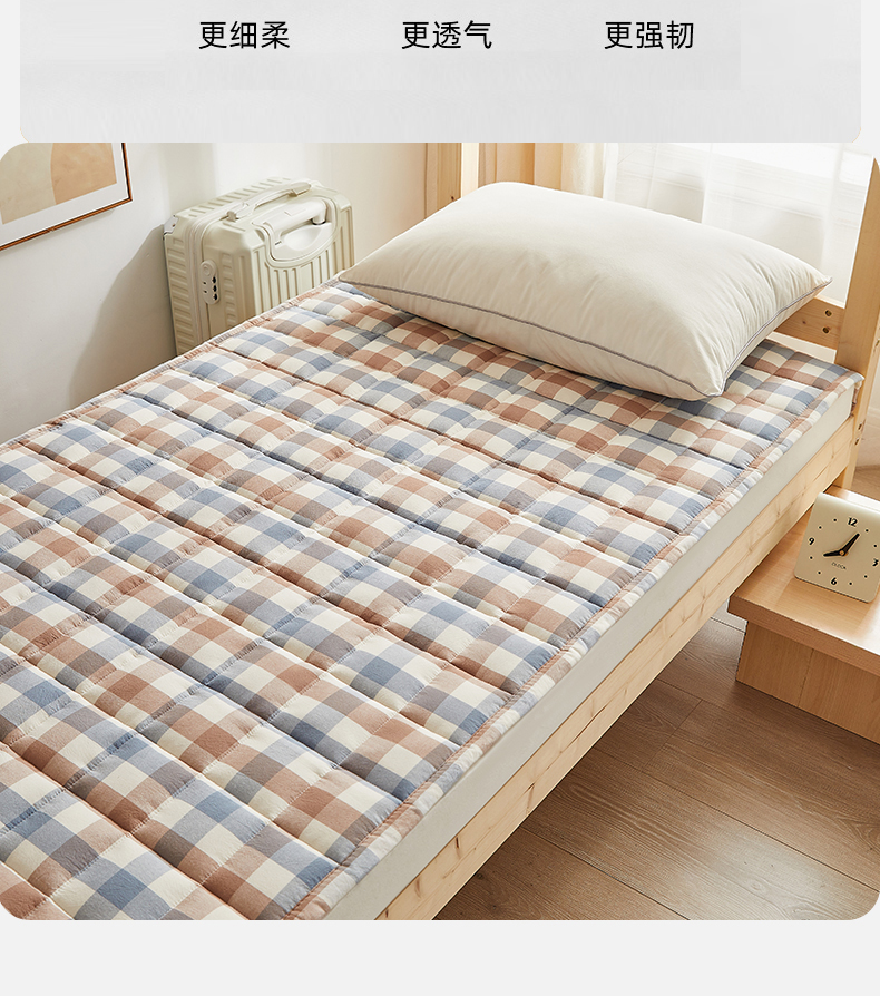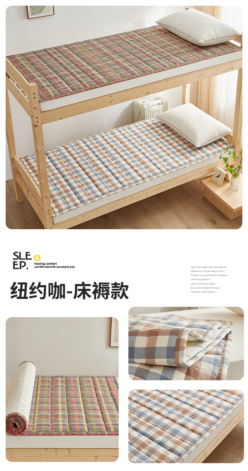 2025新款A类色织全棉水洗棉棉花学生床护垫床褥(1.5cm厚度) 纽约咖
