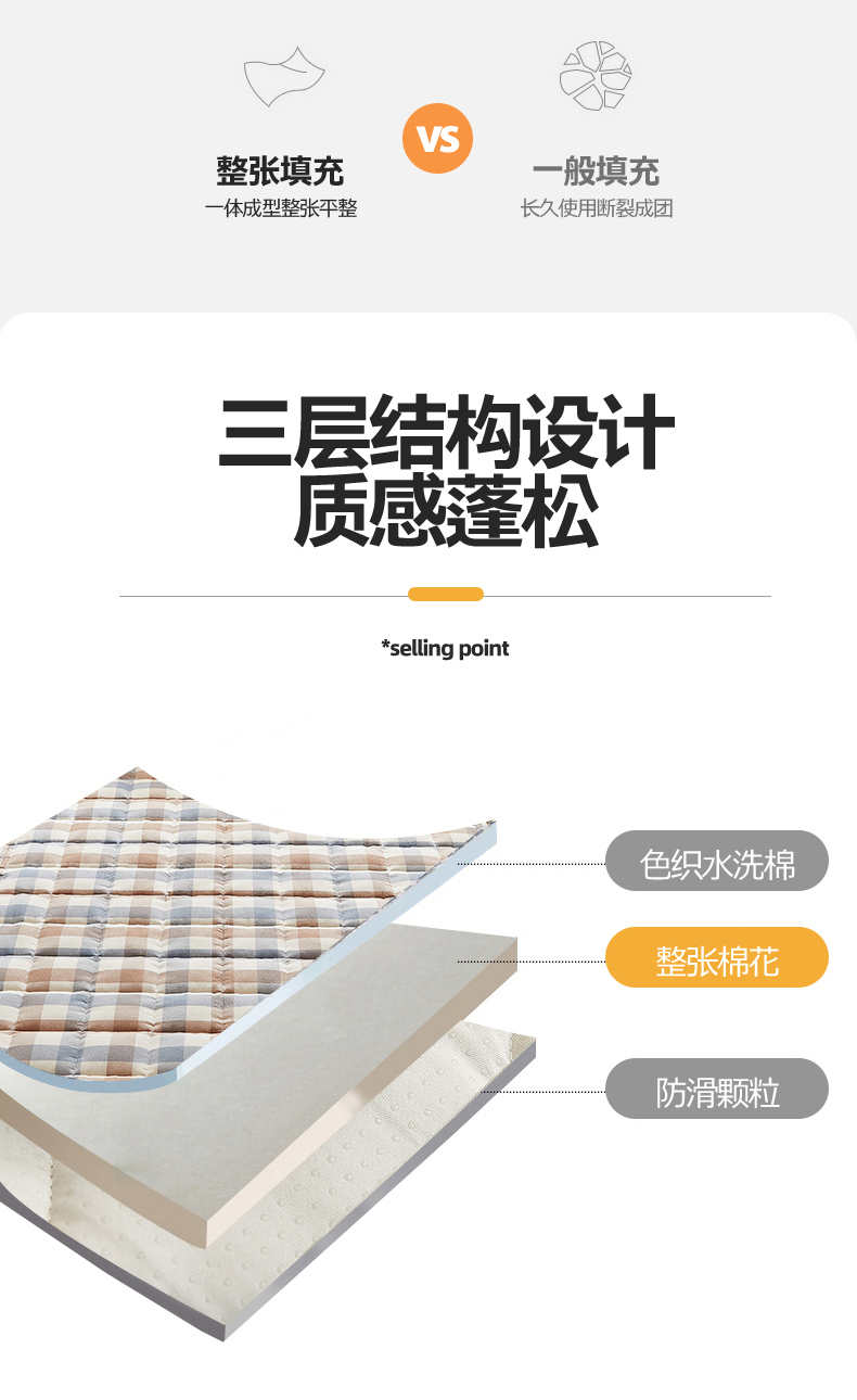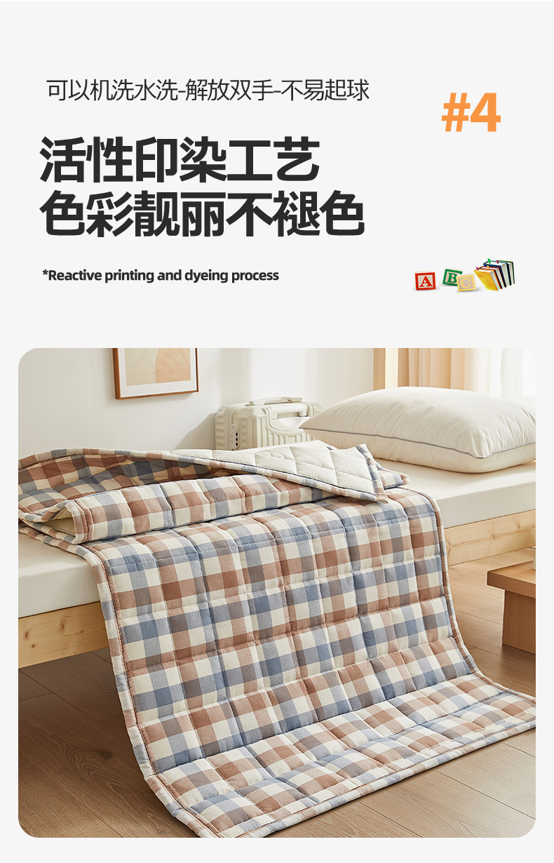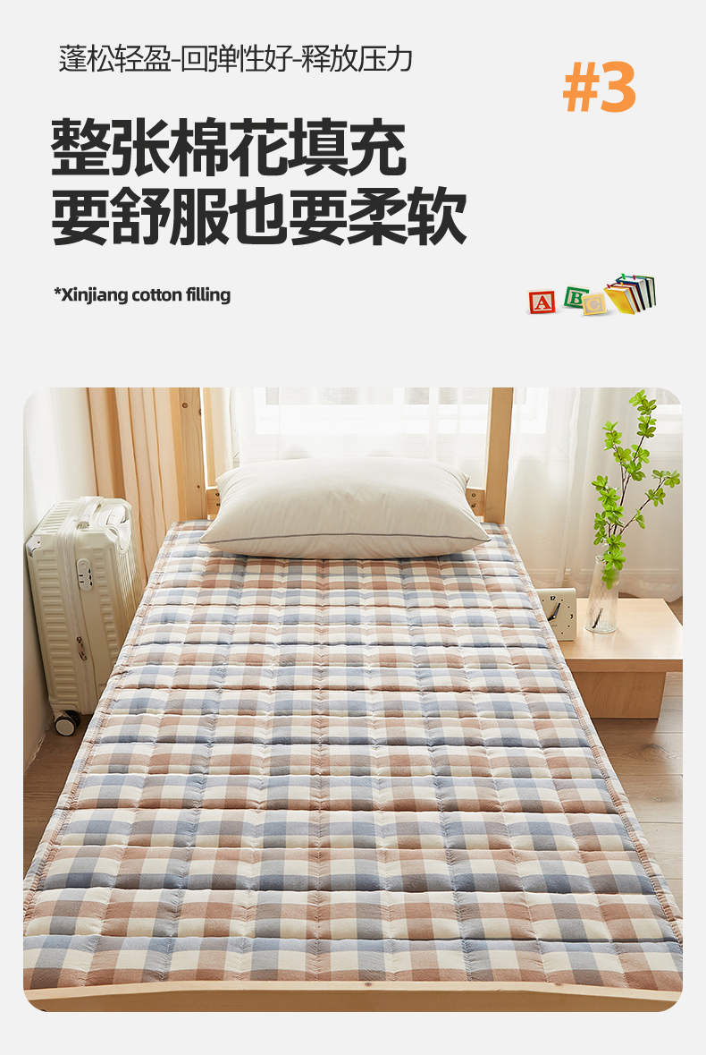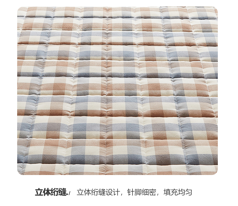 商品名称:2025新款A类色织全棉水洗棉棉花学生床护垫床褥(1.5cm厚度) 纽约咖