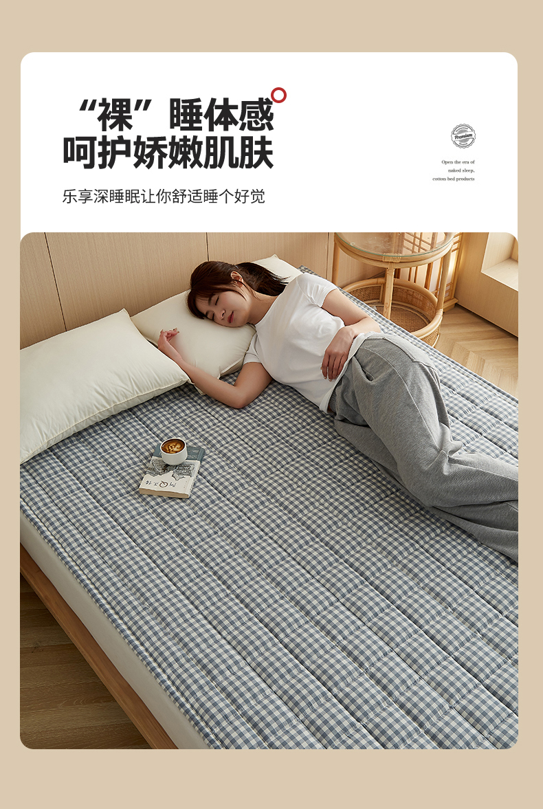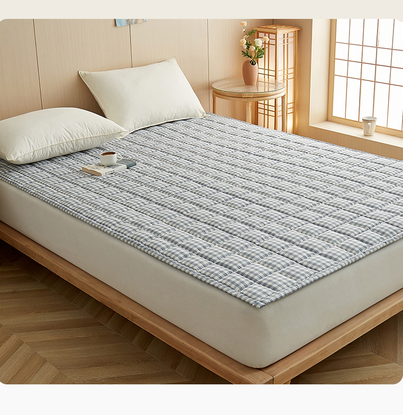 2025新款A类色织全棉水洗棉棉花床护垫1.5cm 蓝小格