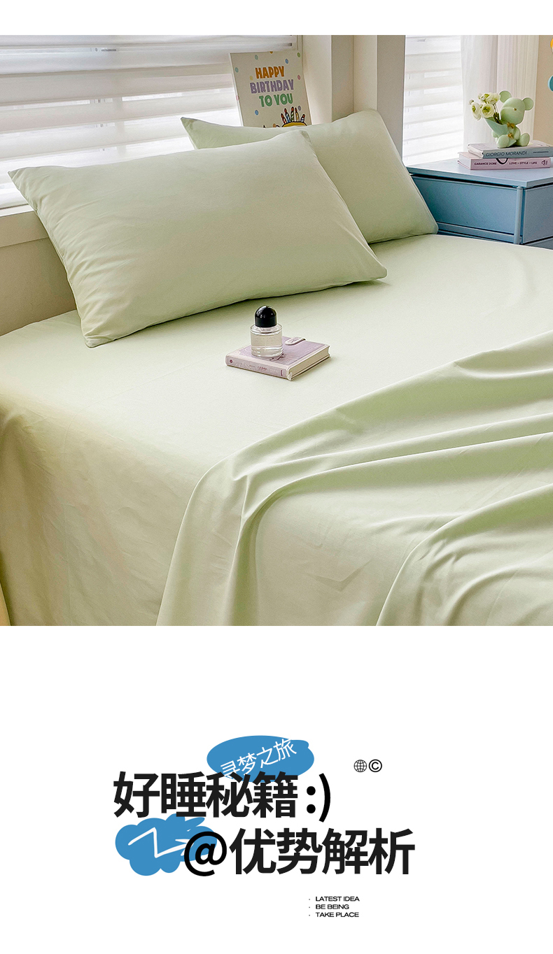 商品名称:名兮家居 2024新款全棉纯色枕套 发芽绿