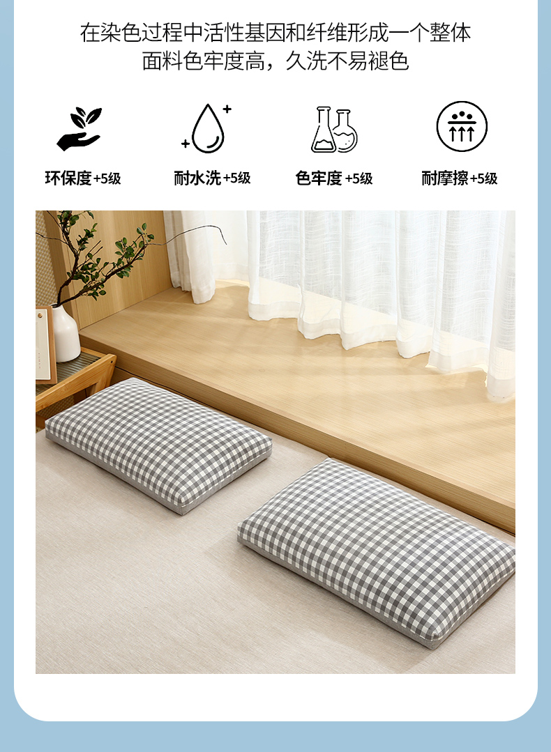 当前位置: 91家纺网 > 商品网购 > 枕头/枕芯/保健枕/颈椎枕 > 普通枕芯 > 梦叶草 2024新款全棉水洗棉A版格子B版纯色双拼荞麦枕芯 蓝色格子+蓝色素色荞麦枕40*70cm/只