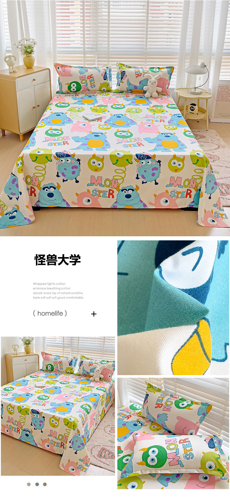楠沐家纺 2025新款印花亲肤芦荟棉水洗棉床单系列-床单(第二批) 怪兽大学