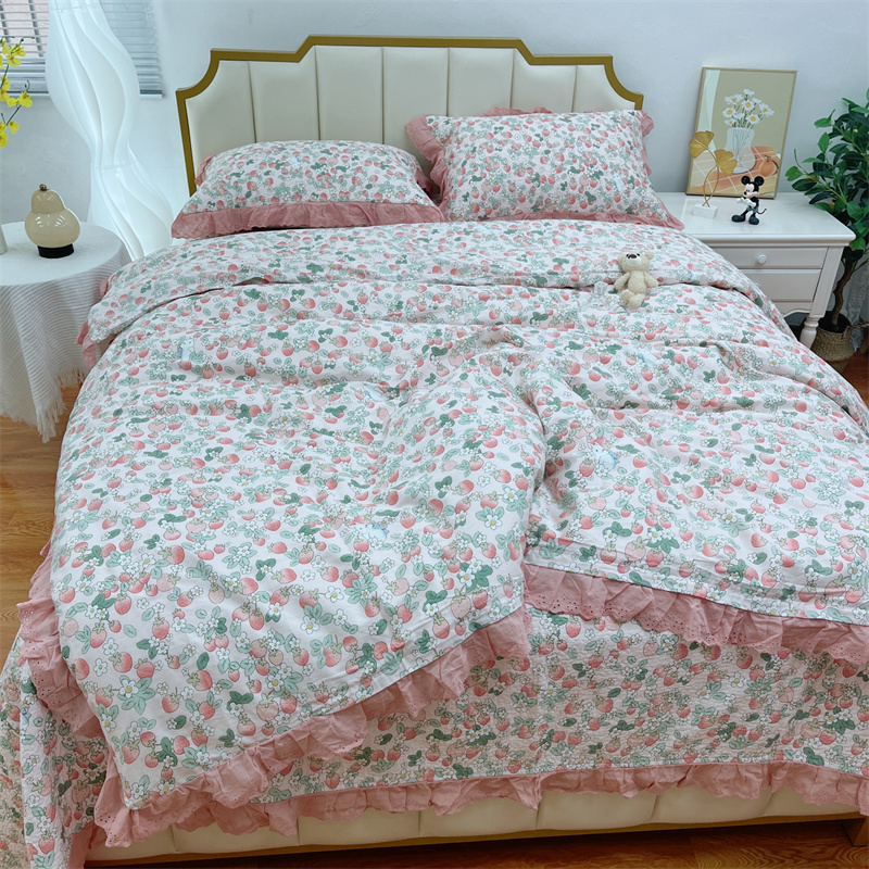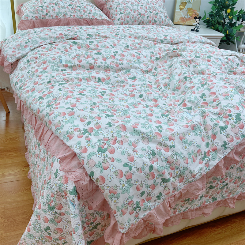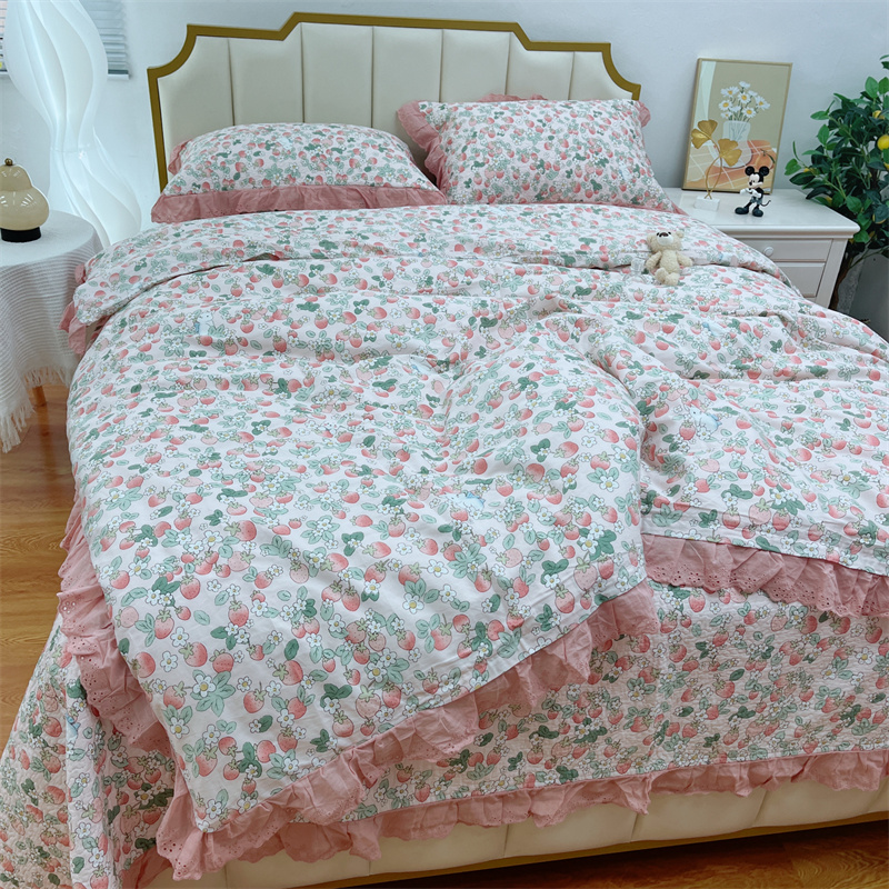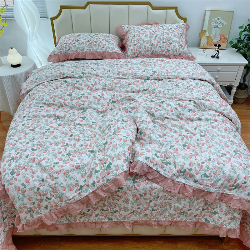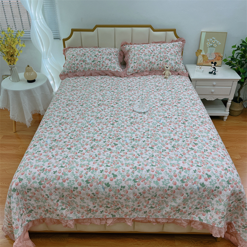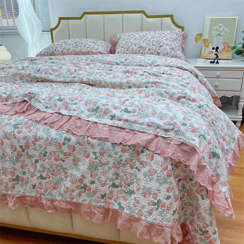 商品名称:暖居 2024新款砂洗棉花被套全棉床盖四件套绗缝夹棉纯棉床盖三件套草莓多多