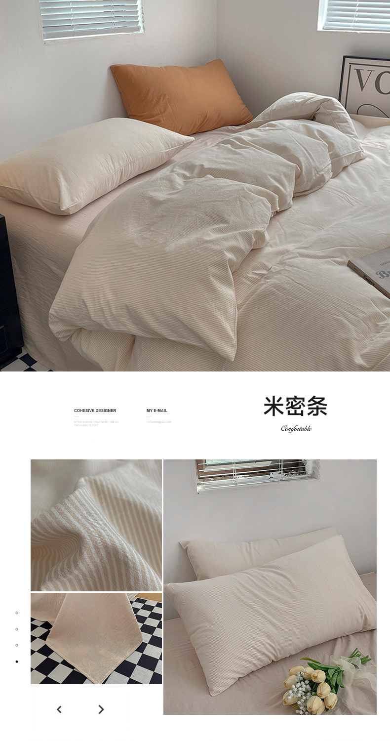 当前位置: 91家纺网 > 商品网购 > 床品套件 > 四件套 > 全棉普通四件套 > 2024新款A类全棉纯棉纯色双拼色织水洗棉四件套 米密条