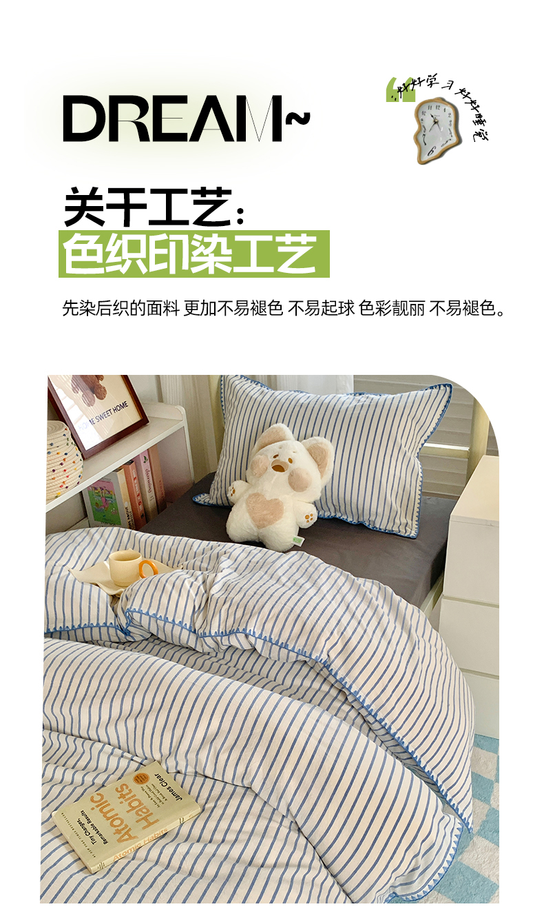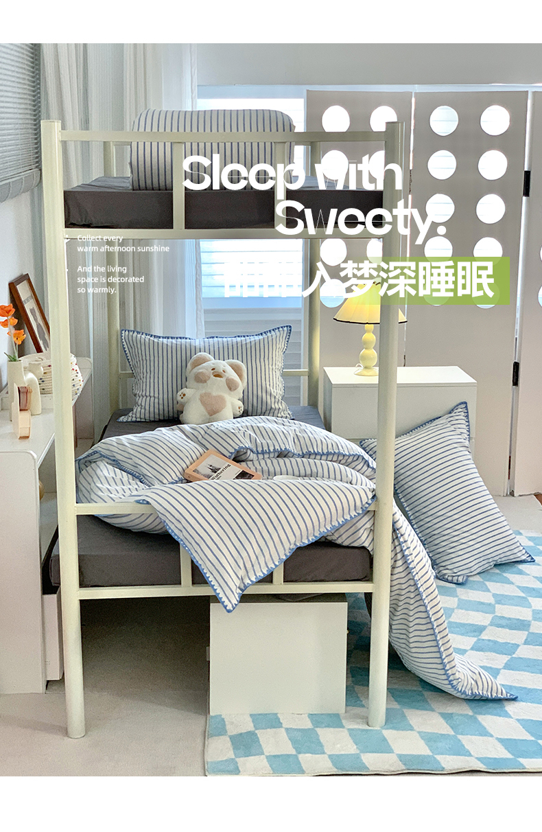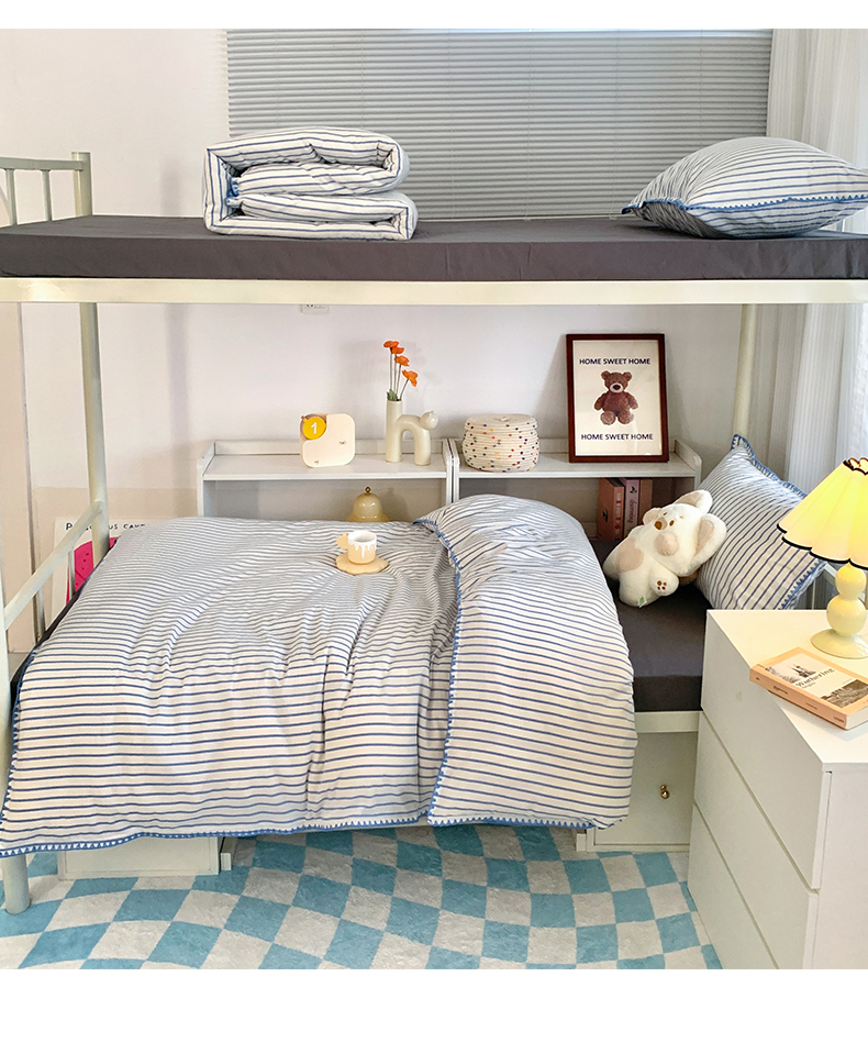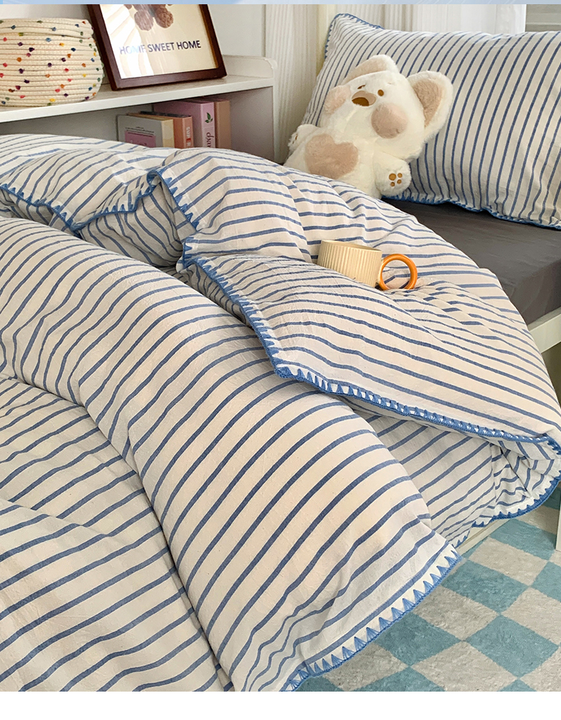 莱茵家居 2024新款A类全棉色织水洗棉贝壳边三件套 蓝苏条